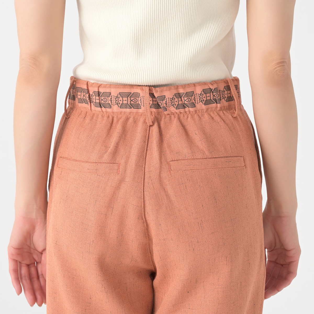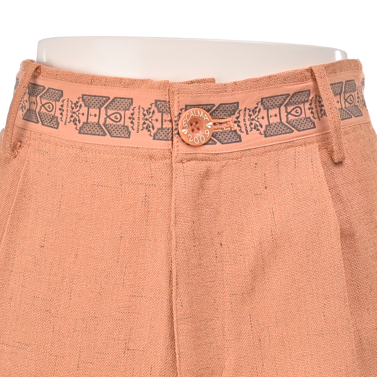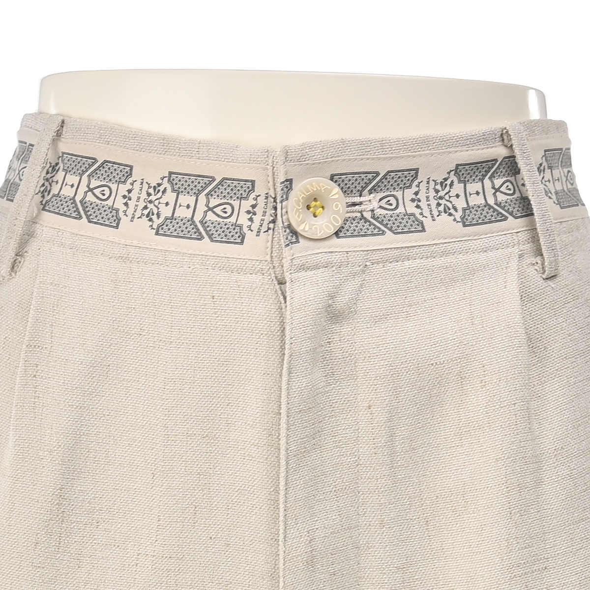 シャリ味がありドライタッチの清涼感ある麻見えする平織りは、麻見え特有の上品で涼しげな透け感をもちつつ硬くハリがあり、仕立て映えする生地です。股下は65cmと70cmの長さからお選びいただけます