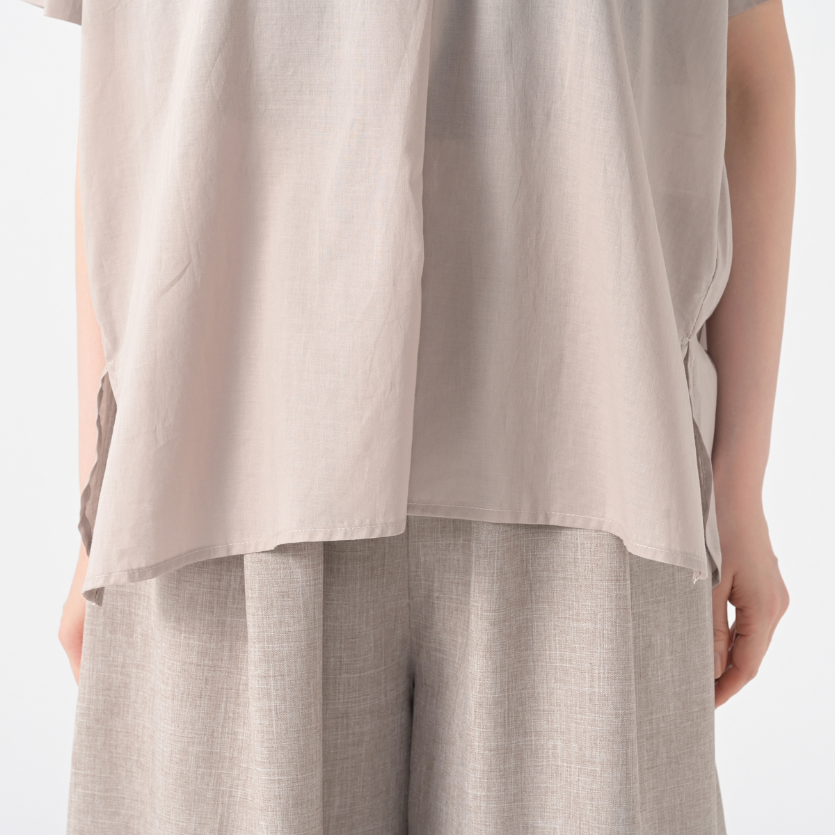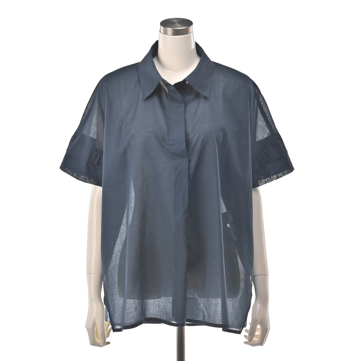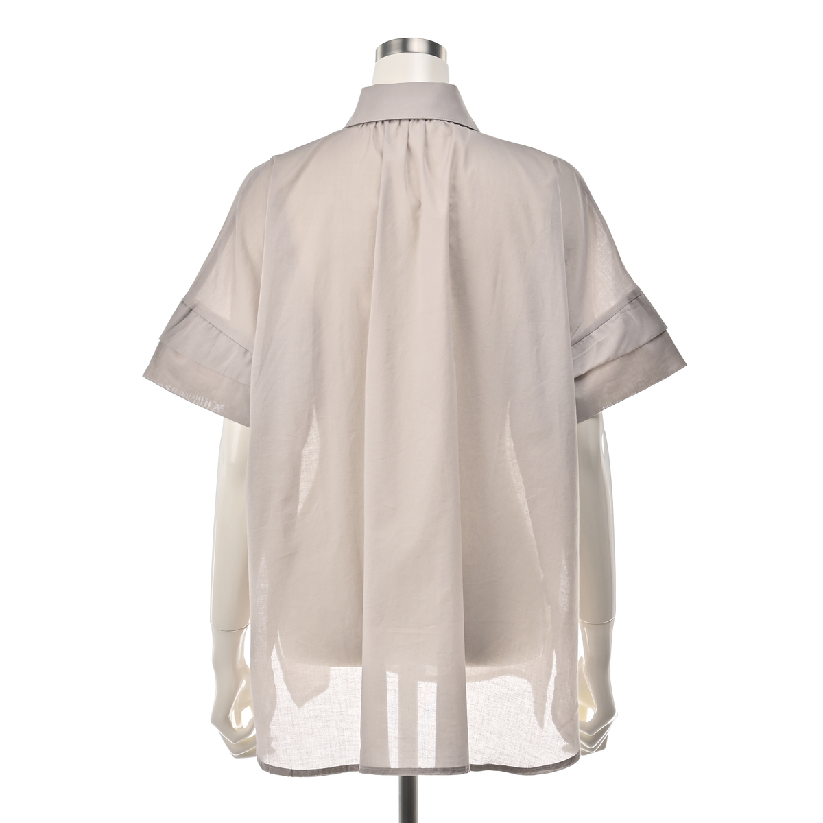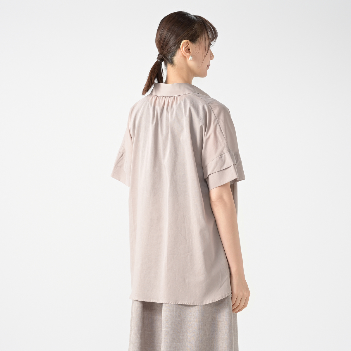 スキッパー開きのオーバーサイズに仕上げ、袖口は2枚重ねてロールアップに見えるデザイン。シアー素材で清涼感を演出し、重ね着でのレイヤーコーディネートにもおすすめです