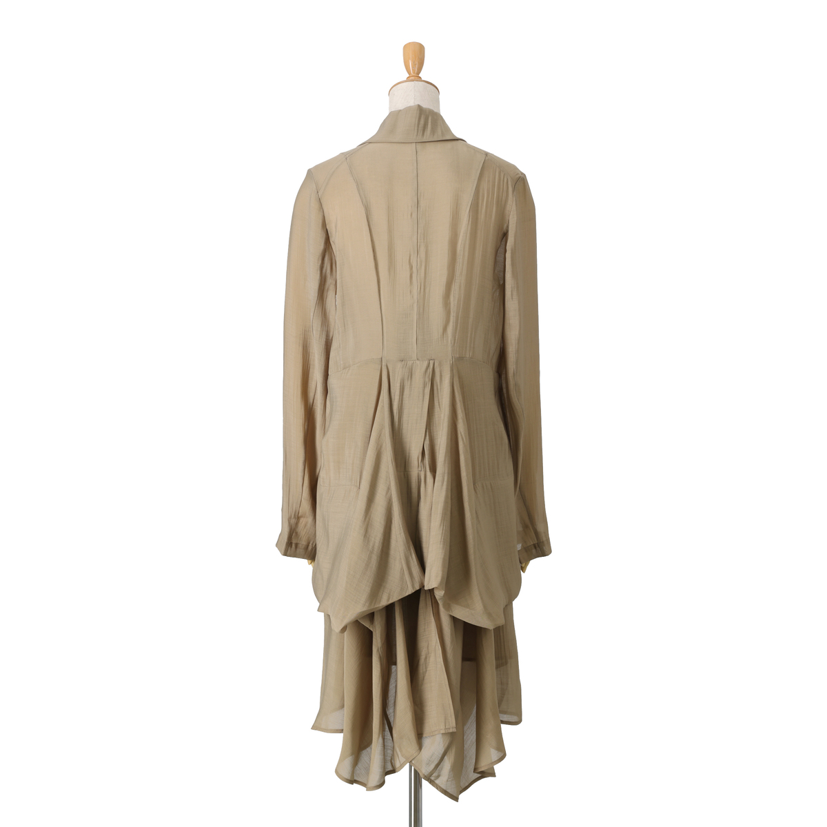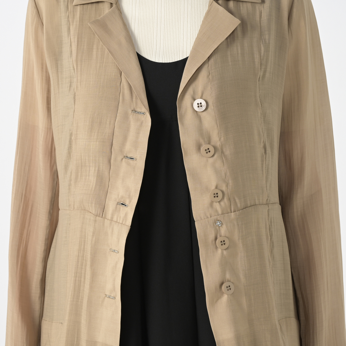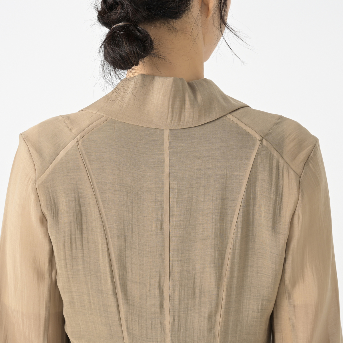 デザイン性のあるロングジャケットです。細番手のレーヨンとセルロース混の系で織られた、シアー感のある素材を使用。柔らかな素材が自然な落ち感を生み、クラス感のある着こなしをお楽しみいただけます
