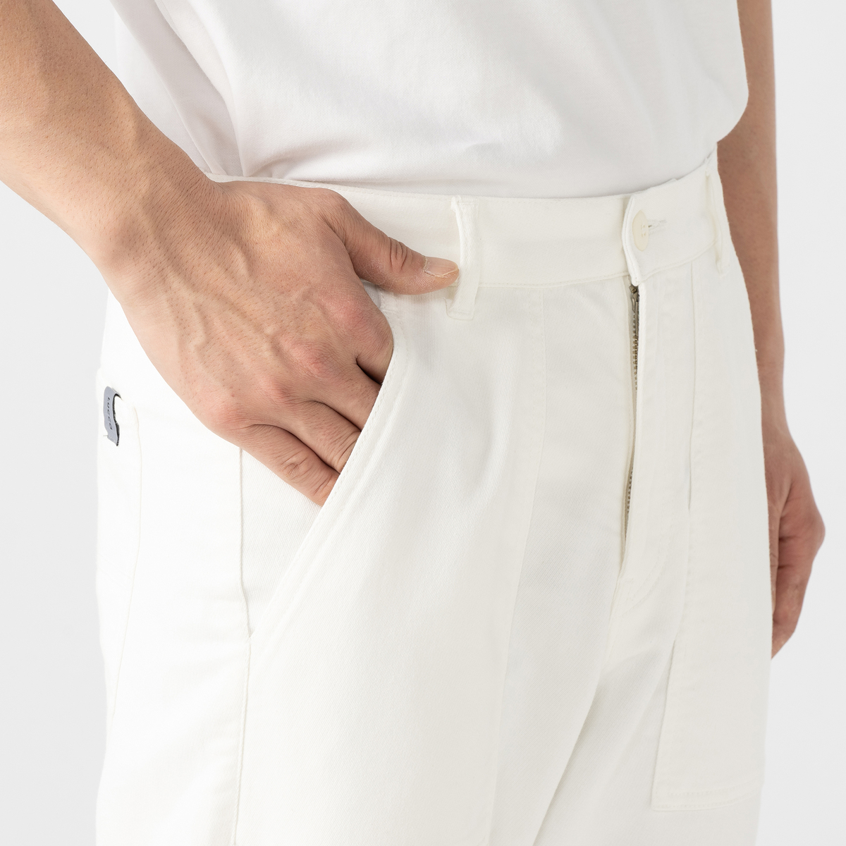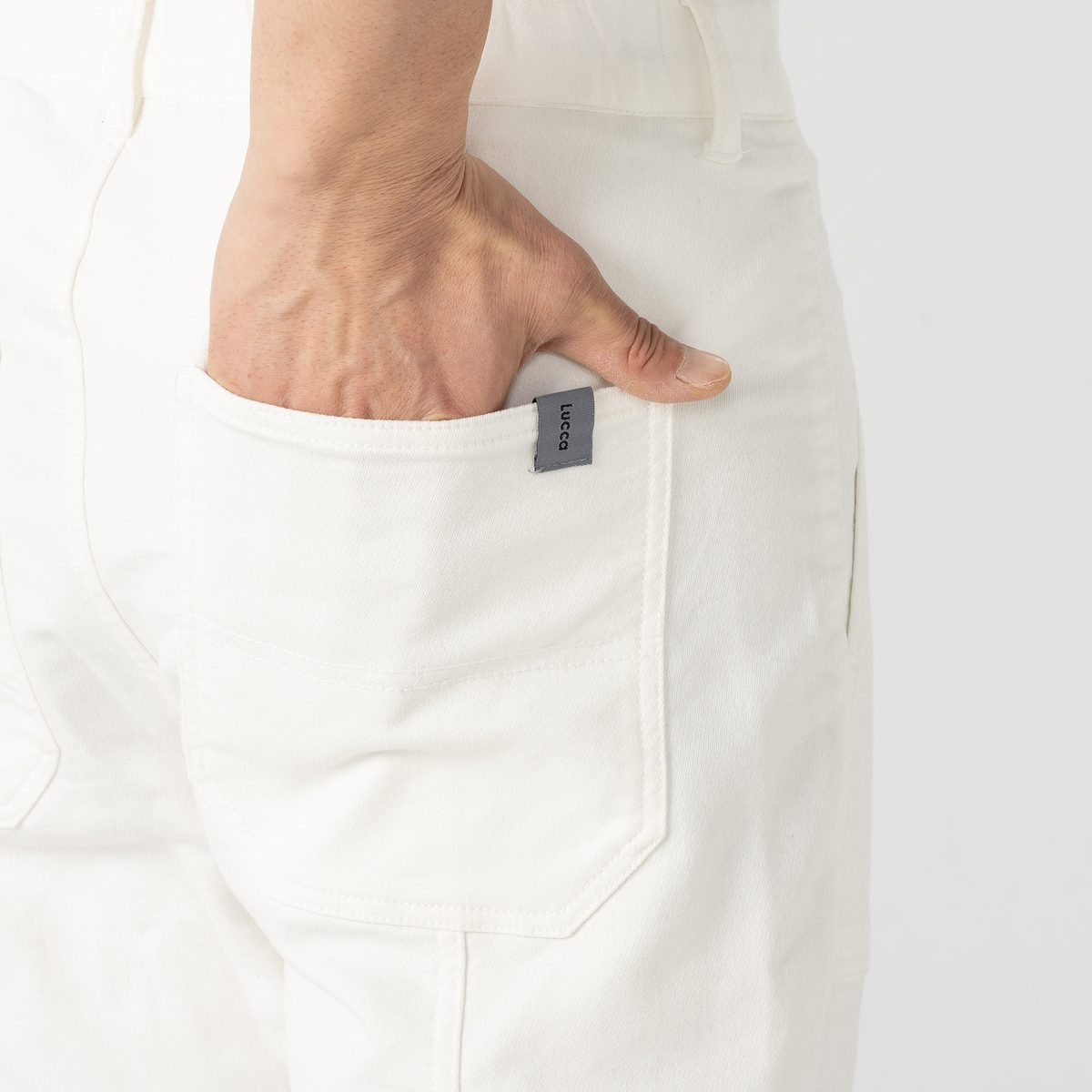 [商品寸法(ヌード寸法)cm] サイズ ウエスト ヒップ 股下 S: 68(68〜76) 90 68 M: 76(76〜84) 98 70 L: 84(84〜92) 106 72 LL: 92(92〜100) 114 74 3L: 100(100〜108) 122 76 サイズ 前股ぐり わたり幅 S: 28.5 30 M: 29.5 32 L: 30.5 34 LL: 31.5 36 3L: 32.5 38 [ウエストゴム] 後ろ全体に有 [素材] インディゴ・ブラック: 綿91% ポリエステル8% ポリウレタン1% ホワイト: 綿86% ポリエステル12% ポリウレタン2% [お手入れ] 洗濯機洗い可 [注意事項] ※商品寸法の誤差は多少発生します。ご了承下さい ※洗濯の際には必ずネットを使用して下さい ※洗濯後はすぐに脱水し、形を整えて干して下さい。長時間、水につけたままにしないで下さい ※濃色製品は着用中の摩擦により色移りすることがあります。また、雨や汗等で濡れた状態で着用すると色移りすることがあります。その際はお早めに洗濯をして下さい ※洗濯・クリーニングの際、色落ちすることがありますので他の物と分けて洗って下さい ※過度な引っ張りを受けると縫い目が開くことがありますので、取扱いには注意して下さい 【中国製】