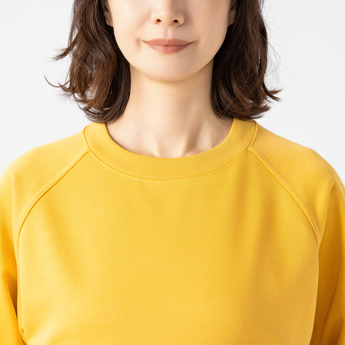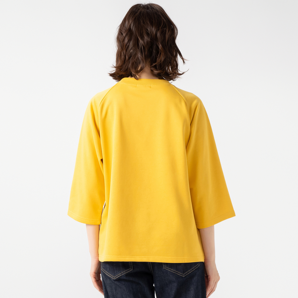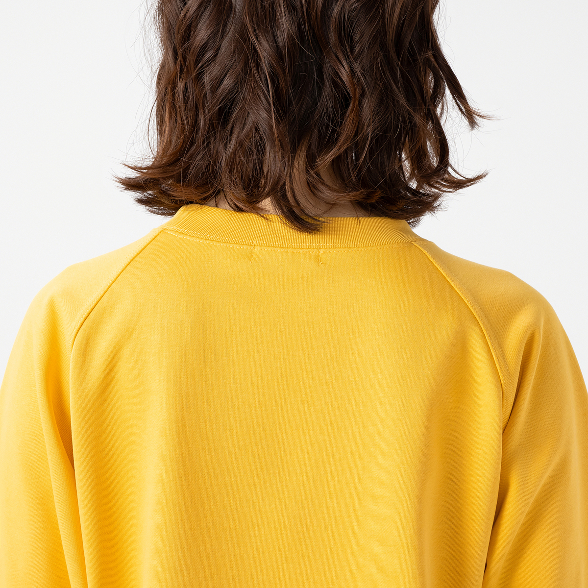 ラグランスリーブと広めの七分袖、前身頃の切り替え下に挟んだ大きなフラップと左右から手を入れることができるビッグポケットが特徴的なトレーナー。シーズンレスな中肉の裏毛素材で、衿ぐりはしっかりとした同色のスパンフライスで仕上げました