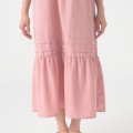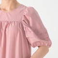 ラウンドネックが顔まわりをすっきり見せ、袖口は同色のニットバインダー始末で柔らかな着用感。広がりすぎないティアード切り替えと両脇のポケットが、デイリーからお出かけまで幅広いシーンで活躍します