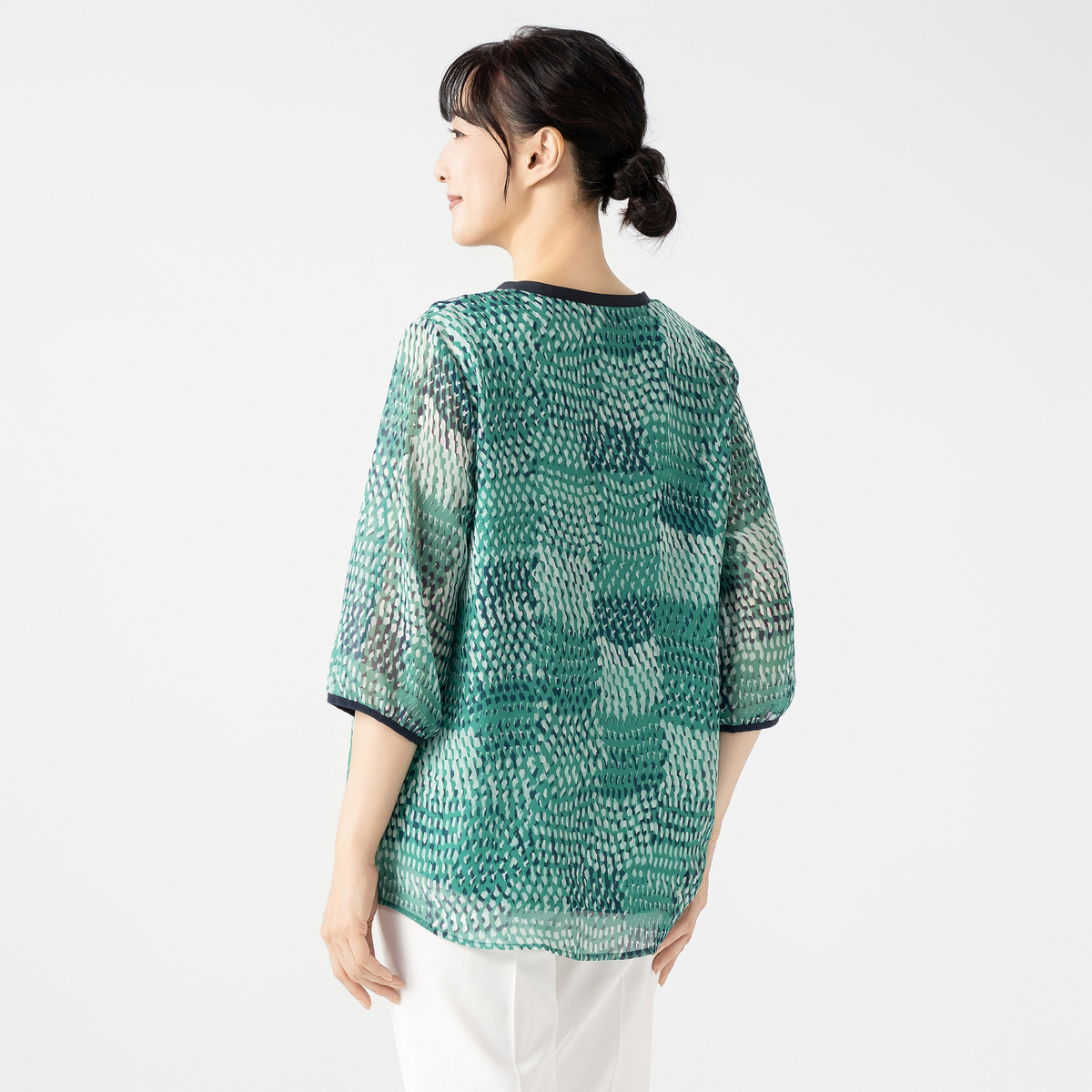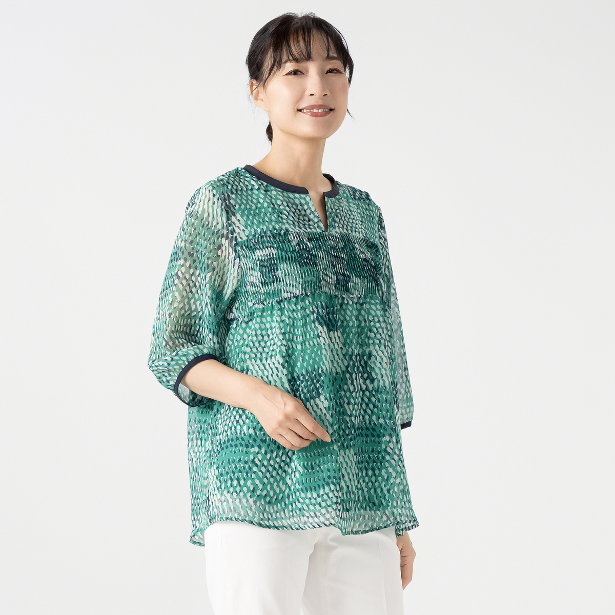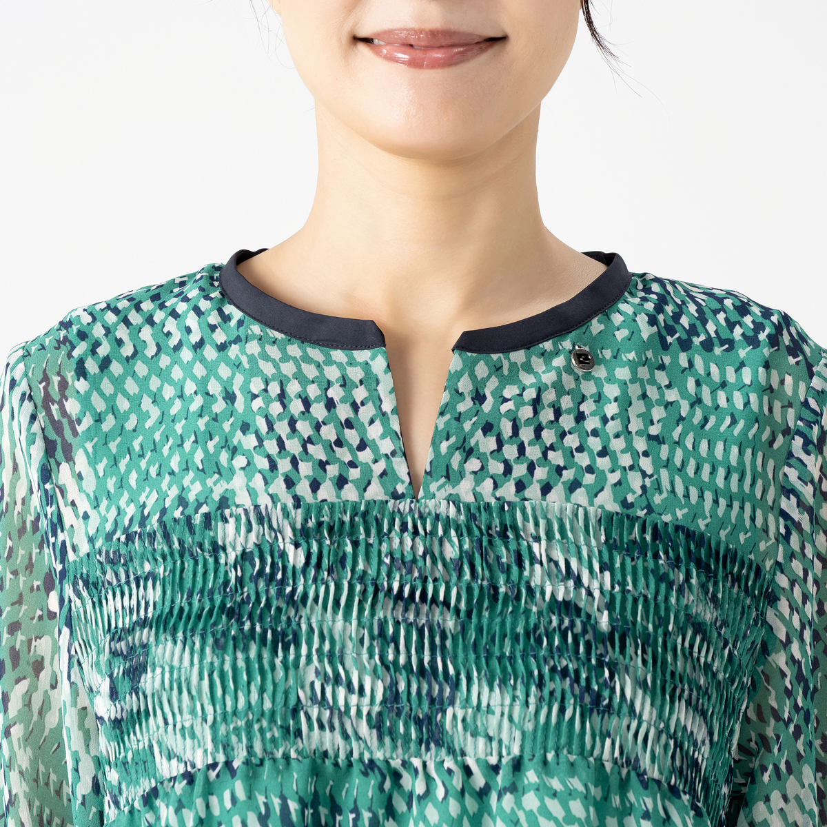 No. 742585 PCD ウェーブジオメトリック柄のピンタックプルオーバー