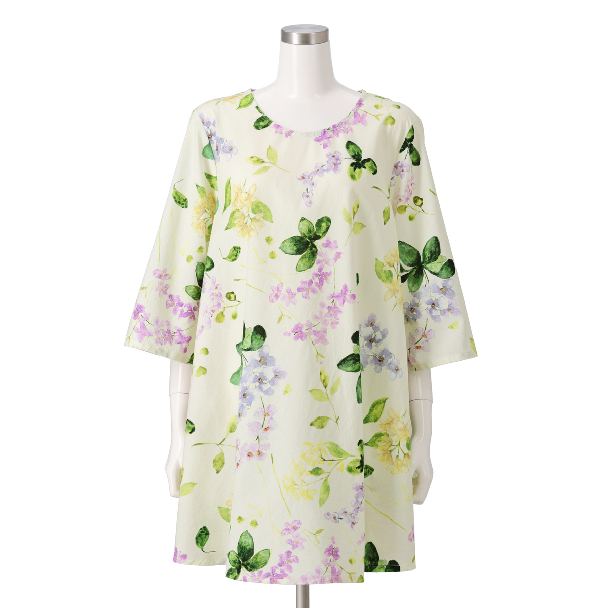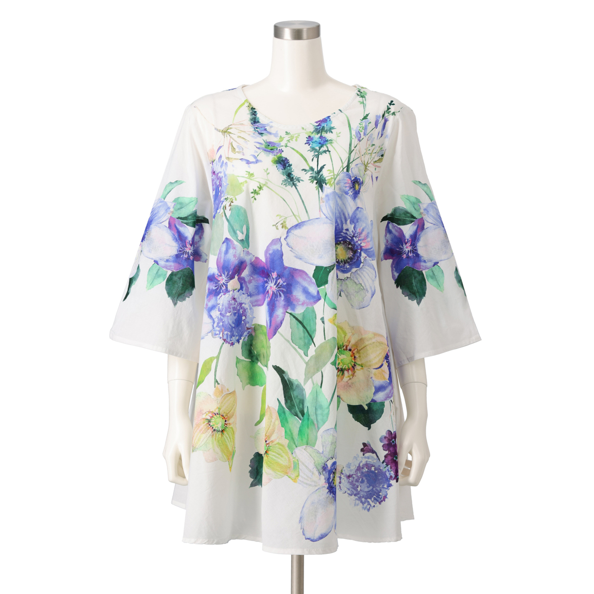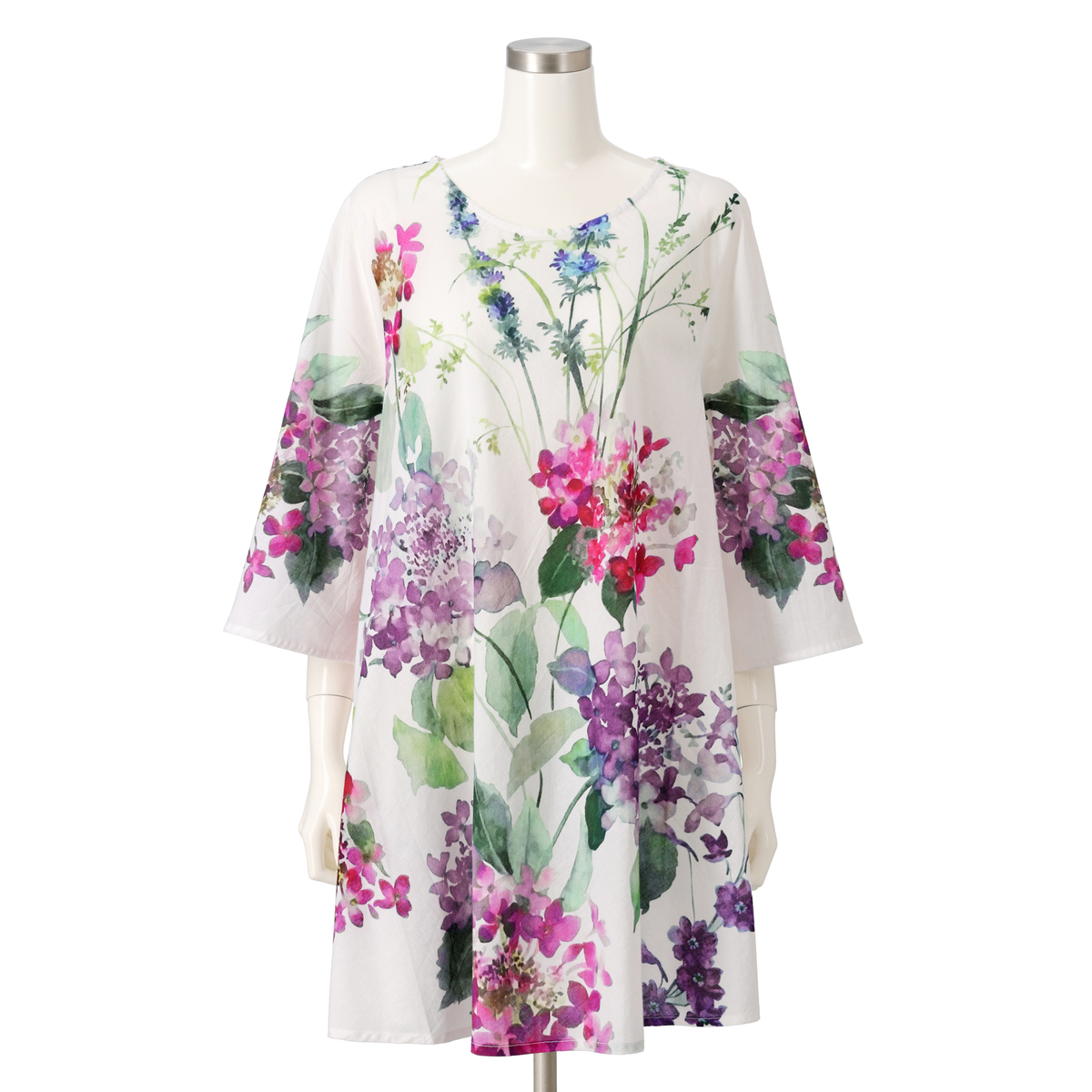 紫陽花ホワイトを注文しました。残念なことに、紫陽花の柄が正面と後ろだけで側面は白無地、脇から下の身頃がたっぷりあるので、何かだらしない感じに見えました。 大きいサイズだったので余計白無地の部分が多かったのではないかと思います。普通サイズならあまり気にならないかも。