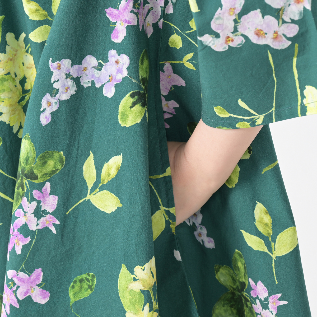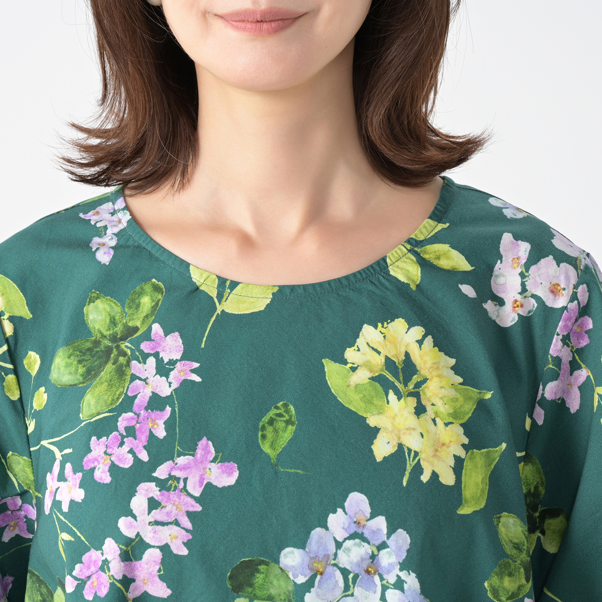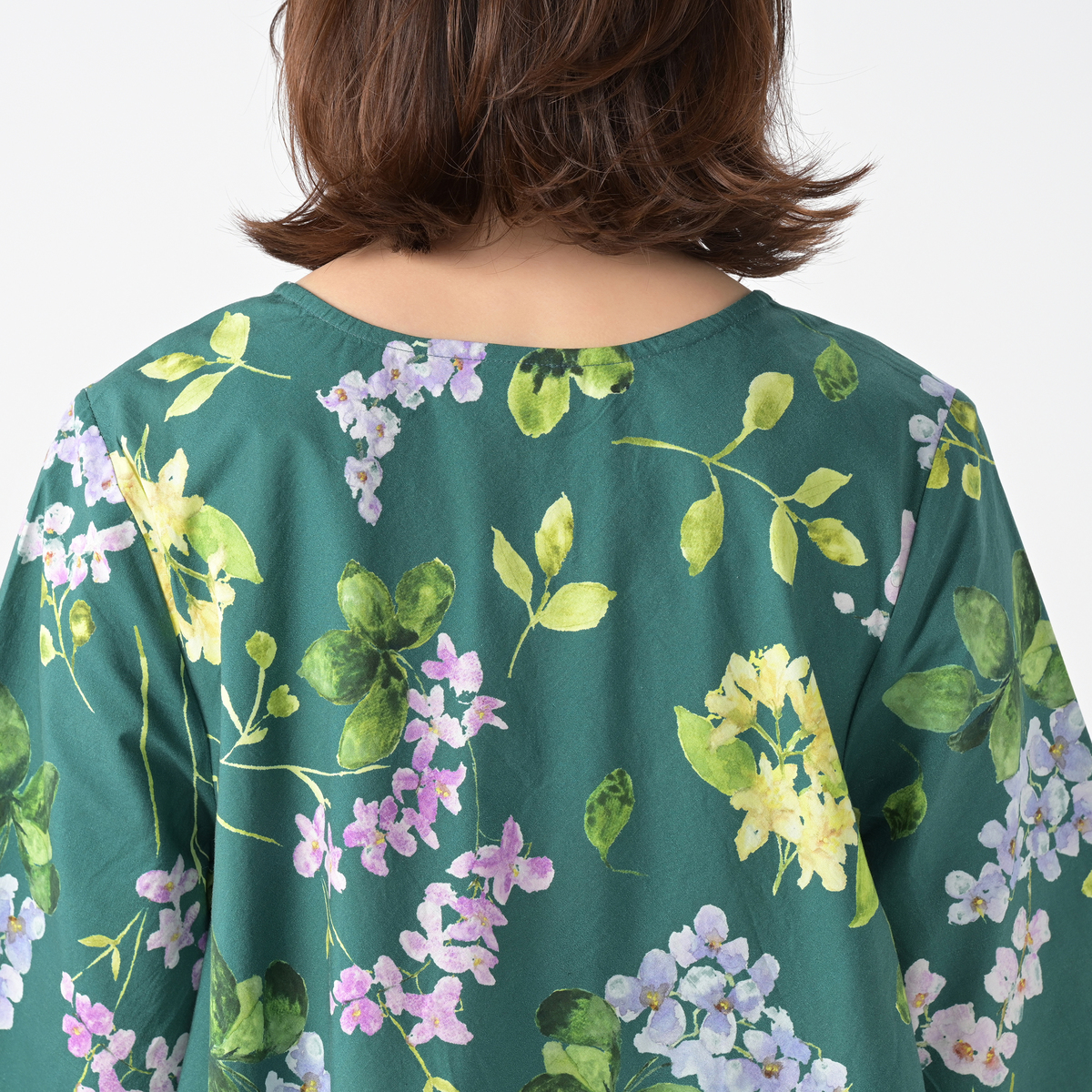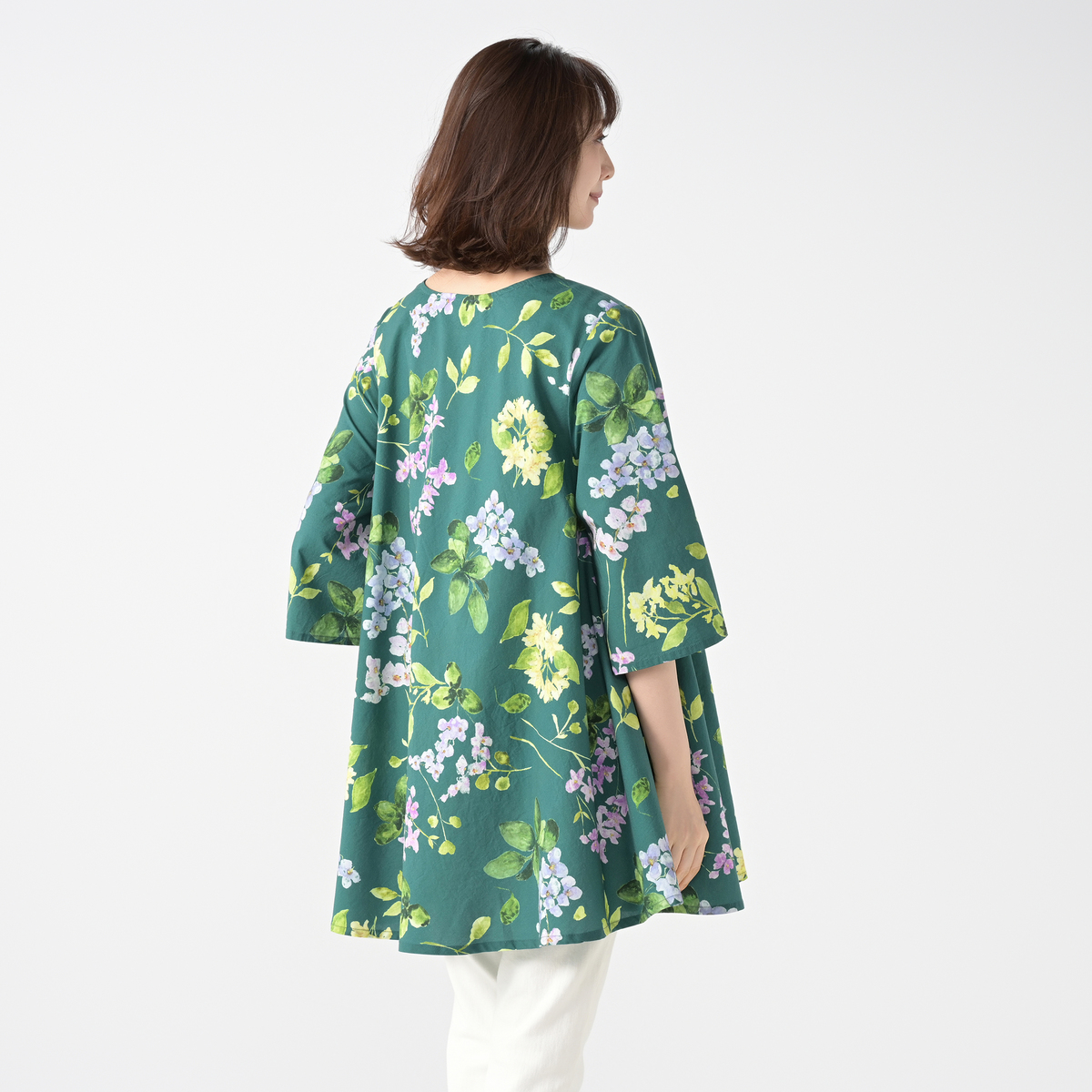 紫陽花ホワイトを注文しました。残念なことに、紫陽花の柄が正面と後ろだけで側面は白無地、脇から下の身頃がたっぷりあるので、何かだらしない感じに見えました。 大きいサイズだったので余計白無地の部分が多かったのではないかと思います。普通サイズならあまり気にならないかも。