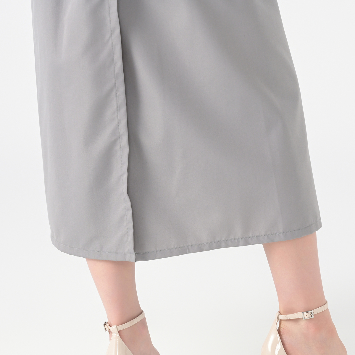 上品な光沢感のある軽やかな素材を使用。適度なハリと落ち感があり、美しいシルエットで着こなせます。ご家庭で洗濯機洗い可能で、お手入れも簡単です