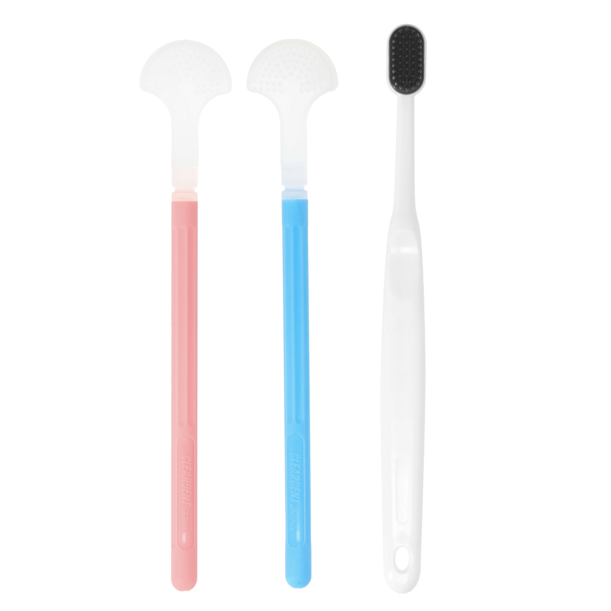 [商品内容] ・タンクリーナー×2本(ピンク・ブルー) ・歯ぐきマッサージブラシ <タンクリーナー> [サイズ] ブラシ部分:幅3×奥行0.8cm 全体の長さ:16.7cm [重量] 1本あたり5g [材質] ブラシ、スキージー:エラストマー樹脂 ハンドル:ポリプロピレン [使用方法] 1)タンクリーナーを舌にのせ、汚れをかき出すようにゆっくり手前に引いてください。※息を吐きながら使用すると嘔吐反応が出にくくなります 2)数回舌を磨いたらうがいをして、クリーナーを水で洗い流してください [注意事項] ※舌乳頭を傷付けないよう、やさしく使用してください ※あまり舌の奥まで入れすぎないようにしてください ※飲み込まないようにご注意ください ※子供の手の届かないところに置いてください ※煮沸による消毒は避けてください ※舌に異常(しこり・黒ずみなど)がある場合は、ご使用をお控えください ※快適に使用するために90日を目安にお取替えをおすすめします 【日本製】 <歯ぐきマッサージブラシ> [サイズ] ブラシ部分:縦1.9×横1.1×奥行1.2cm 全体の長さ:17.3cm [重量] 9g [材質] ブラシ:シリコンゴム ハンドル:ポリプロピレン [使用方法] 歯を磨いた後、歯ブラシと同じ要領で歯ぐきに当て、軽くゆっくり動かして1箇所20秒くらい振動を加えてマッサージします※使い慣れるまで、あまり強く力を入れたり、長時間しないでください [注意事項] ※使いはじめは特にやさしくマッサージしてください ※飲み込まないようにご注意ください ※子供の手の届かないところに置いてください ※煮沸による消毒は避けてください ※歯ぐきに異常がある場合は、ご使用をお控えください ※快適に使用するために90日を目安にお取替えをおすすめします 【日本製】