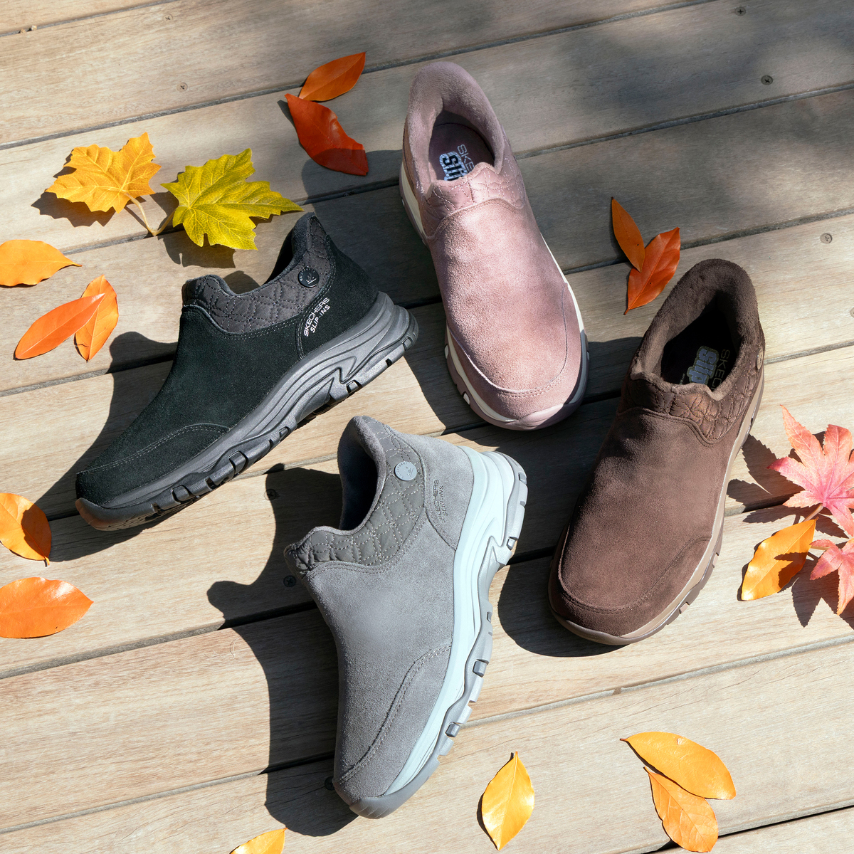 スケッチャーズの「ハンズフリースリップインズ」機能を踵部分に搭載。手を使わず、かがまずに着脱できるスリッポンシューズです。靴ベラのようなヒールピローの形状によりスムーズに足入れができ、脱げにくくなっています