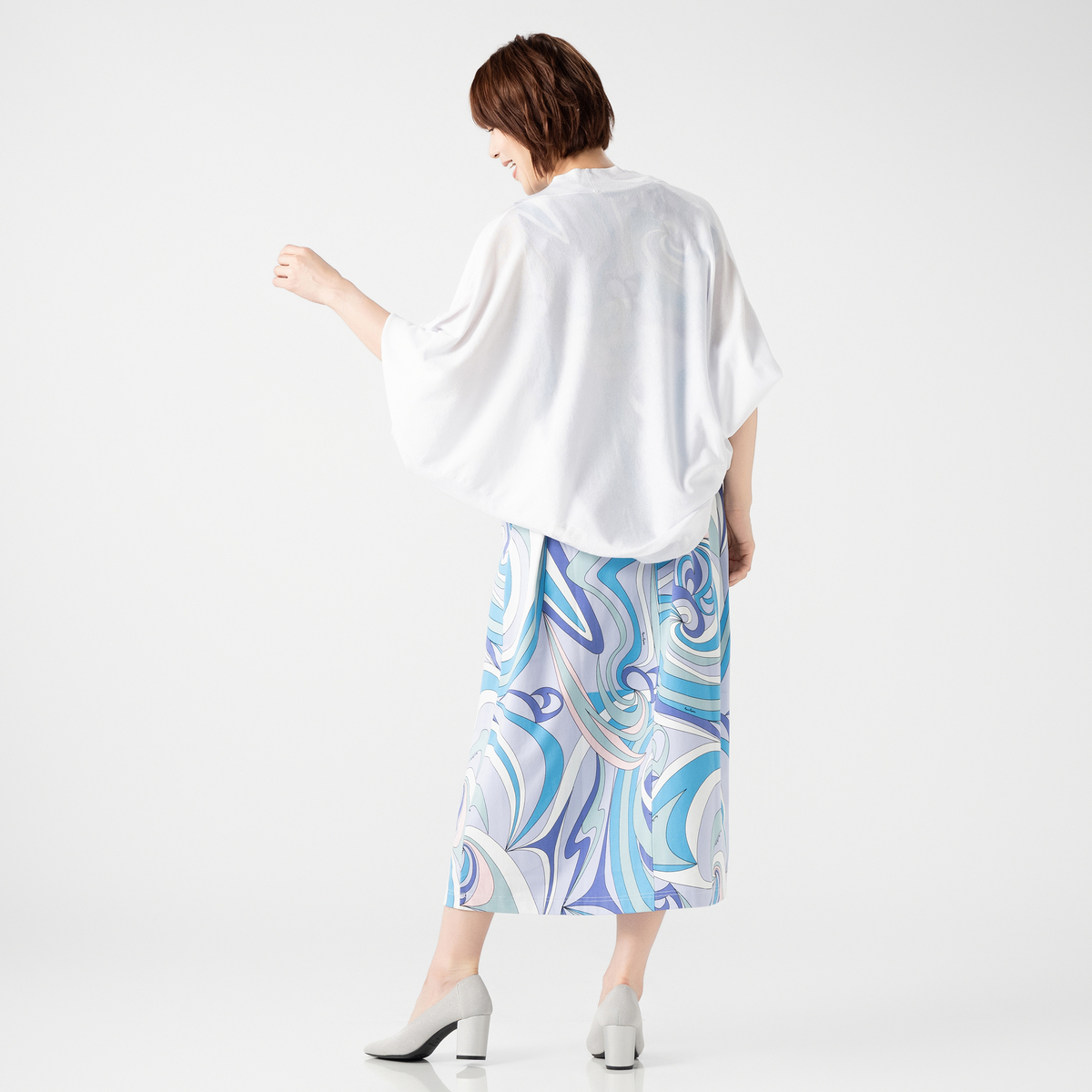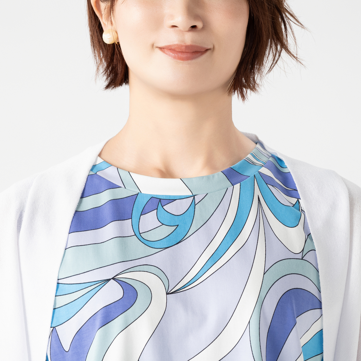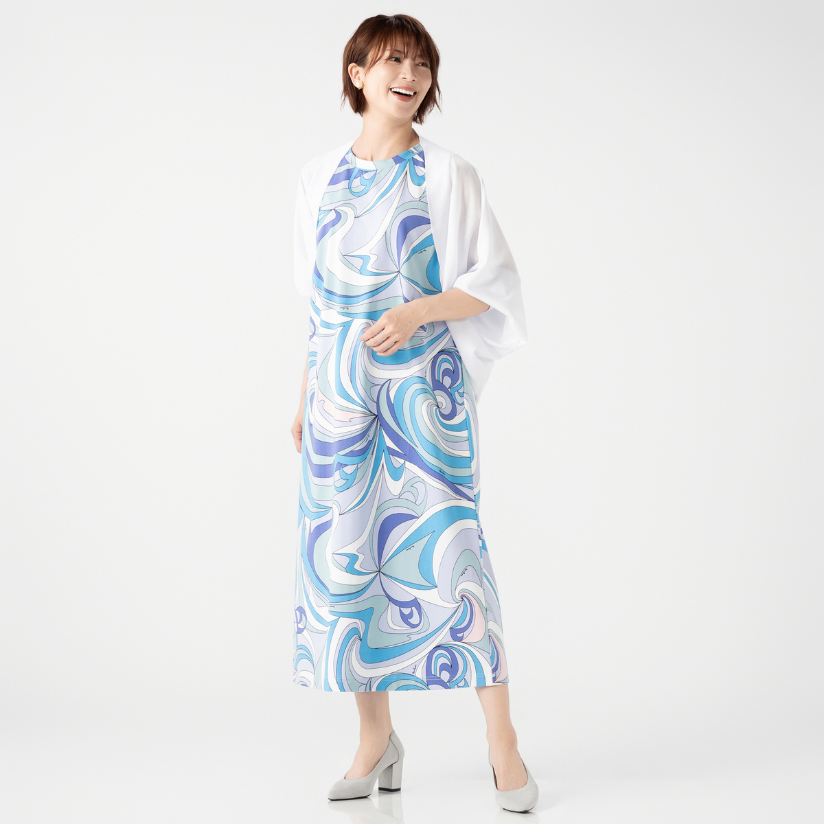 2023年の伝説、オソロテックスの再来?しかもマーブル柄にカーデ付き?とめちゃ期待していました。届いて広げると、鮮やかで美しいブルーのマーブル柄に心踊りましたが、生地が薄くてガッカリ。一昨年は(着用する時に頭入れで首元がヨレるのが残念)しっかりとした地厚で透け感は一切無く、裏地ナシでも安心、アイロン要らずと納得のオソロテックスでした!それに近いのを期待したのですが…。前回より系を1割軽く、と話してましたが、カーデもワンピも前より軽すぎて安っぽく期待外れでした。カーデはプロバドールさんのような、接触冷感でツルツル素材が良かったです。 頭入れの時どうしても首元がヨレてファンデで汚れやすいのは改善されました。欲を言えば首元はTシャツ風丸首よりも、ボートネック風にして片側にボタンを付けてもらえれば、長く綺麗に着用出来ると思います。一昨年3色買いするほどのお気に入り。次回は一昨年のオソロテックスの質感に戻してほしいなー。