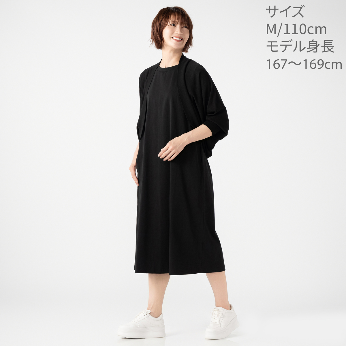 <ボレロ> [商品寸法(ヌード寸法)cm] サイズ バスト 着丈 裄丈 XS: (65〜73) 67 66 S: (72〜80) 67 67 M: (79〜87) 67 68 L: (86〜94) 67 69 LL: (93〜101) 67 70 3L: (100〜108) 68.5 71 [素材] ポリエステル61% レーヨン39% [仕様] ボタン・ホック:無 ファスナー:無 ポケット:無 スリット:無 <ワンピース> [商品寸法(ヌード寸法)cm] サイズ バスト 肩幅 XS: 92(65〜73) 35.5 S: 98(72〜80) 36.5 M: 104(79〜87) 37.5 L: 110(86〜94) 38.5 LL: 116(93〜101) 39.5 3L: 122(100〜108) 40.5 着丈:110/119 [素材] 綿65% ポリエステル35% [仕様] ボタン・ホック:無 ファスナー:無 ポケット:有(両脇) スリット:無 [お手入れ] 洗濯機洗い可 [注意事項] ※商品寸法の誤差は多少発生します。ご了承下さい ※淡色製品には蛍光増白剤入り洗剤を使用しないで下さい ※洗濯の際には必ずネットを使用して下さい ※洗濯・クリーニングの際、色落ちすることがありますので他の物と分けて洗って下さい ※洗濯後はすぐに脱水し、形を整えて干して下さい。長時間水につけたままにしないで下さい ※濃色製品は着用中の摩擦により色移りすることがあります。また、雨や汗等で濡れた状態で着用すると色移りすることがあります。その際はお早めに洗濯をして下さい ※濃淡色の組合わせを避けて着用することをおすすめします ※アイロンは当て布を使用して掛けて下さい 【中国製】