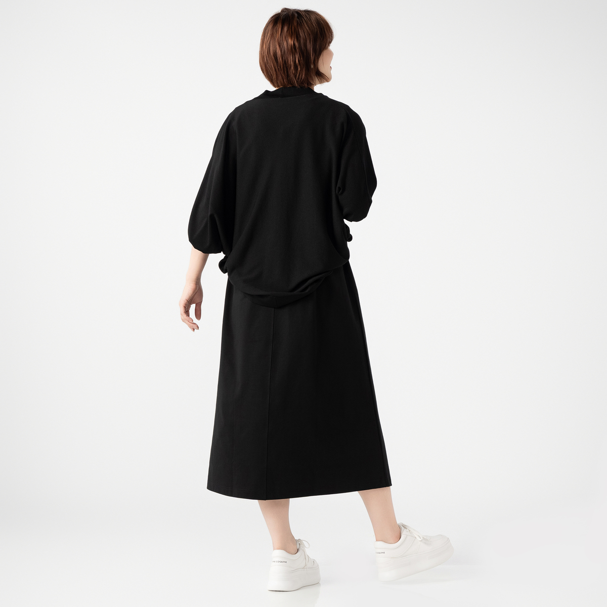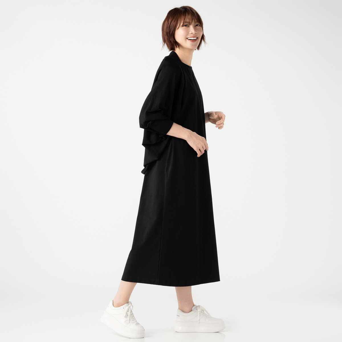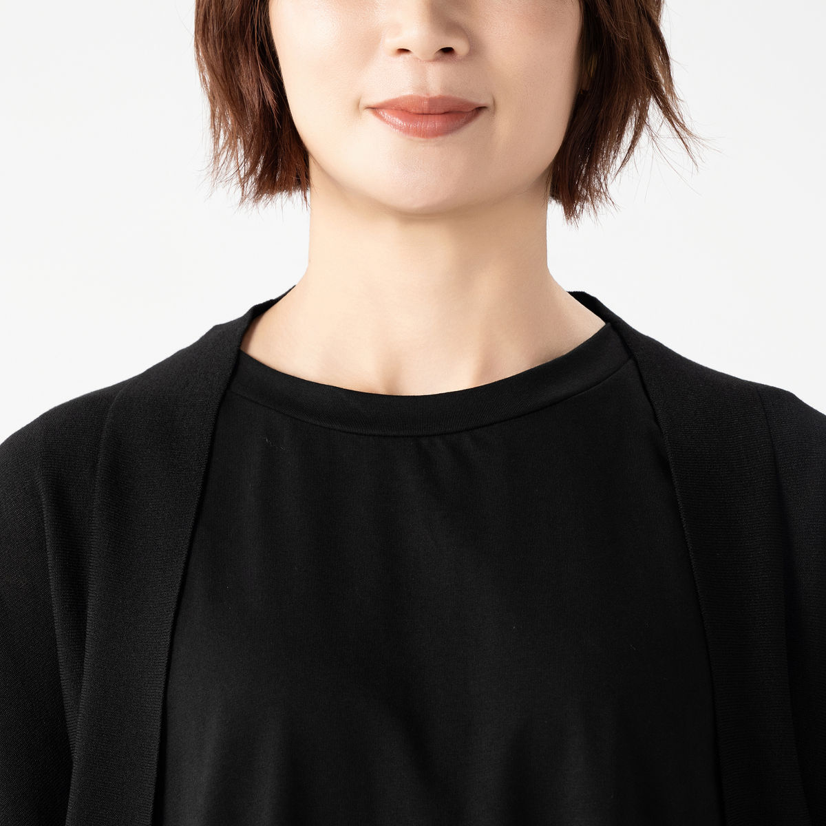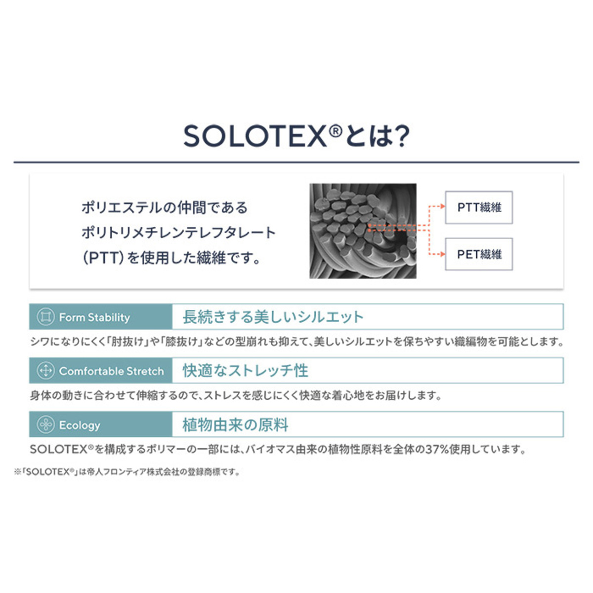ワンピースのみソロテックスのカットソー素材を使用。ソロテックスの一部には植物由来原料を使用しています。素材特性として耐久性があってシワになりにくく、身体の動きに合わせて伸縮。ストレスを感じにくい快適な着心地をお届けします