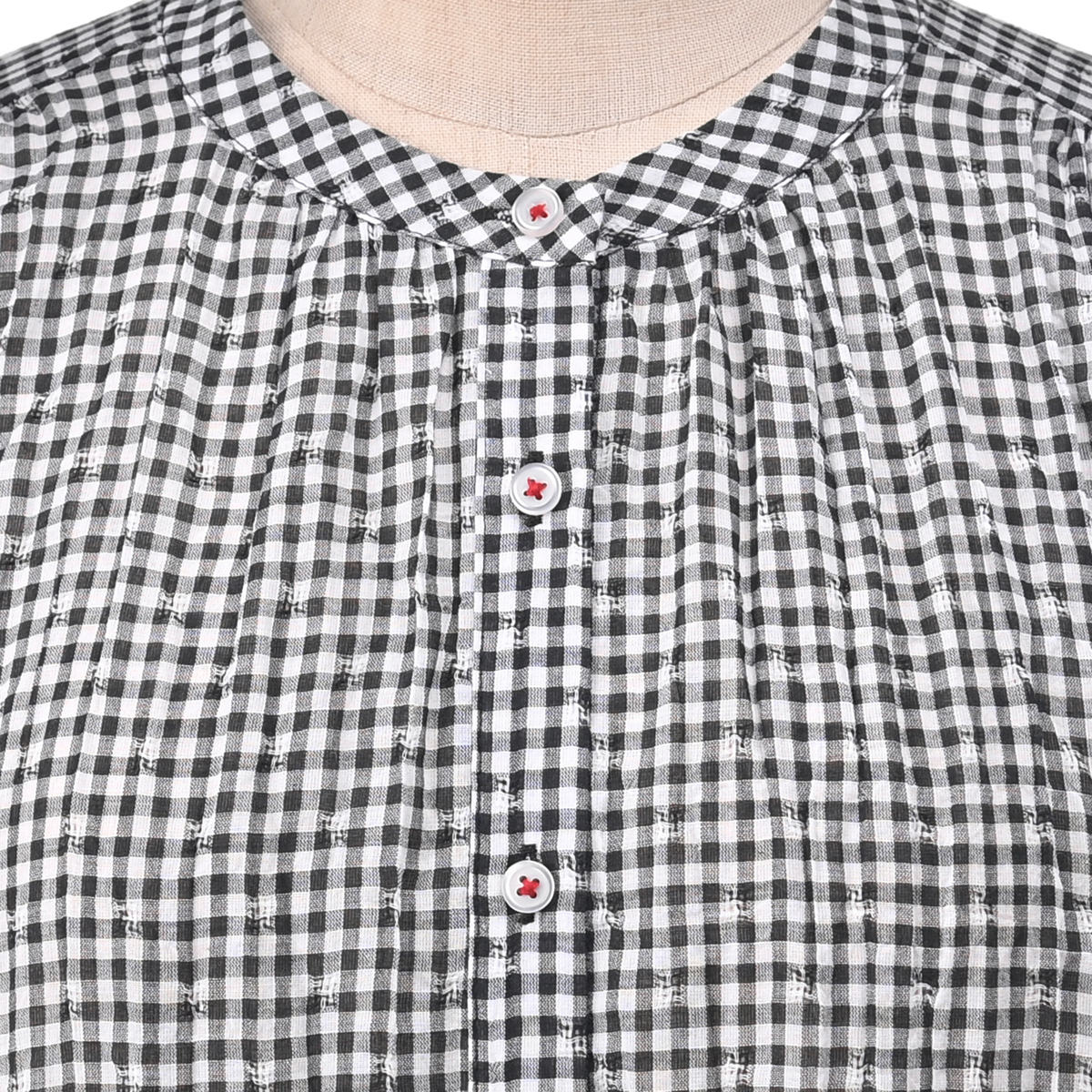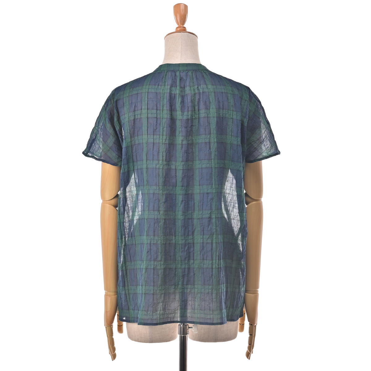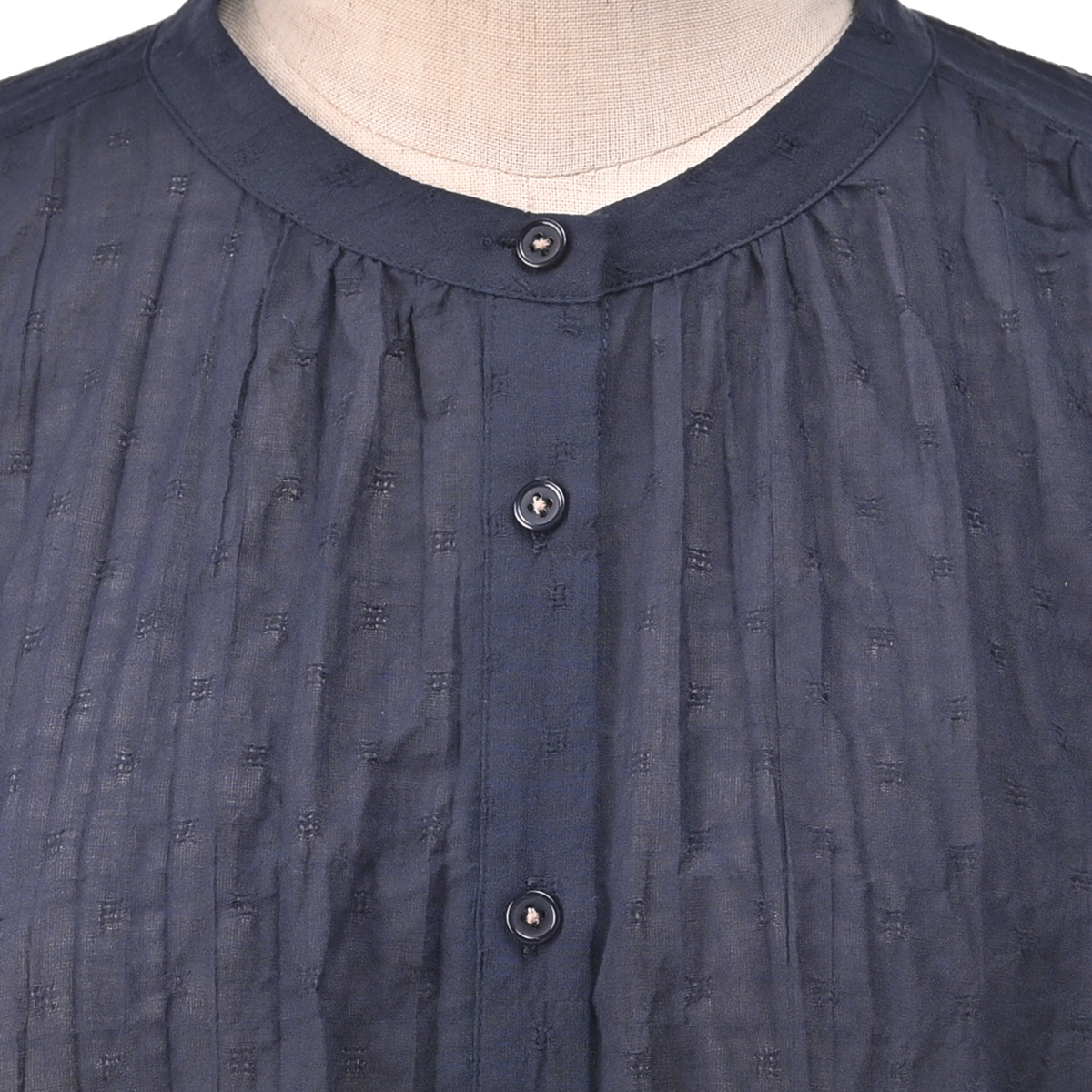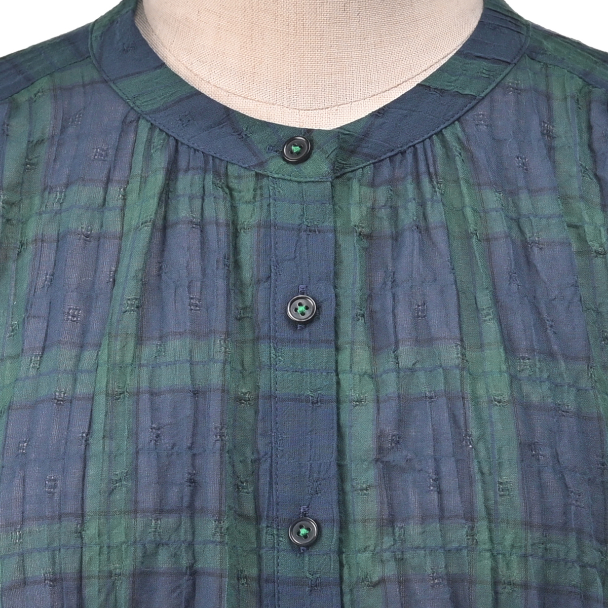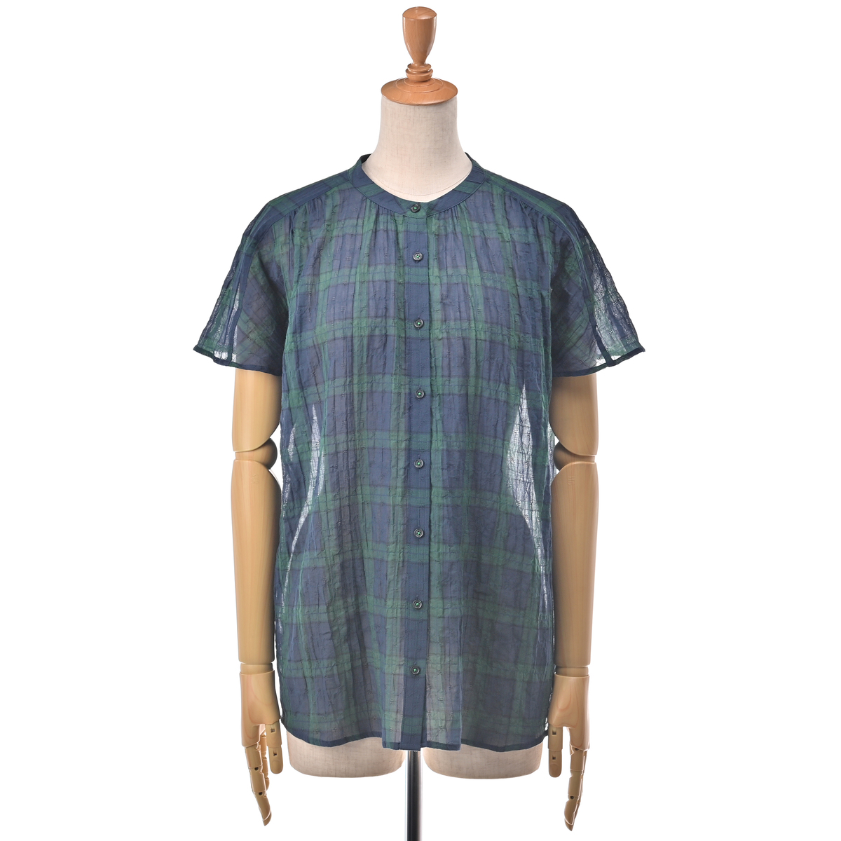首周りにギャザーを入れた着心地良いデザイン。前開きボタン仕様で、ボタンを開けて羽織としても着られますし。ゆったりめのサイズ感で涼しくご着用いただけます