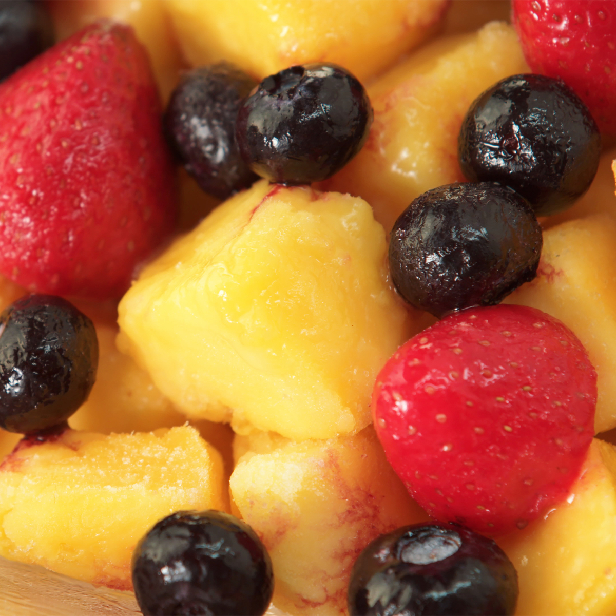 [アレルギー物質特定原材料8品目] なし [内容量] 400g×4袋 [賞味期限]出荷時点で賞味期限まで180日以上ある商品をお届けします [保存方法] 開封前:冷凍(ー18℃以下)にて保存 開封後:開封後はお早めにお召し上がりください [お召し上がり方] ・解凍してそのままお召し上がりください ・凍ったままの本品と少量の水をミキサーに入れ撹拌してスムージーとしてお召し上がりください ・半解凍したアサイーピューレと凍ったままの本品をミキサーに入れ、少し硬さが残る程度に撹拌して器に盛ってください。お好みでグラノーラやココナッツフレーク、バナナなどのフルーツをトッピングすれば、彩りも食感も楽しめるアサイーボウルの完成です [注意事項] ※解凍後は、すぐにお召し上がりください ※冷凍庫内に保存すると庫内の匂いが付着する恐れがございますのでご注意ください ※一度溶けたものを再び凍らせると、味、品質、鮮度が落ちますのでご注意ください [原料原産地] マンゴー(ペルー) [原産国] 日本 [原材料] マンゴー(ペルー)、ストロベリー、ブルーベリー