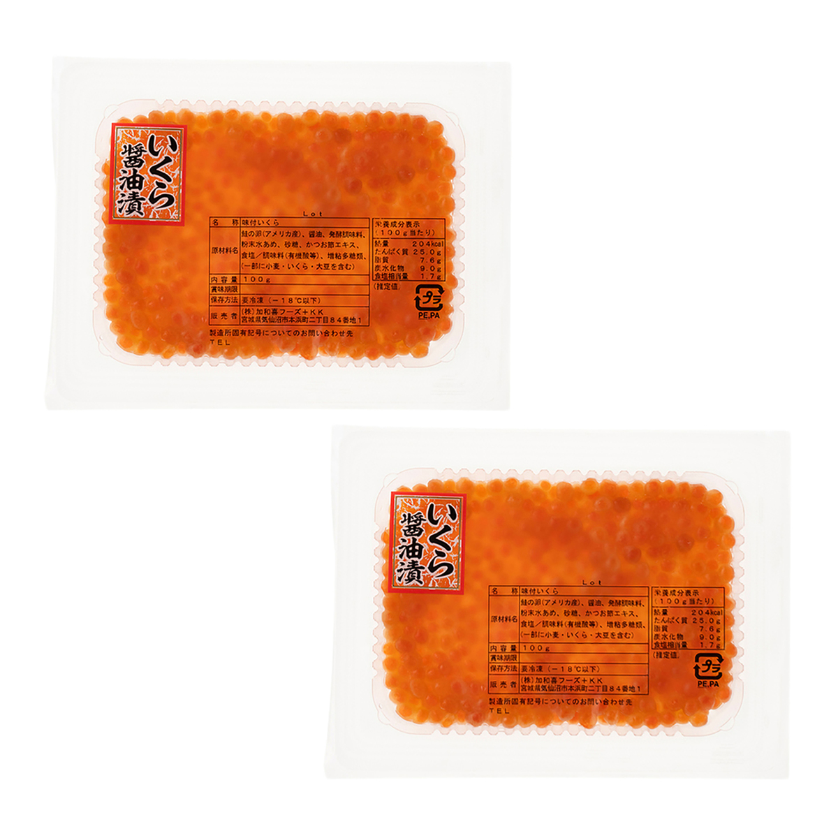 [アレルギー物質特定原材料8品目] 小麦 [内容量] 100g×2 [賞味期限] 出荷時点で賞味期限まで120日以上ある商品をお届けします [保存方法] 開封前:要冷凍(ー18℃以下)で保存してください 開封後:冷蔵で保存しお早めにお召し上がりください [お召し上がり方] 解凍後、そのままお召し上がりください [注意事項] ※再凍結は品質を損なう恐れがありますのでお避け下さい [原料原産地] 鮭の卵(アメリカ産) [原産国] 日本 [原材料] 鮭の卵(アメリカ産)、醤油、発酵調味料、粉末水あめ、砂糖、かつお節エキス、食塩/調味料(有機酸等)、増粘多糖類、(一部に小麦・いくら・大豆を含む)