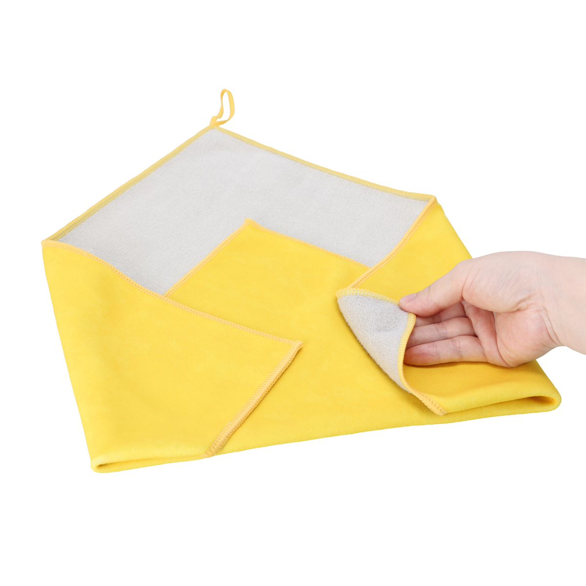 タオル地(厚さ約2.5ミリメートル)で程よい厚みと柔らかさがあり、包んだ物を小キズ等からやさしく守ります。極細繊維が密集した素材なので、冷えたペットボトルや濡れた折りたたみ傘の水滴をしっかり吸水してくれます(本製品は防水仕様ではありません)