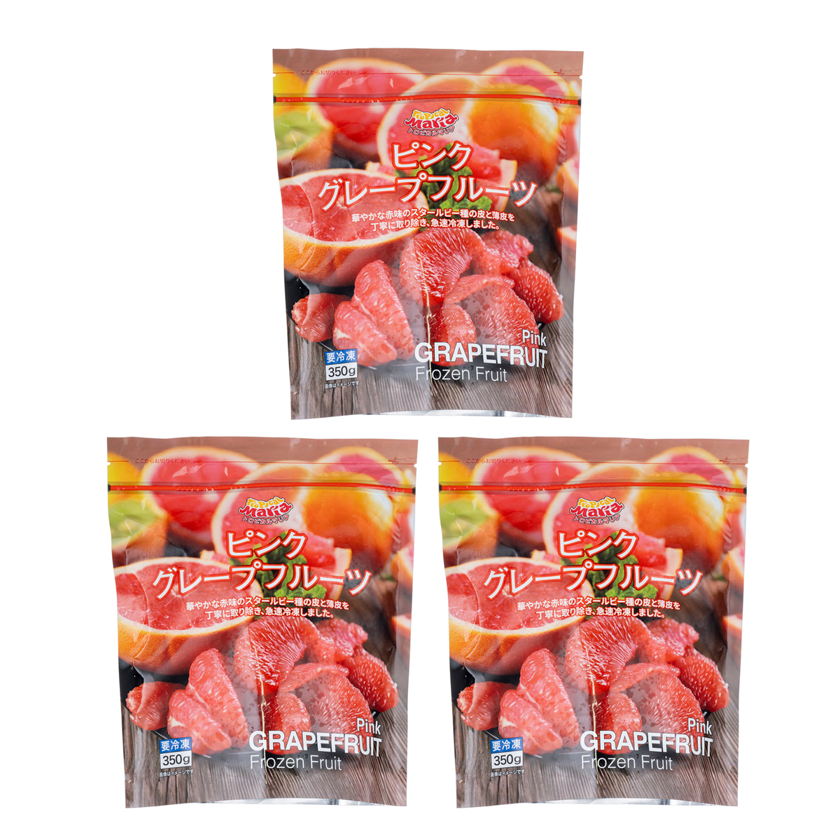[アレルギー物質特定原材料8品目] なし [内容量] 350g×3袋 [賞味期限] 出荷時点で賞味期限まで240日以上ある商品をお届けします [保存方法] 開封前:冷凍(ー18℃以下)にて保存 開封後:開封後はお早めにお召し上がりください [お召し上がり方] ・冷蔵庫または、常温にて半解凍し、そのままお召し上がりください ・お好きな分量を自然解凍し、ヨーグルトやサラダなどにトッピングしてお召し上がりください [注意事項] ※解凍後はすぐにご使用ください ※再凍結は避けてください ※皮の表面に黒い点・緑色の部分が見受けられる場合がございますが、品質には問題ございません [原産国] トルコ [原材料] グレープフルーツ