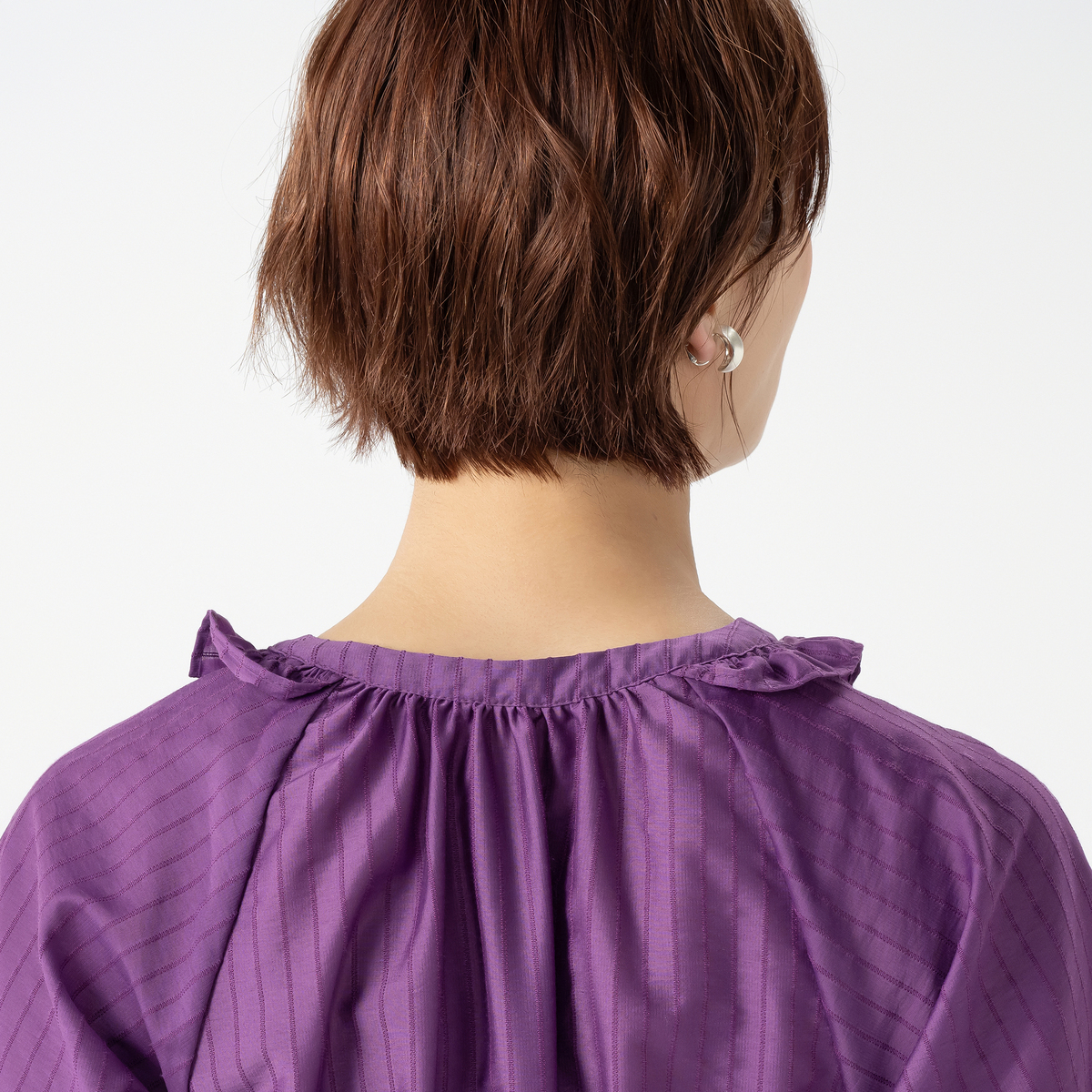 繊細で軽やかな素材のため、透け感があります。重ね着での着用や、インナーでの調整をお勧めします。