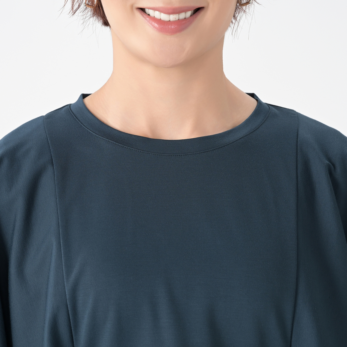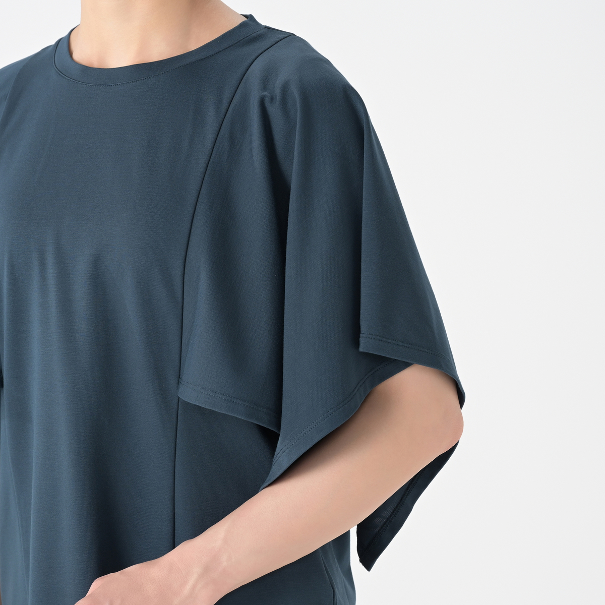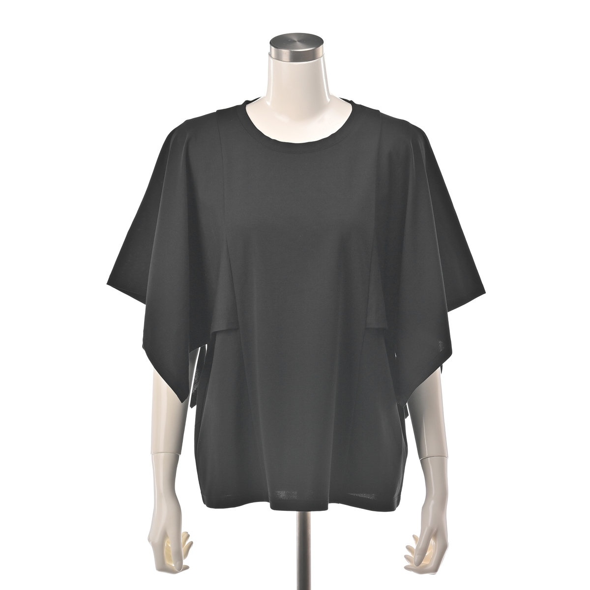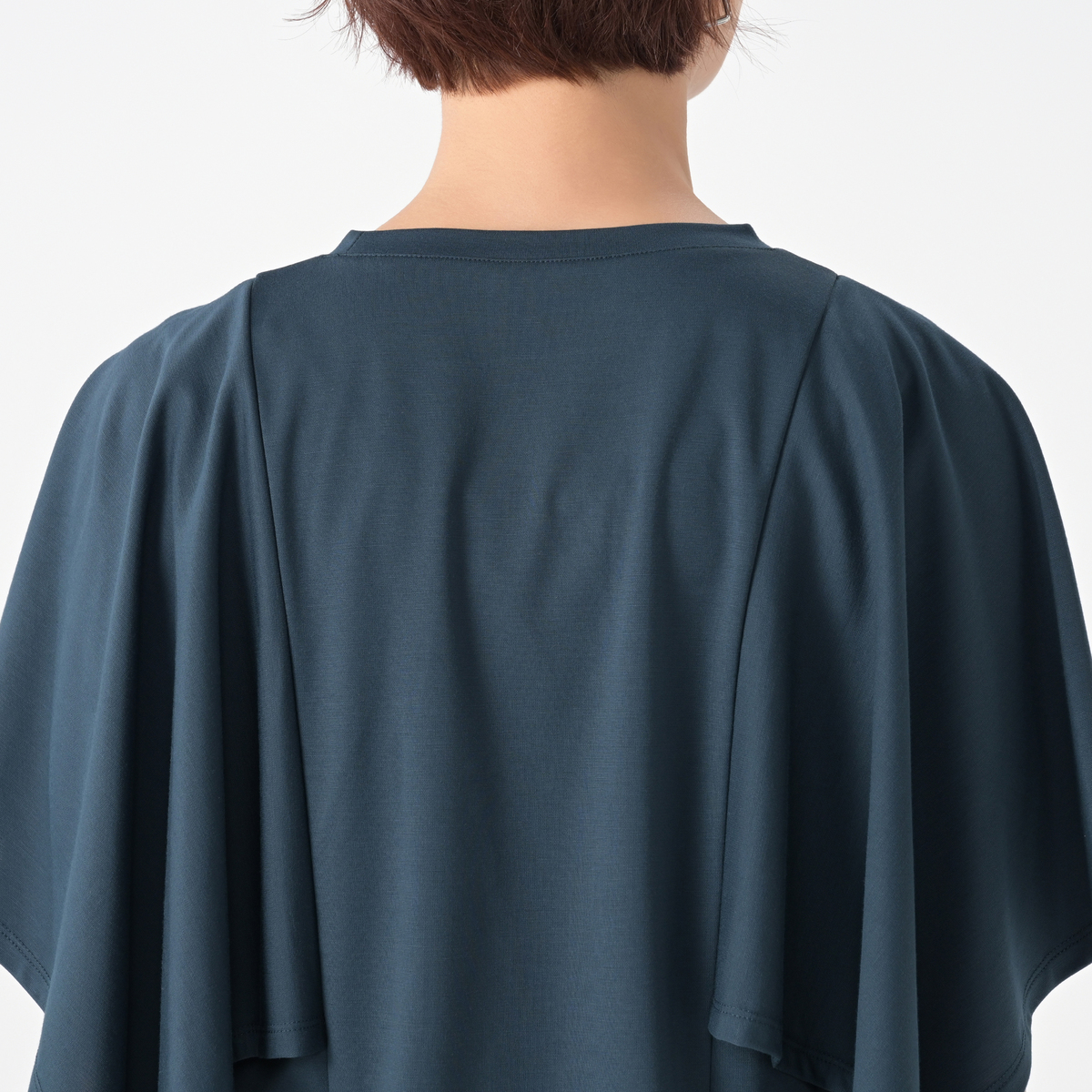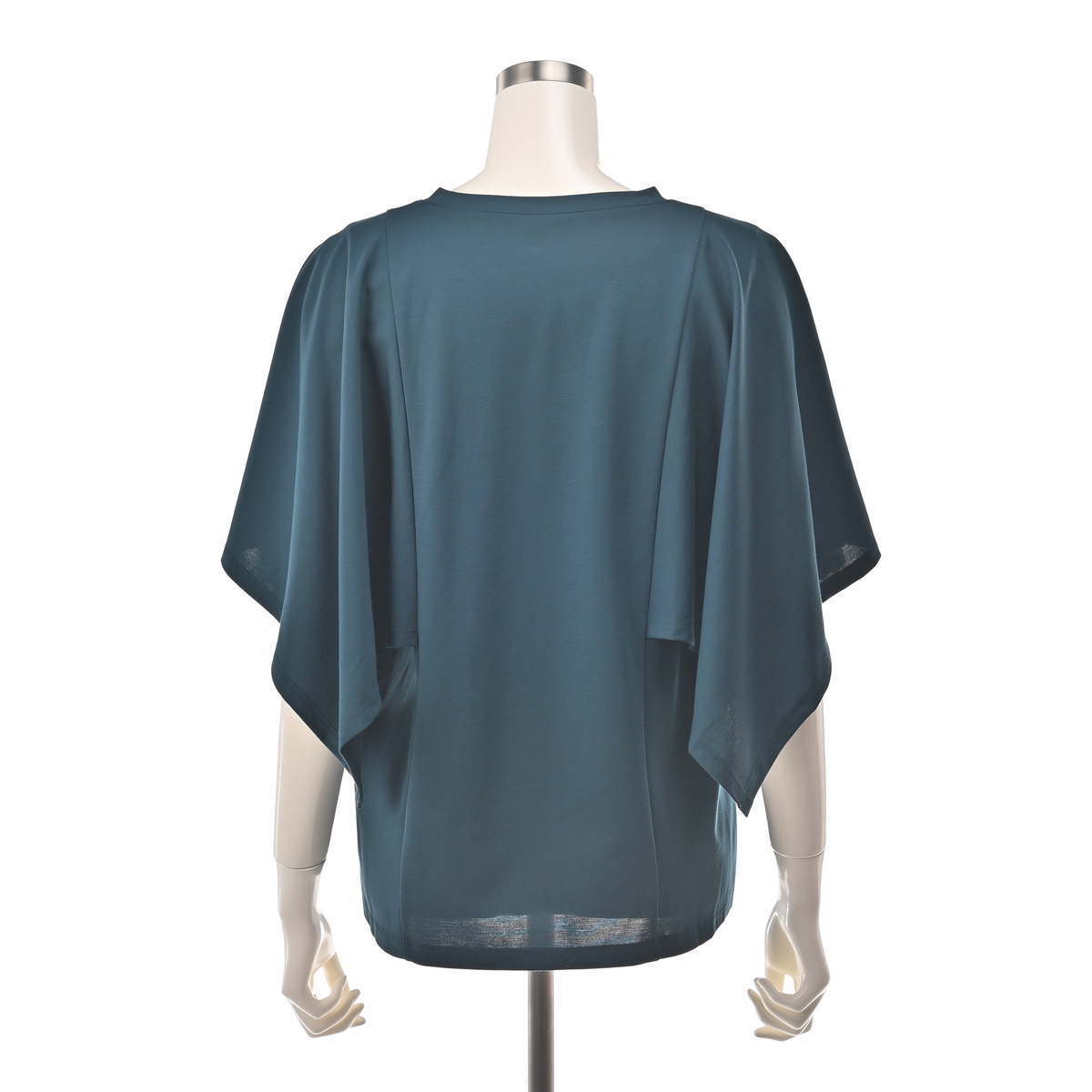 ケープショルダーが印象的なプルオーバー。シンプルながらも表情豊かで動きのあるデザインです。袖口が広めで袖下が縫われていないため、抜け感があり、爽やかな着心地をお楽しみいただけます