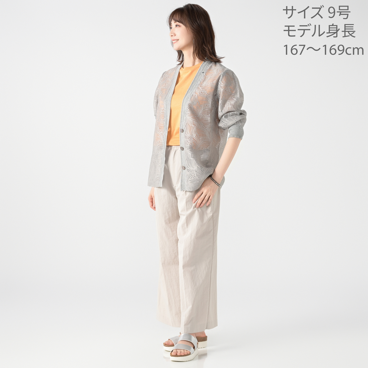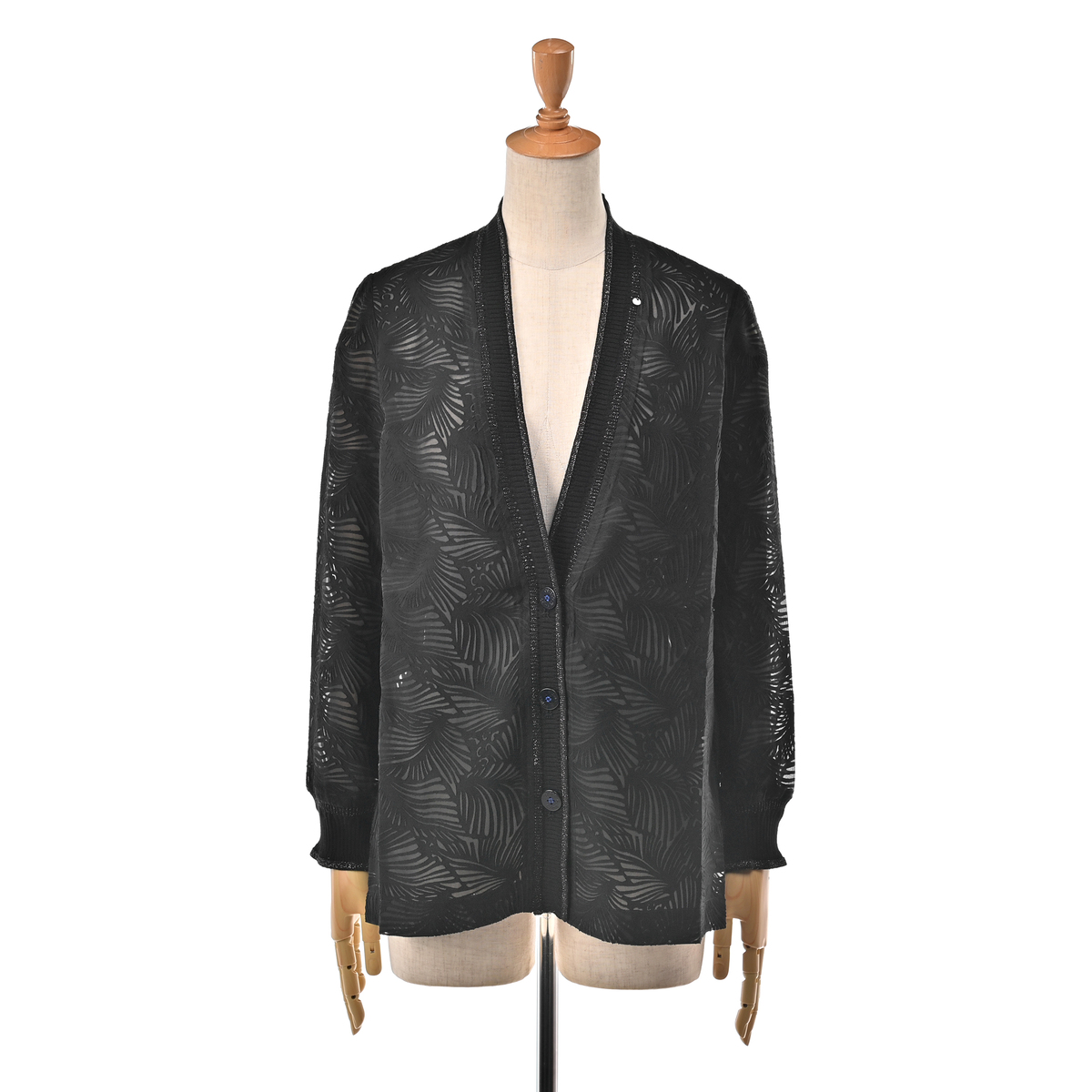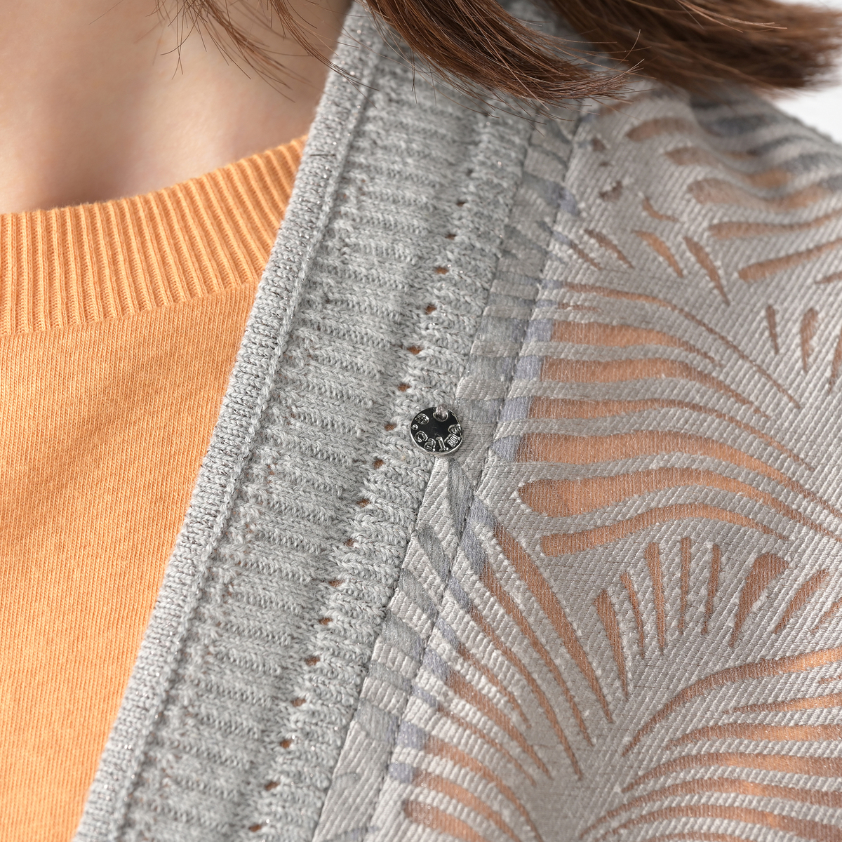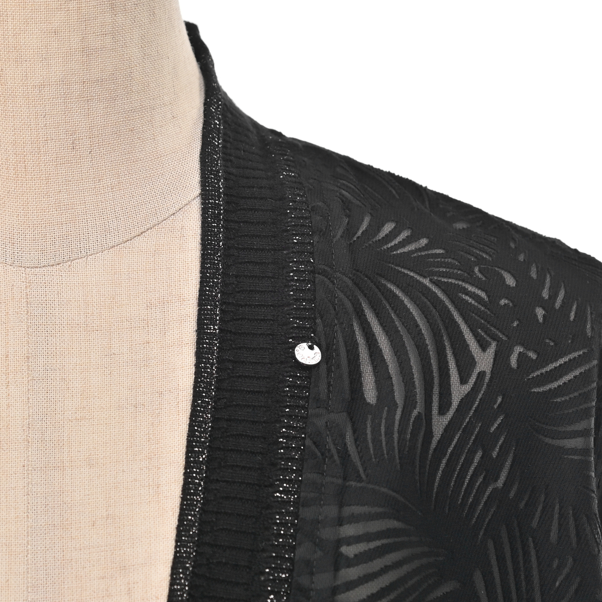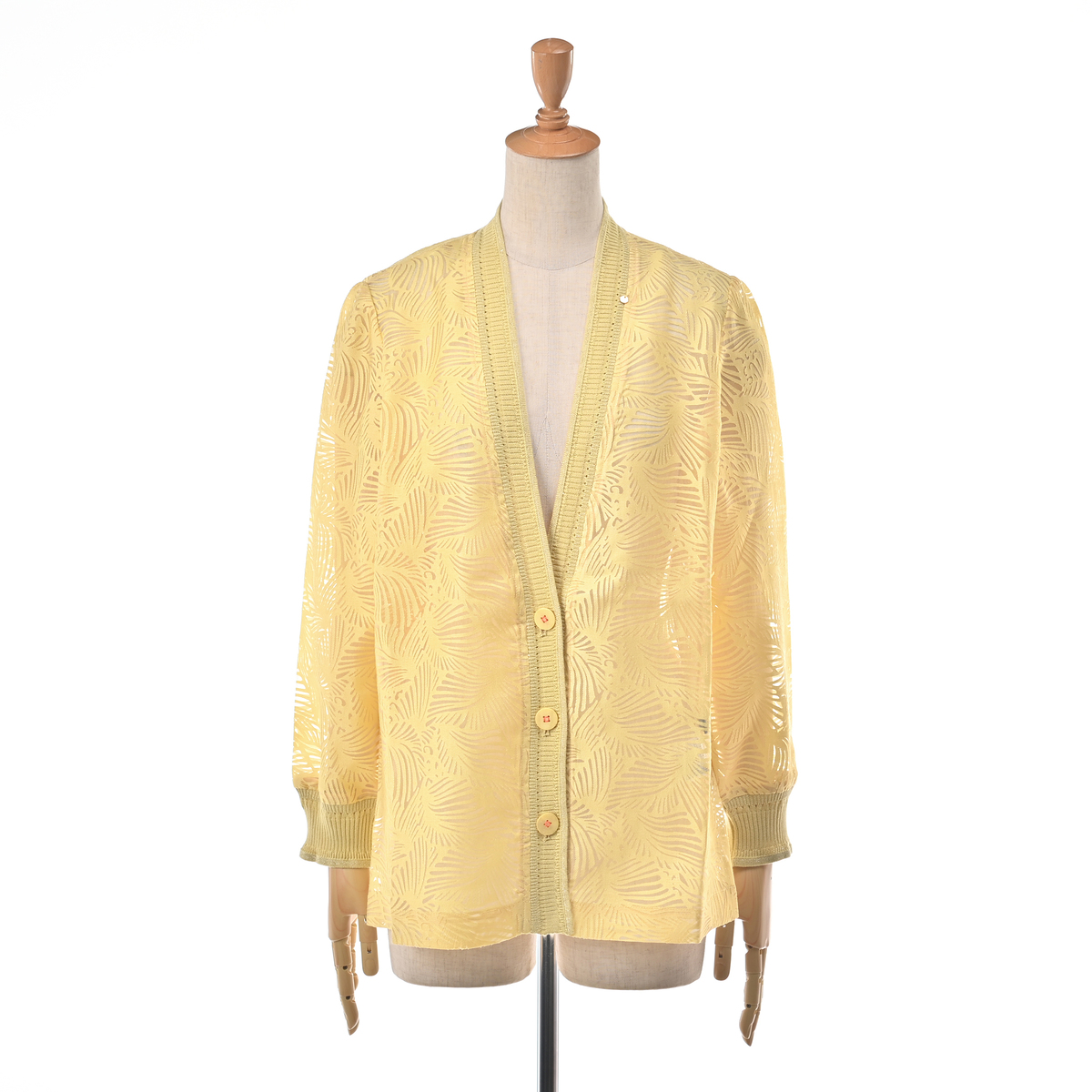 透け感のあるリーフ柄が軽やかなオパール加工生地のジャケディガン。カーディガンとジャケットの特徴を組合せたアイテムです