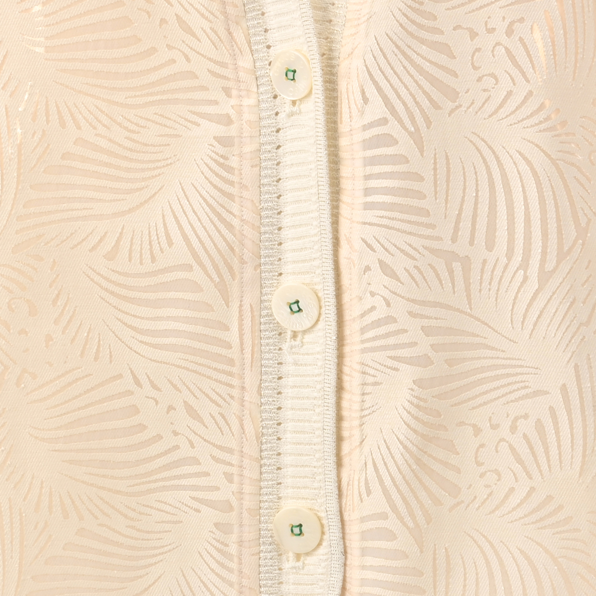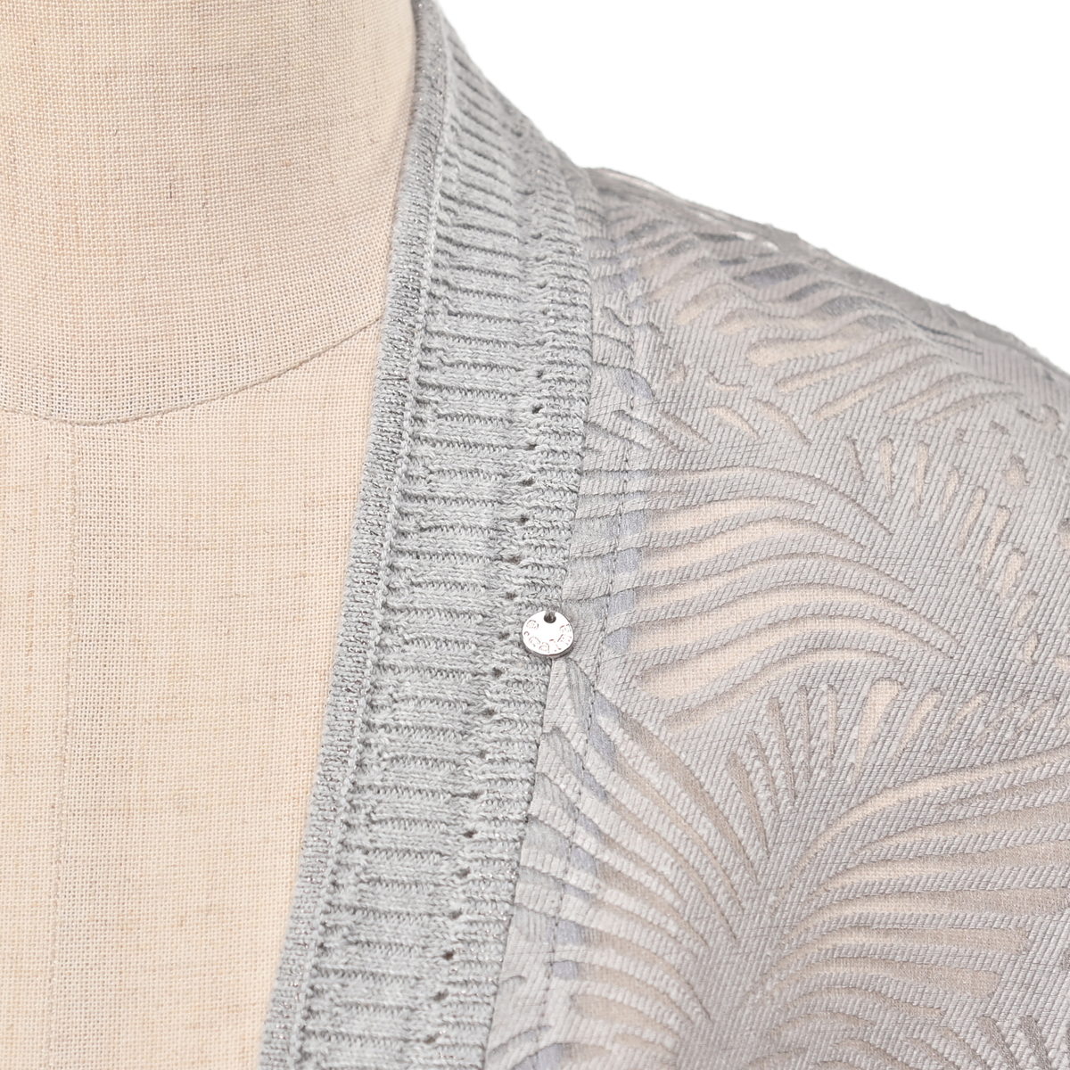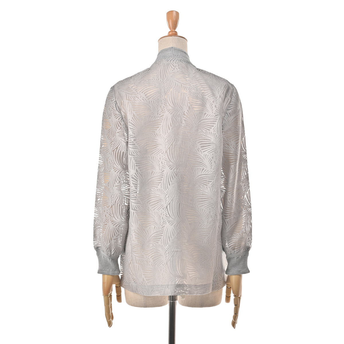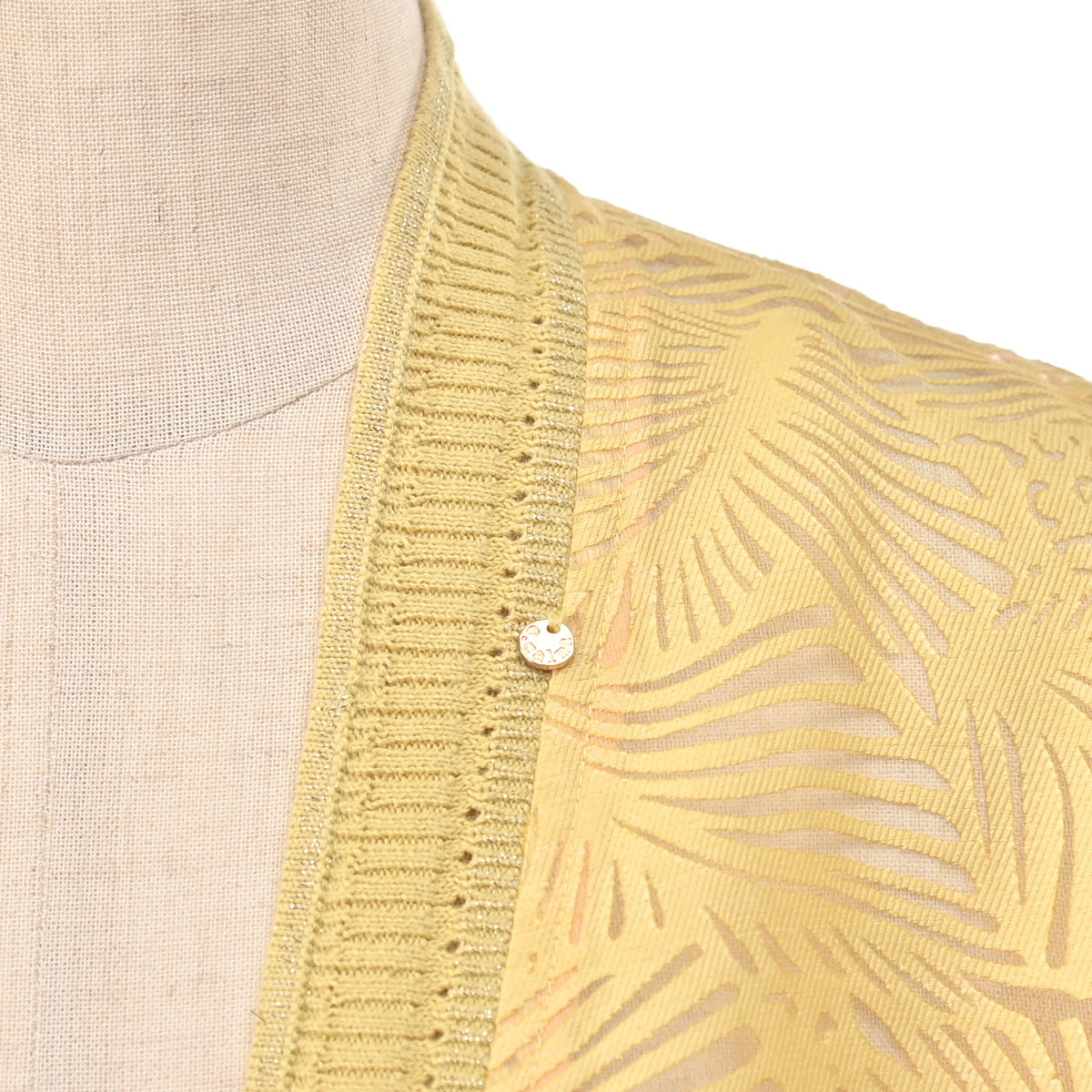 透け感のあるリーフ柄が軽やかなオパール加工生地のジャケディガン。カーディガンとジャケットの特徴を組合せたアイテムです