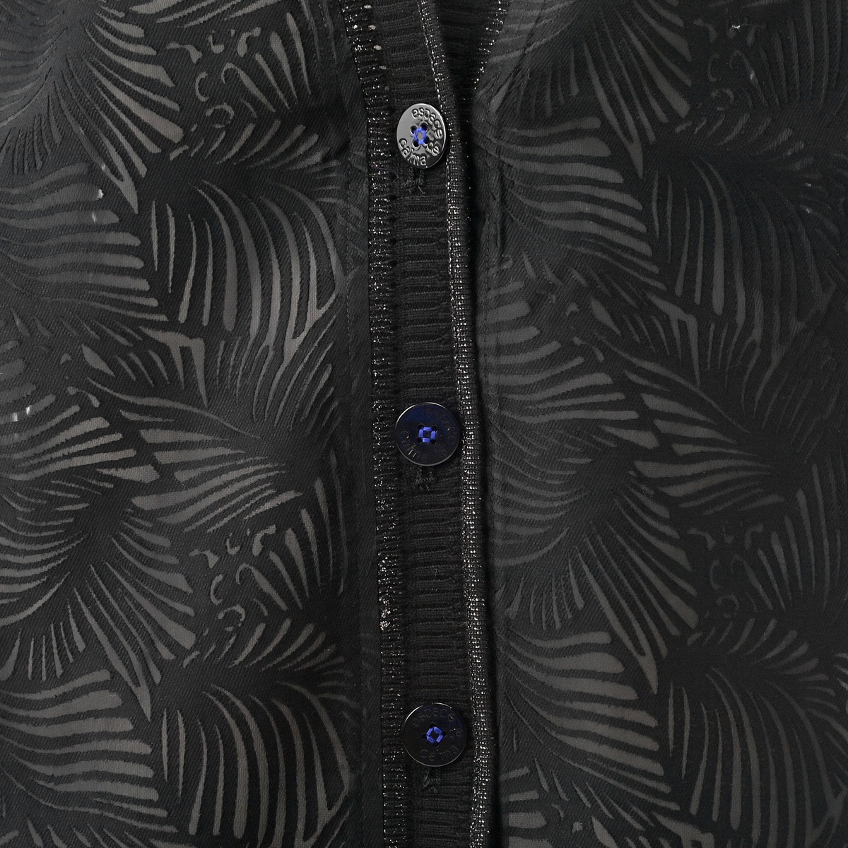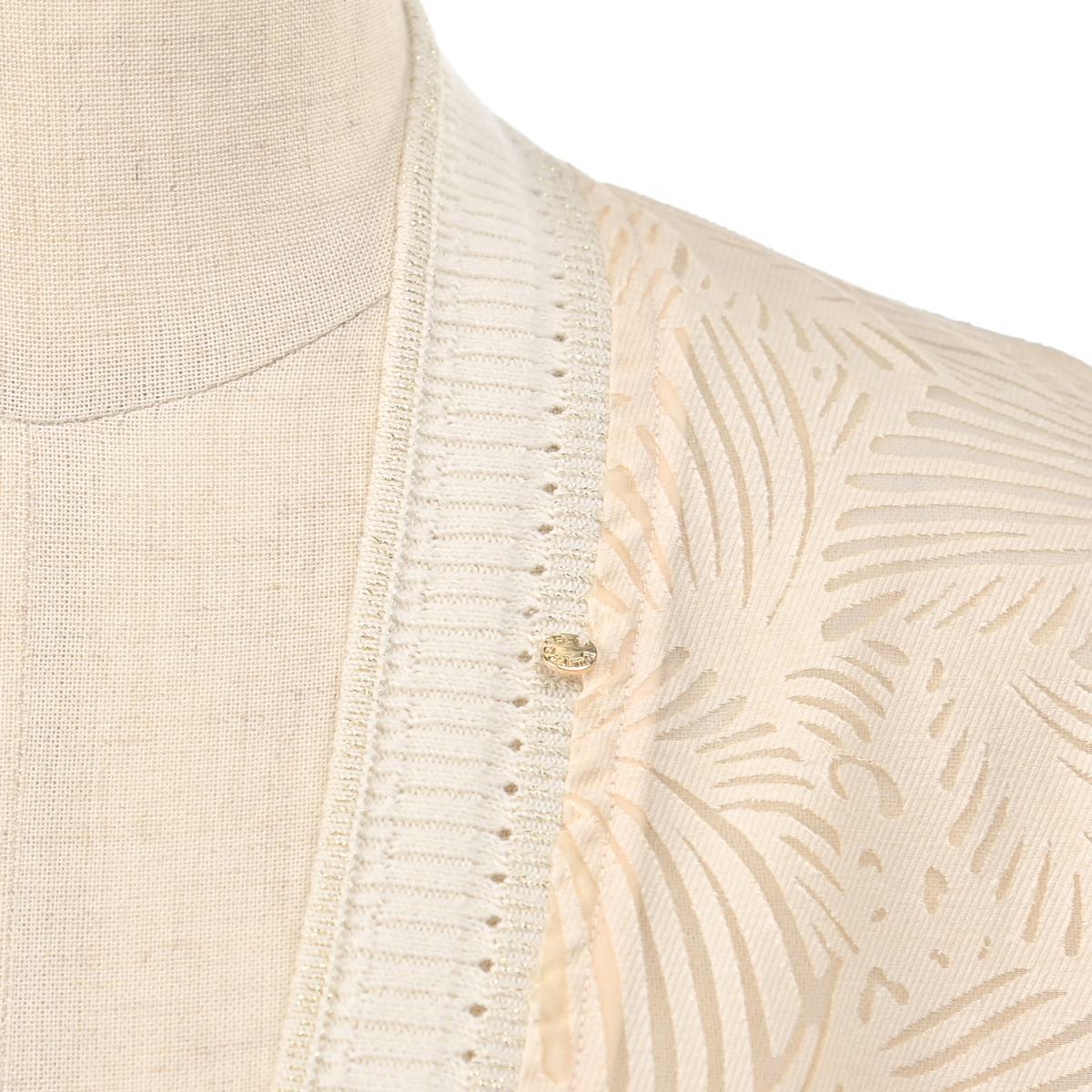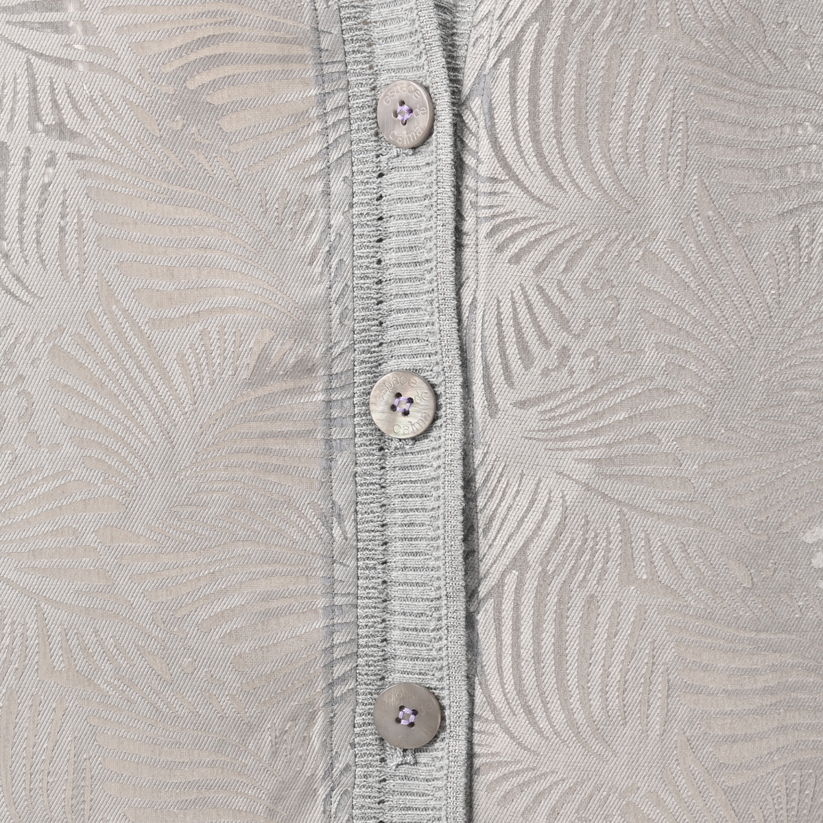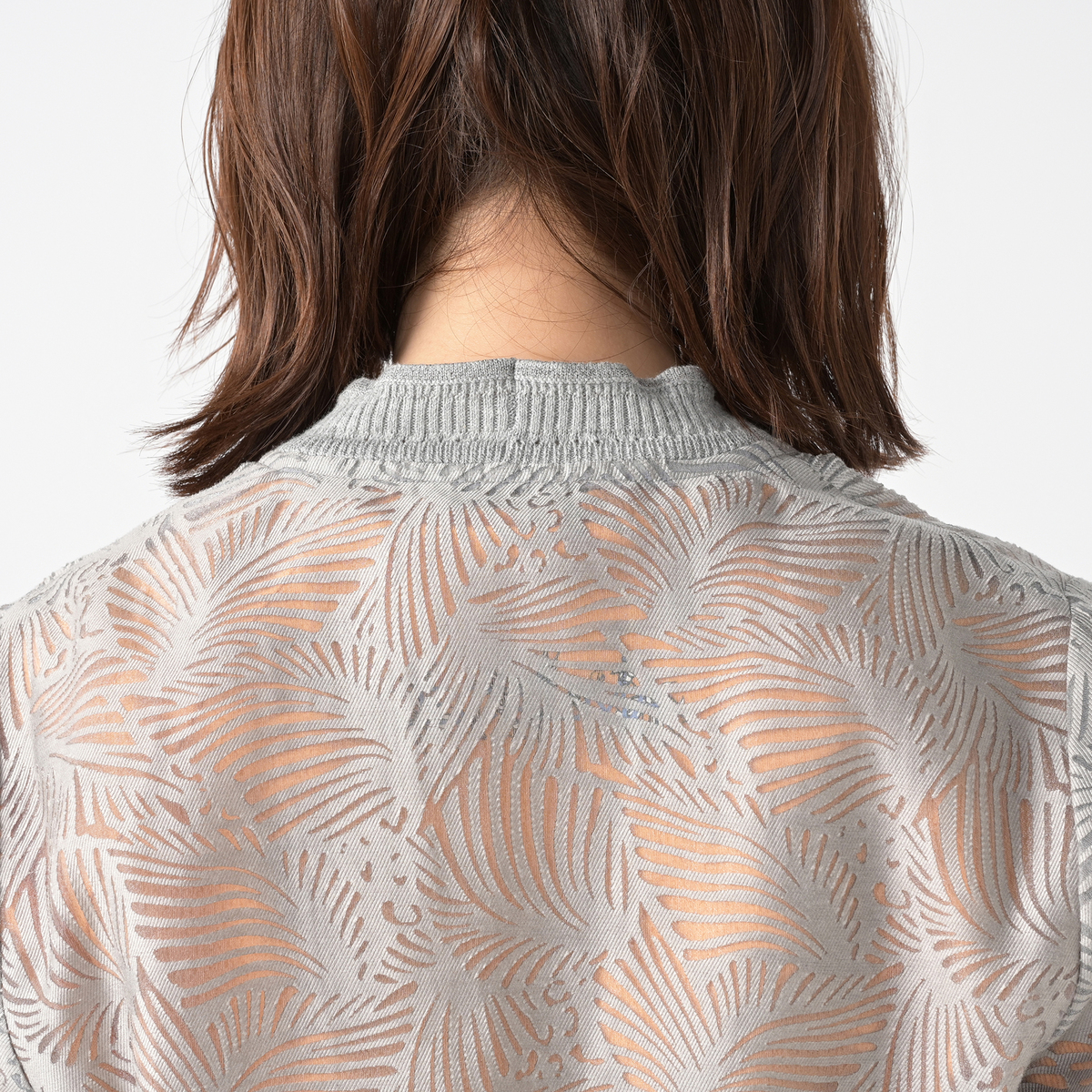 透け感のあるリーフ柄が軽やかなオパール加工生地のジャケディガン。カーディガンとジャケットの特徴を組合せたアイテムです