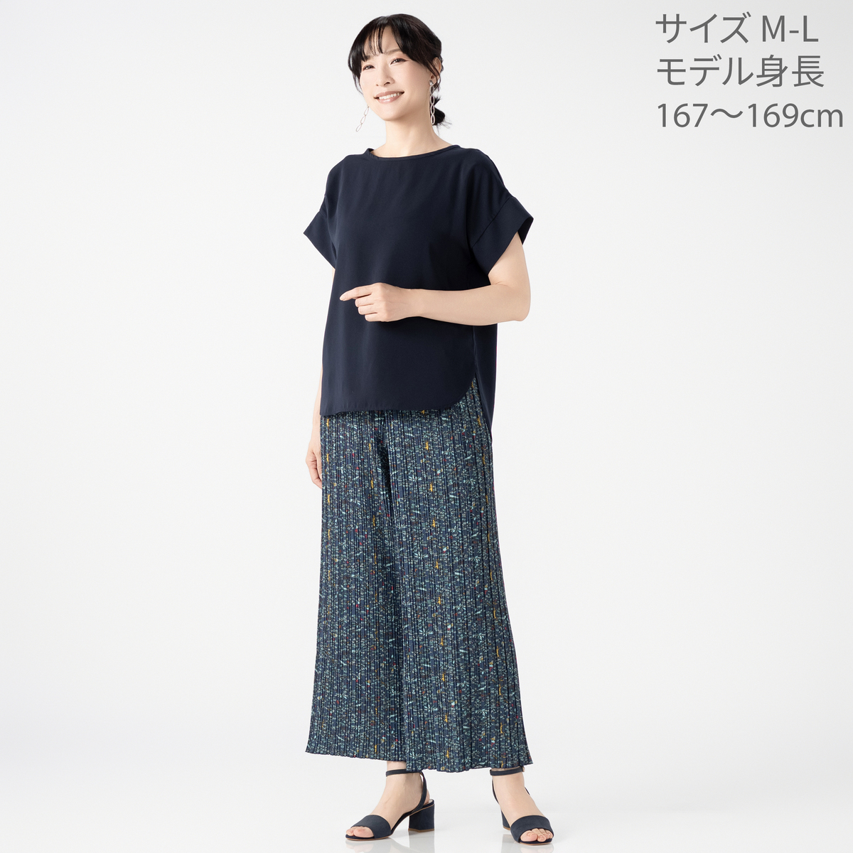 [商品寸法(ヌード)cm] サイズ ウエスト ヒップ 股下 SSーS : 60(61〜66)(81〜87) 65 MーL : 66(65〜75)(85〜96) 65 LLー3L : 74(76〜87)(95〜106) 65 サイズ 前股ぐり わたり幅 SSーS : 27 24 MーL : 29 26 LLー3L : 31 29 [ウエストゴム] 全体に有 [素材] 本体:ポリエステル95% ポリウレタン5% ゴム部分:ポリエステル100% [お手入れ] 洗濯機洗い可 [注意事項] ※商品寸法の誤差は多少発生します。ご了承下さい ※淡色製品には蛍光増白剤入り洗剤を使用しないで下さい ※洗濯後はすぐに脱水し、形を整えて干して下さい。長時間、水につけたままにしないで下さい ※濃色製品は着用中の摩擦により色移りすることがあります。また、雨や汗等で濡れた状態で着用すると色移りすることがあります。その際はお早めに洗濯をして下さい ※プリント部分を擦ったり、揉んだりしないで下さい ※プリントは強く力を加えたり、洗濯すると脱落することがあります ※座りジワになったりプリーツがあまくなった場合は霧吹き等で湿らせてから吊り干しして下さい ※スチームアイロンを浮かしながら掛け、形を整えて下さい ※洗濯ネットを必ず使用して下さい ※洗濯の際、色落ちすることがありますので、他の物と分けて洗って下さい ※この製品は、光により退色しやすいので太陽光や蛍光灯等が長時間当たる所で保管しないで下さい ※着用時にベルトやバッグ、周囲の壁など、表面の粗いものとの摩擦や引っかかりに注意して下さい ※この製品のプリントは永久的なものではありません。着用や洗濯により、脱落しやすくなります ※着用やクリーニングによりプリーツがとれることがあります。保管の際は、必ずハンガーに吊って下さい ※この製品のプリーツは永久的なものではなく着用や洗濯により消失しますのでご了承下さい 【中国製】