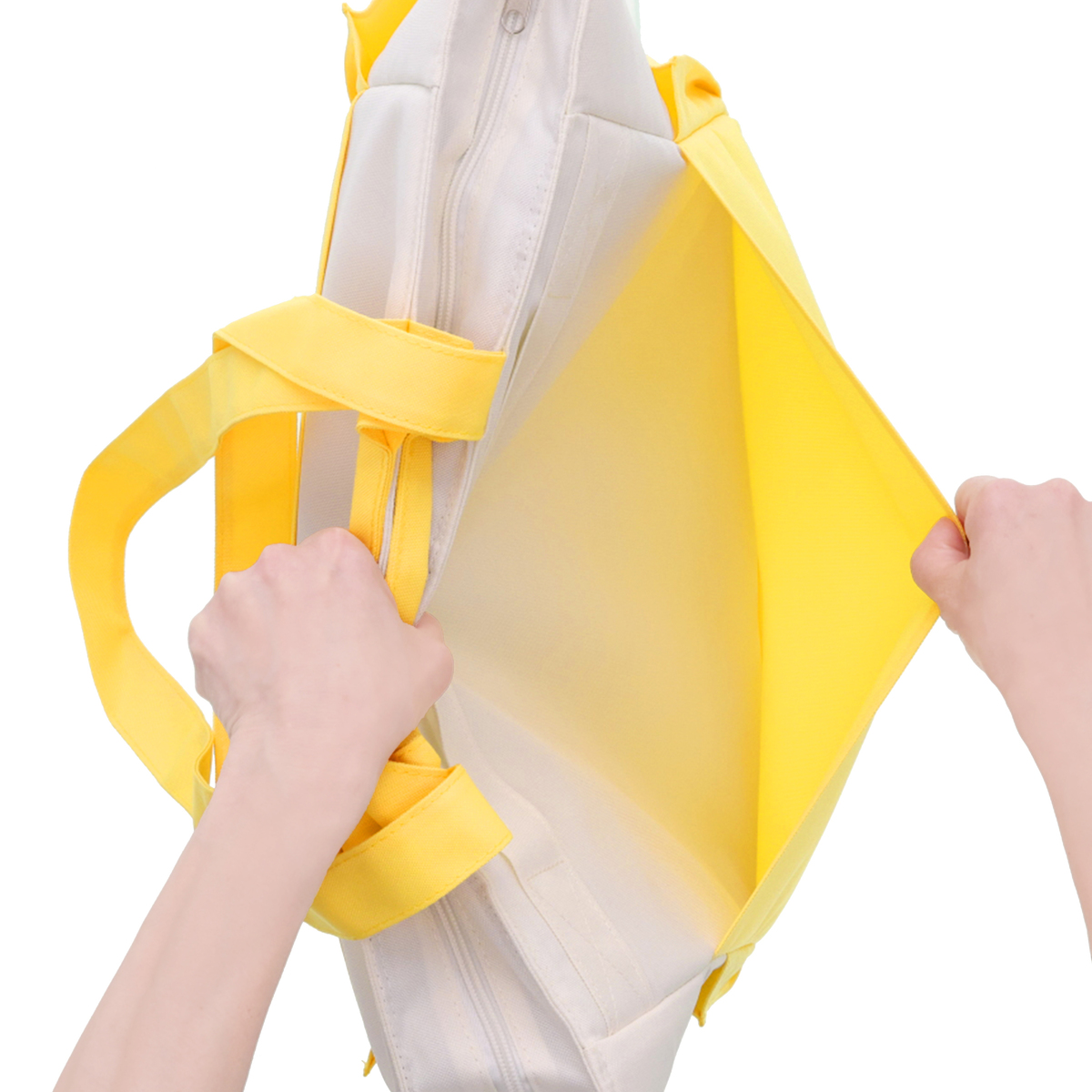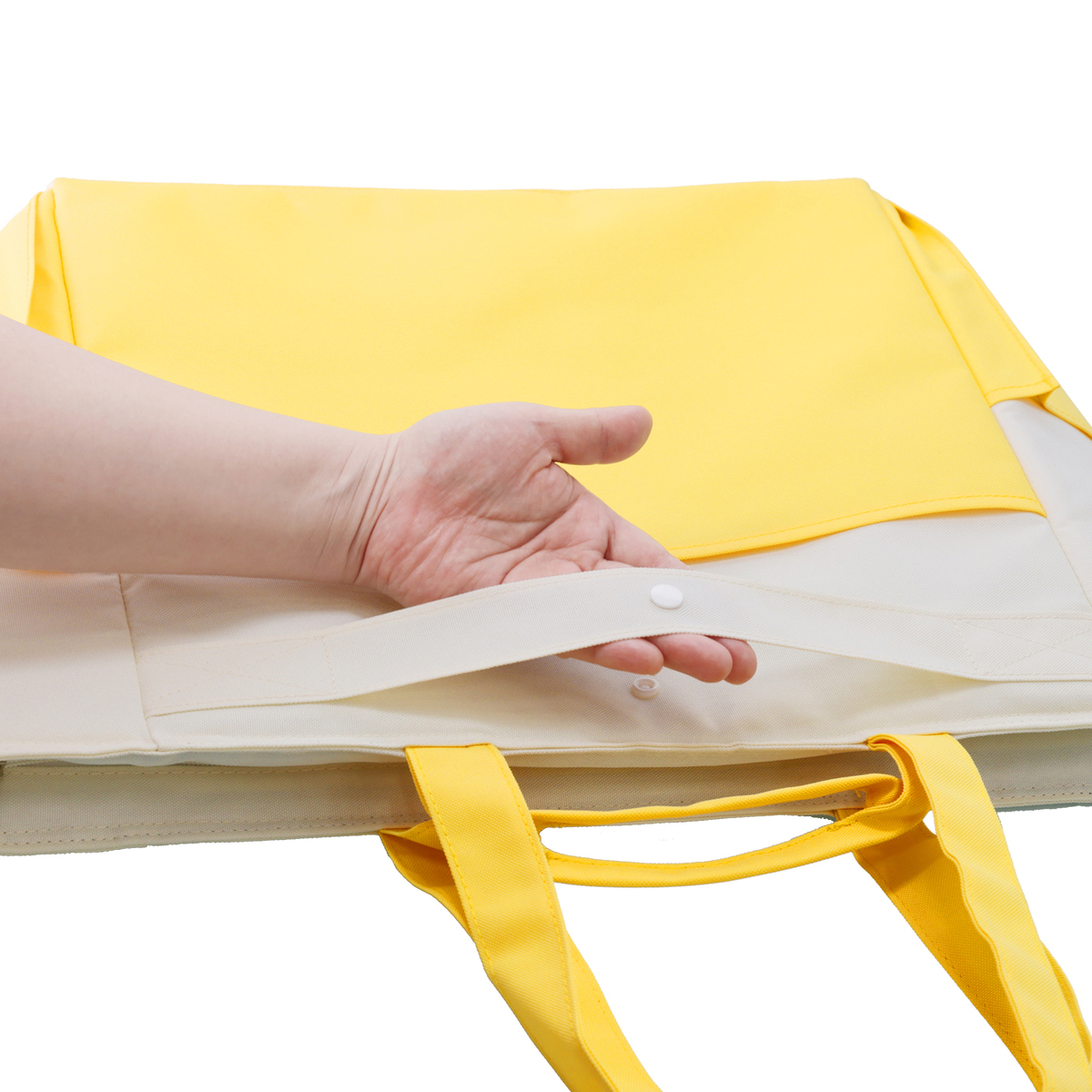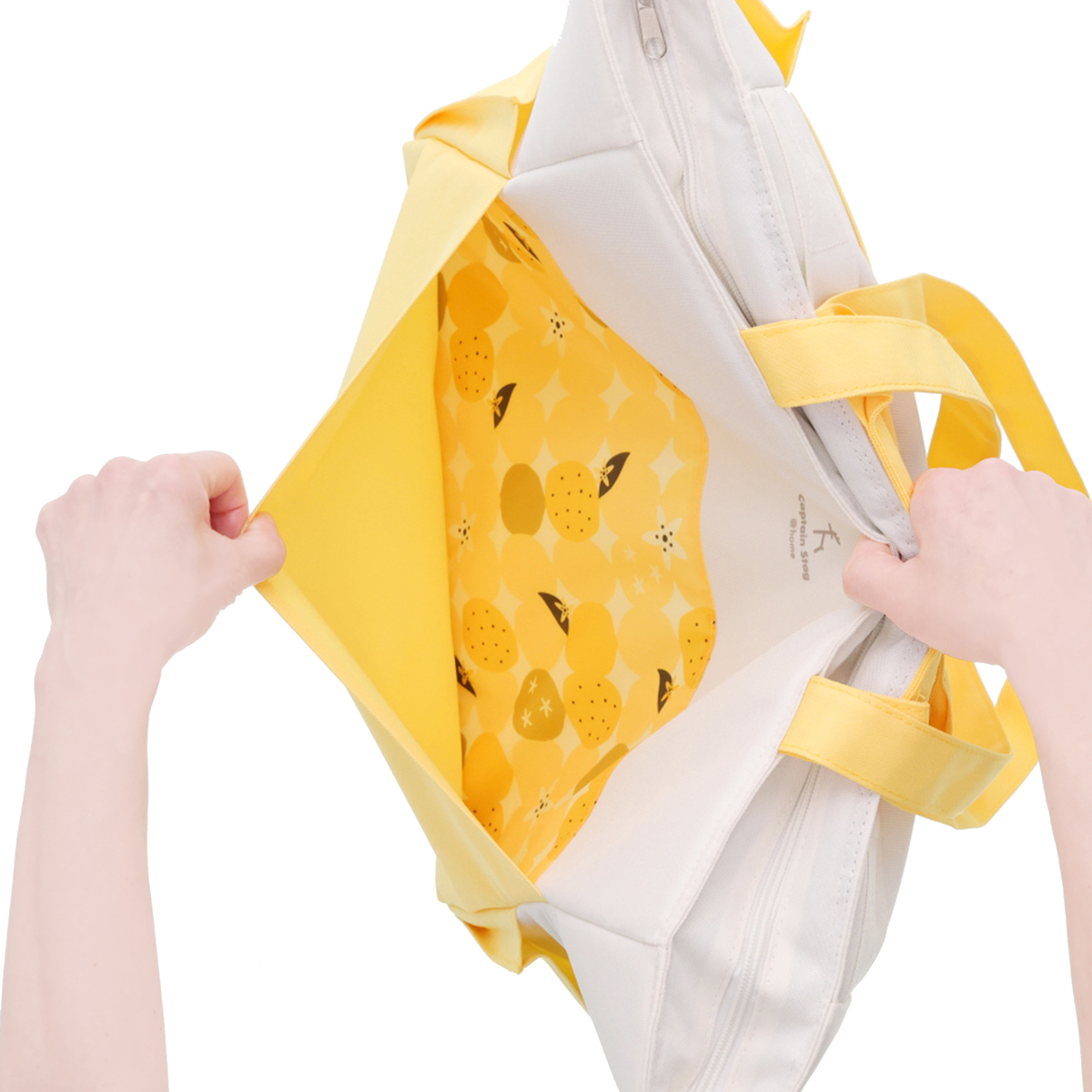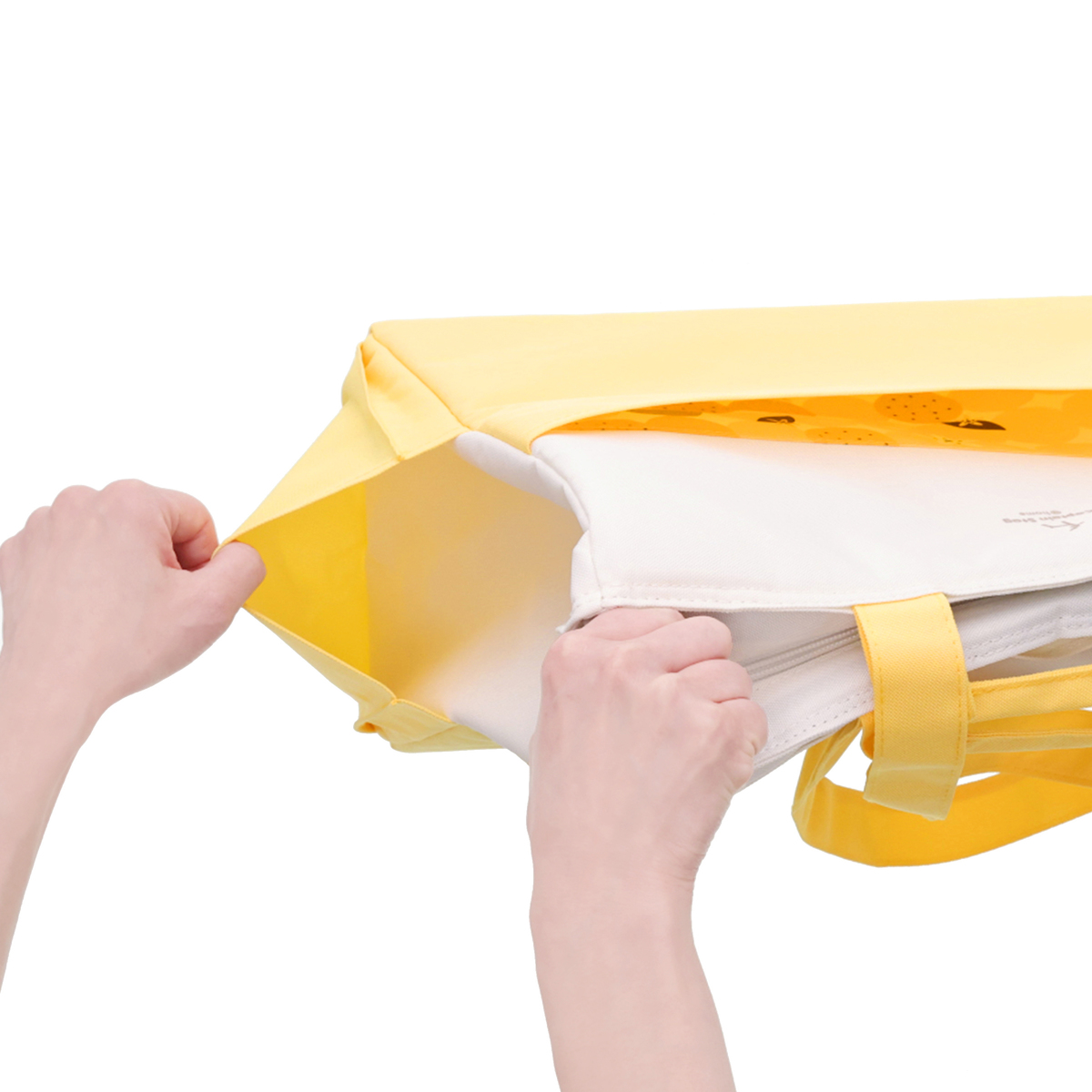 手提げと肩掛けの2WAY仕様で使いやすいクールトートバッグです。収納に便利なポケットが複数あり、内面には保冷剤ポケット*、前後面に大きなポケット、サイドには深さの異なるポケットを配置。裏面にはキャリーカートにも取り付け可能なベルトが付いています