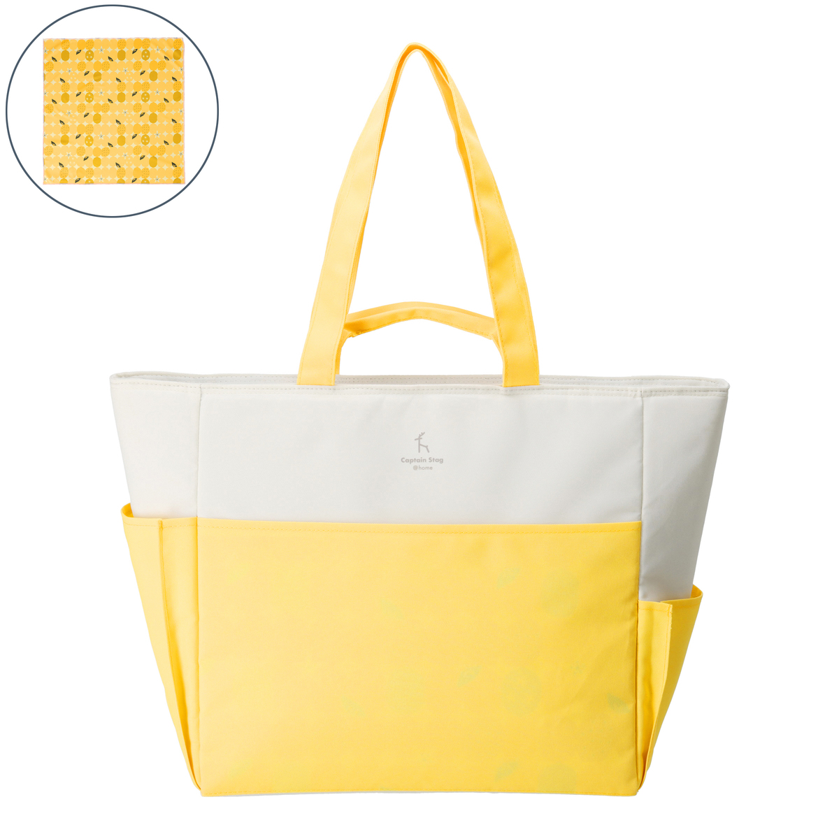 <本体> [サイズ(約)] 幅56(上)39(下)×奥行19×高さ36cm <ハンドル立ち上がり> 手持ちハンドル:8.5cm 肩掛けハンドル:29.5cm [重量(約)]470g [容量]20L [材質] 本体生地:ポリエステル600D 内生地:EVA 断熱材:ポリエチレンフォーム [お手入れ] ・使用後は、汚れや水気を乾いた布でよく拭き取り、風通しのよい日陰で十分に自然乾燥させて下さい ・著しい汚れは、薄めた中性洗剤を布やスポンジ等に付けて落とし、洗剤分をよく拭き取って乾燥させて下さい ・直射日光や高温多湿を避けて、屋内の乾燥した場所に収納・保管して下さい <冷感タオル> [サイズ(約)]60×60cm [重量(約)]63g [材質] ポリエステル [使用方法] (1)タオルに水を十分に含ませて下さい (2)水がたれなくなる程度にしぼって下さい (3)タオルを数回しっかり振って下さい。生地が冷たくなります ※水分が周辺に飛び散る恐れがあるので、ご注意下さい [お手入れ] 手洗い可 ・汚れたら中性洗剤で手洗いして下さい ・乾燥機、アイロンは使用しないで下さい ・多少色落ちすることがありますので、他の物とは別にお洗い下さい ・塩素系漂白剤は使用しないで下さい ・ドライクリーニングはできません ■取り扱い説明を充分にご確認の上、ご使用下さい 【中国製】 [注意事項] <本体> ※火の側や高温になる所に置かないで下さい ※熱い物やドライアイスを中に入れないで下さい ※完全防水ではありません。液体や氷などを直接入れないで下さい。液体が内部に侵入したり、外に漏れ出て他の物を汚す原因になります ※先のとがった物や鋭利な物を直接入れないで下さい ※引きずる・振り回す・投げるなどしないで下さい ※使用状況により、表地に結露(空気中の水蒸気が凝縮して水滴となって付着する現象)が生じることがあります ※濡れた場合は、乾いた布で水気をよく拭き取って下さい ※水濡れなどにより、色落ちや色移りすることがあります ※漂白や丸洗いしたり、乾燥機に入れたりしないで下さい ※食材などは直接入れずにビニル袋等で覆って入れてご使用下さい。油分や汁などにより、汚れや劣化の原因となります ※本製品は完全防水ではありません。液体や氷など直接入れないで下さい。液体が内部に侵入したり、外に漏れ出て他の物を汚す原因になります。内容物の漏れに対しての室内・車内の汚損につきましては、弊社では補償いたしかねます ※保冷効力は、飲食物の冷却状態・外気温・ファスナーの開閉回数などにより異なってきます。あらかじめ十分に冷やした飲食物を入れてご使用下さい。また、市販の保冷剤・蓄冷剤等を使用すると保冷に効果的です <冷感タオル> ※幼児、身体のご不自由な方、皮フの弱い方等が使用する場合は、十分にご注意下さい ※本製品は発熱時の解熱用ではありません。使用しないで下さい ※4歳未満の乳幼児は使用しないで下さい(対象年齢4歳以上) ※使用時、衣類がぬれる場合があります ※ぬれたまま長時間放置しないで下さい。カビ発生等の原因となります ※使用しない時は洗濯後、十分に乾かして下さい ※用途以外には使用しないで下さい