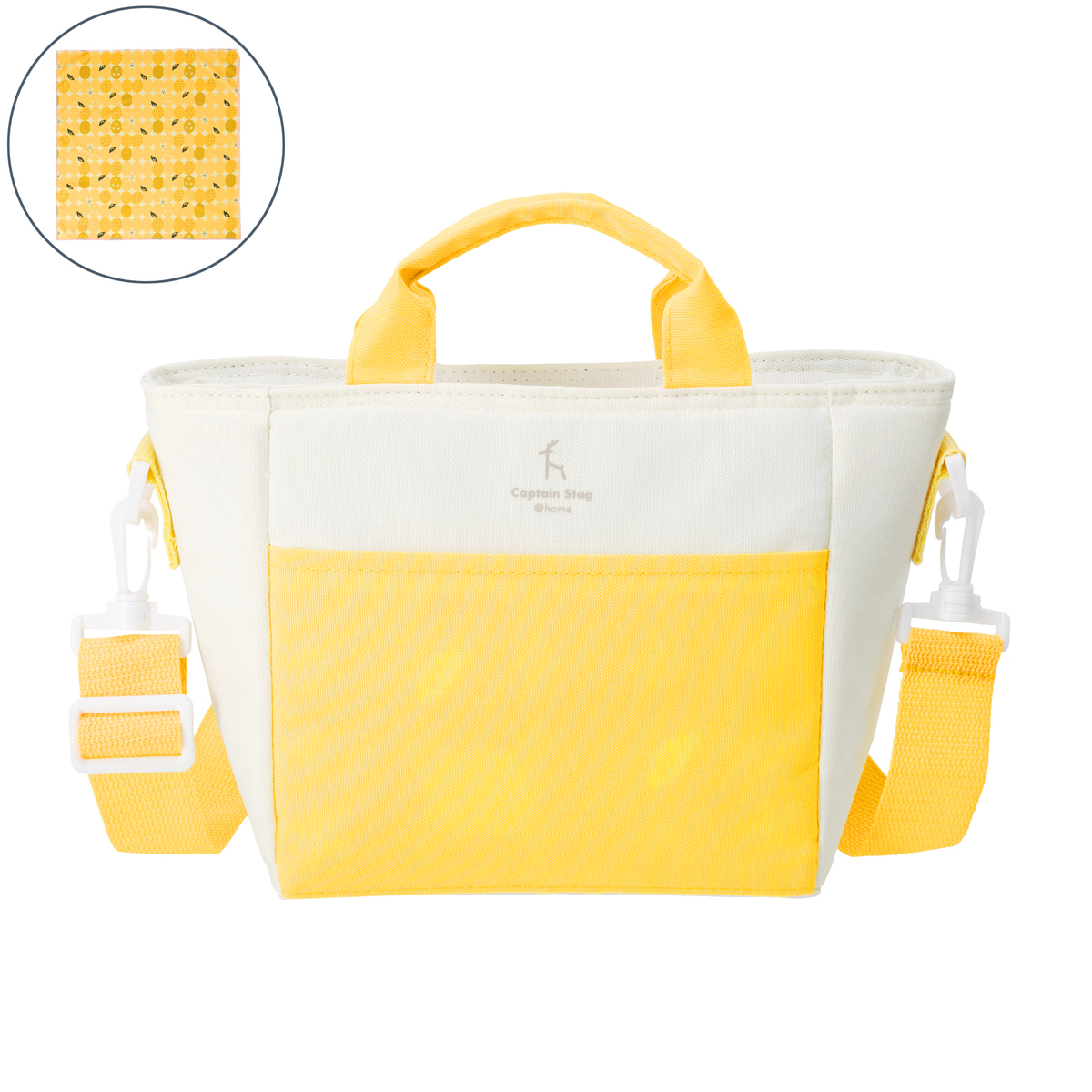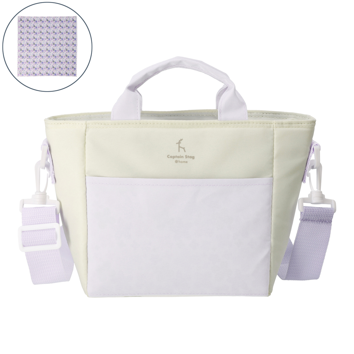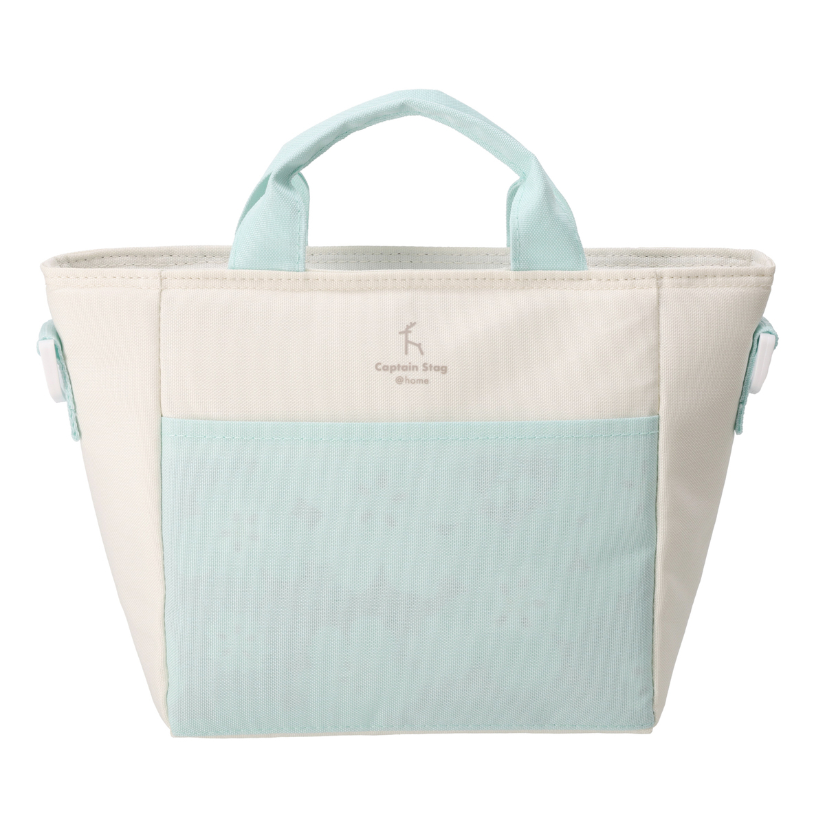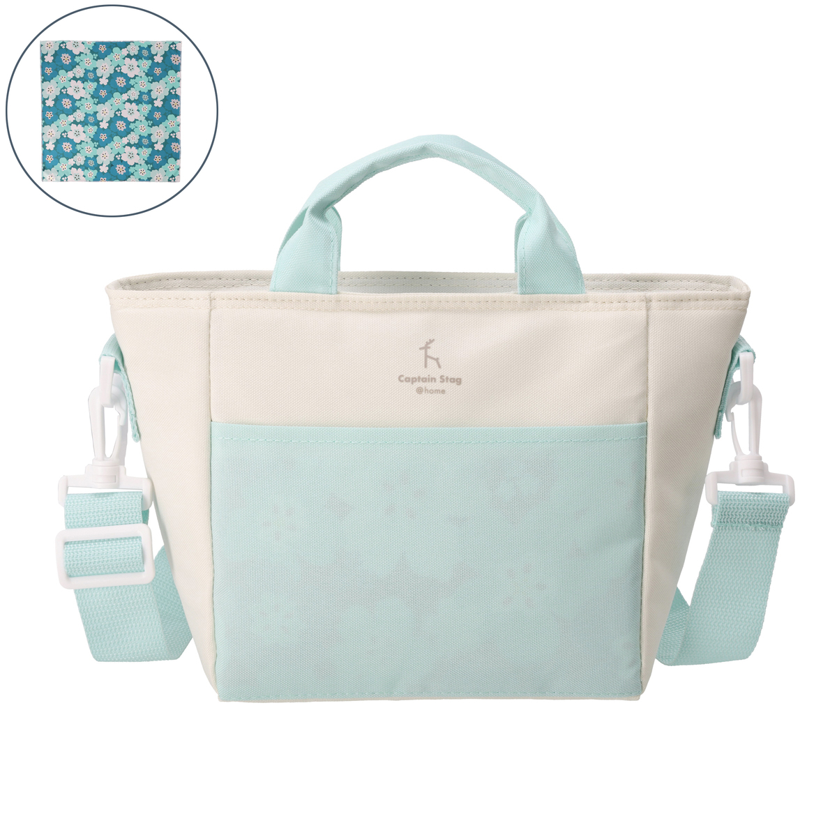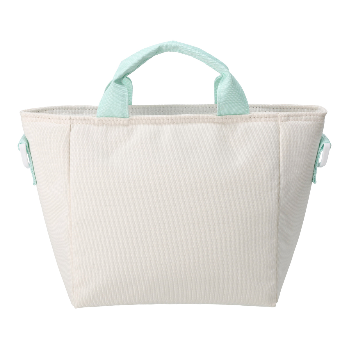 肩掛けもできるショルダーベルト付きのミニクールトートバッグ。内側には保冷剤ポケットを装備しています
