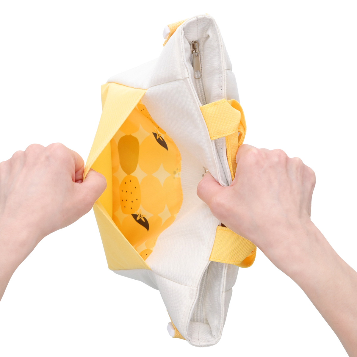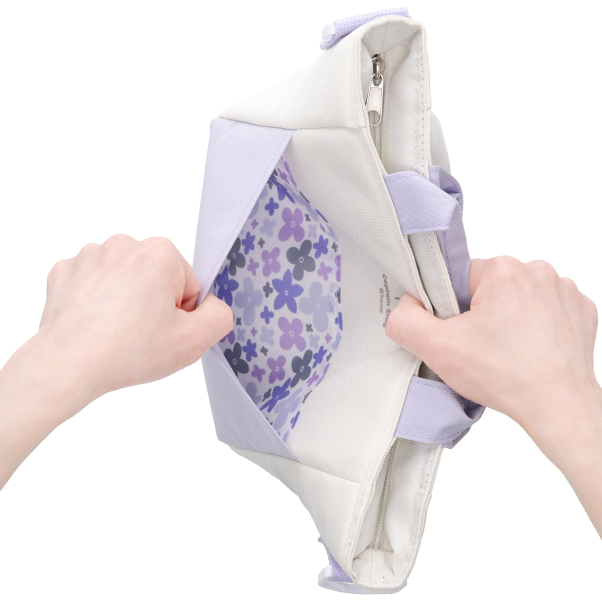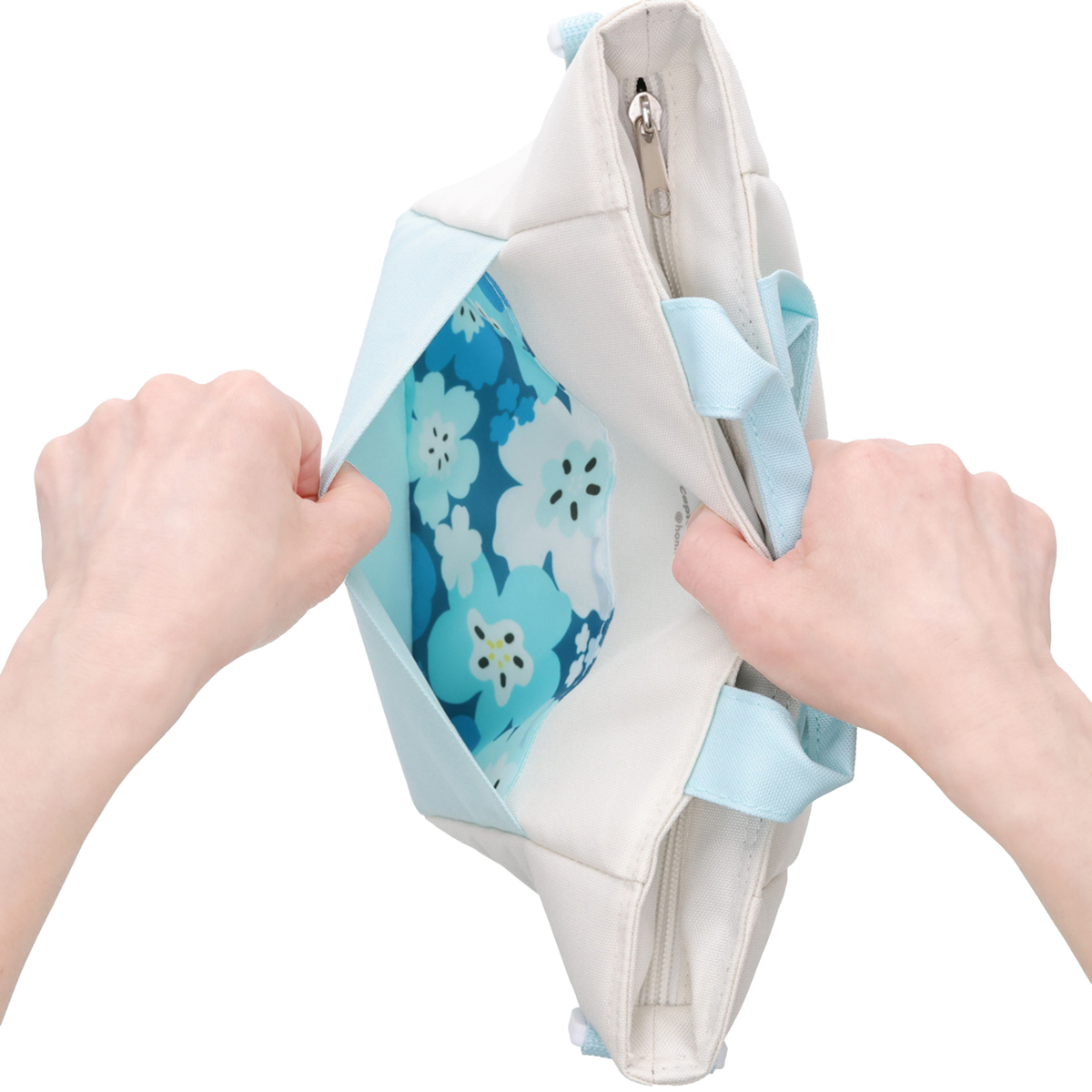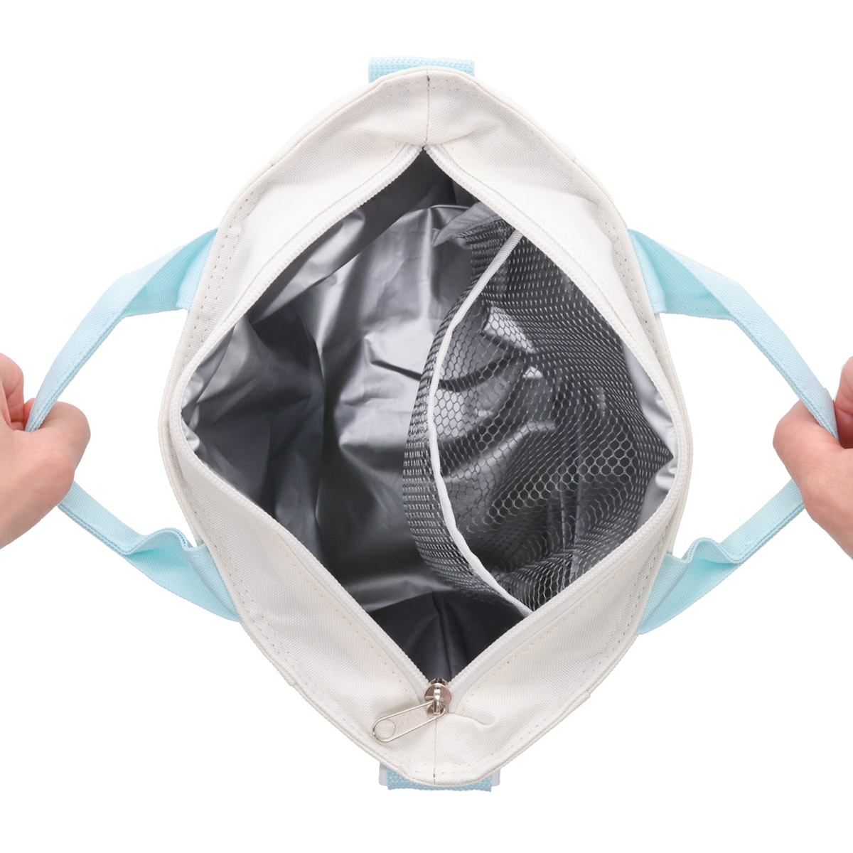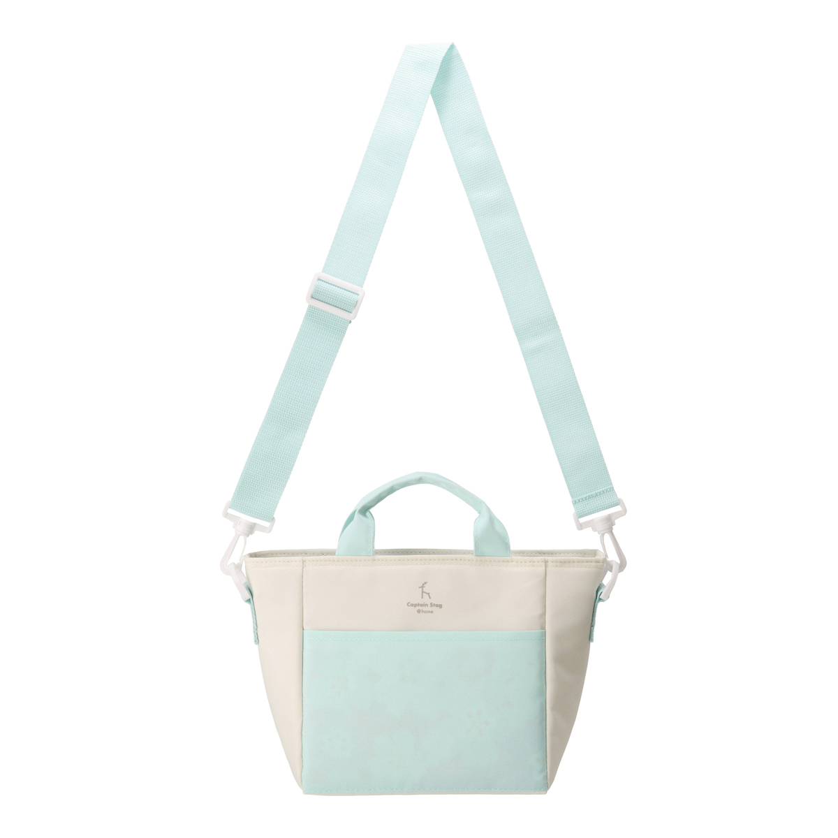 肩掛けもできるショルダーベルト付きのミニクールトートバッグ。内側には保冷剤ポケットを装備しています