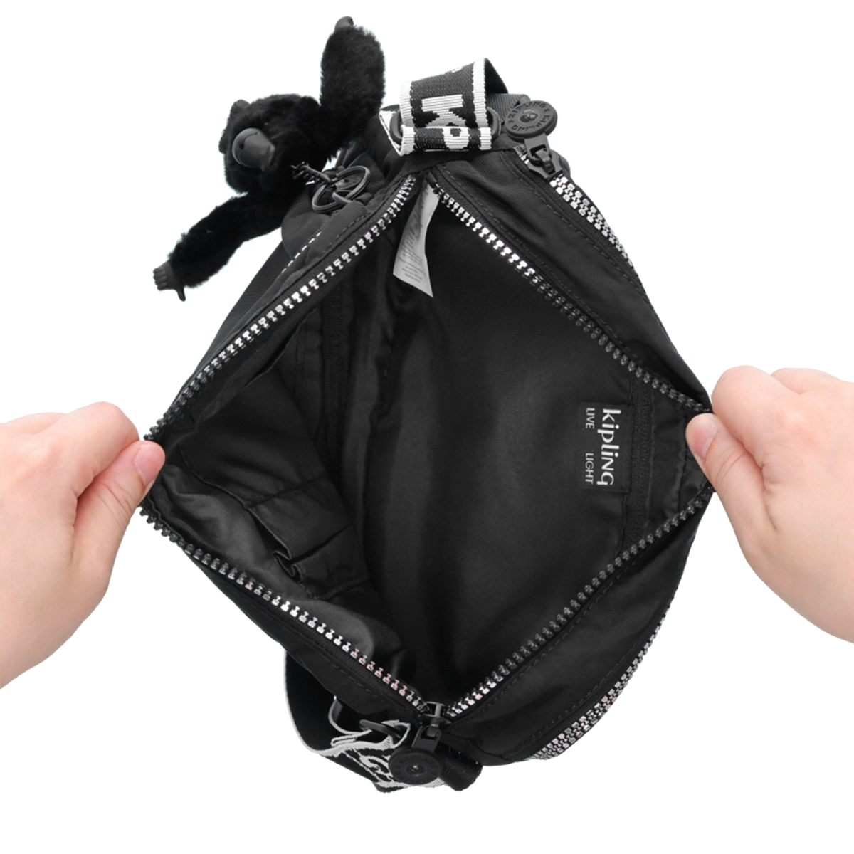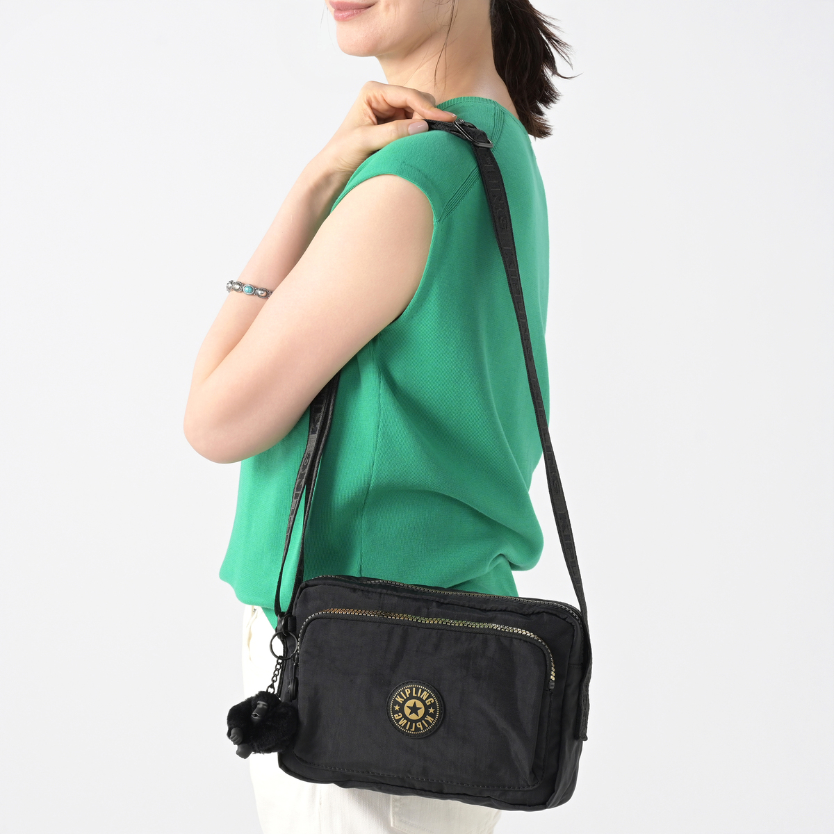 背面側にもフラットなファスナーポケットが付き、荷物の整理がしやすく。ショルダーベルトは無段階調整が可能。ワンショルダーバッグとして、また斜め掛けもできます