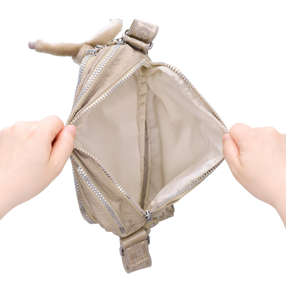 [サイズ(約)] 縦17×横24×マチ9cm ショルダー立ち上がり:28〜65cm [重量(約)]※付属品含む 300g [素材] ナイロン ※裏地有 [仕様] 付属(取り外し可):チャーム×1 開閉:ファスナー式×2(二層) 底ビョウ:無 [ポケット] <内側> ファスナーポケット×1、オープンポケット×1、ペン挿し×2 <外側> 前面:ファスナーポケット×1 後面:ファスナーポケット×1 [注意事項] ※直射日光や蛍光灯の影響で変色することがありますのでご了承ください 【インドネシア製】