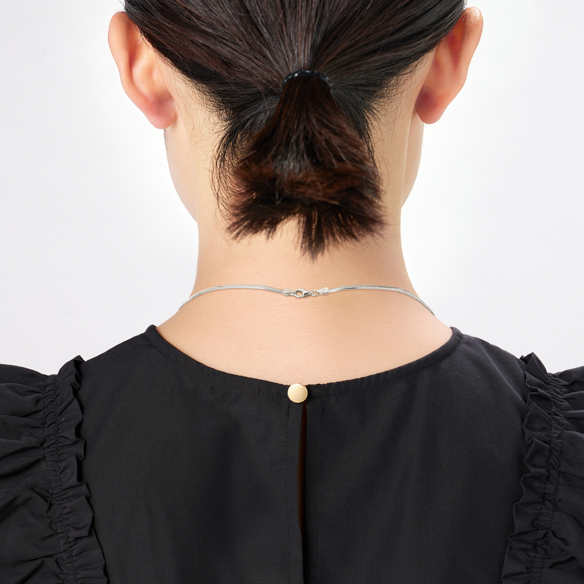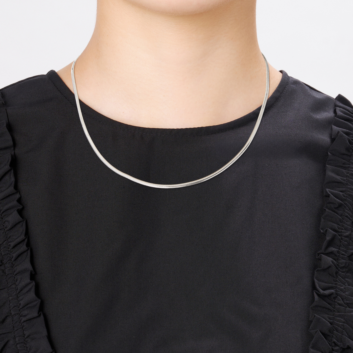 肌に沿うような程よい太さのスネークチェーンネックレス。流れるようなラインが多方面に光を反射し、美しく輝きます。艶感が上品な印象を与えながら、しっかりとした存在感があります。地金にはシルバー925を使用しました