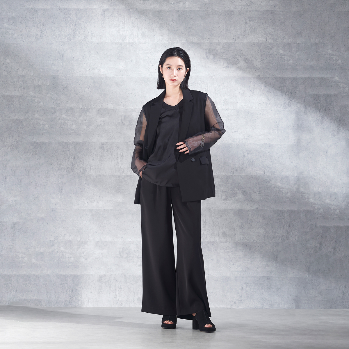 7月にジャケットとあわせて黒を購入。白も買えば良かった!でもずっとパンツのMサイズが品切れ。秋めいて来た9月下旬にMサイズの入荷が!すぐさま白ジャケットとあわせて購入しました。ようやく普段から楽しめる白のスーツに出会いました。シースルーの袖の黒ジャケットは夏に本当に重宝しました。このようなことを書くと嫌味かもしれませんが、ヨーロッパの某ハイブランドを好きで購入しています。でも日本の高温多湿の夏は着るのに正直厳しいものがあります。とはいえ変な物は着たく無い。日本は甘い服が多く、似合わない50代には選択肢が少ない。辛口でスタイリッシュな服を今後も楽しみにしています。