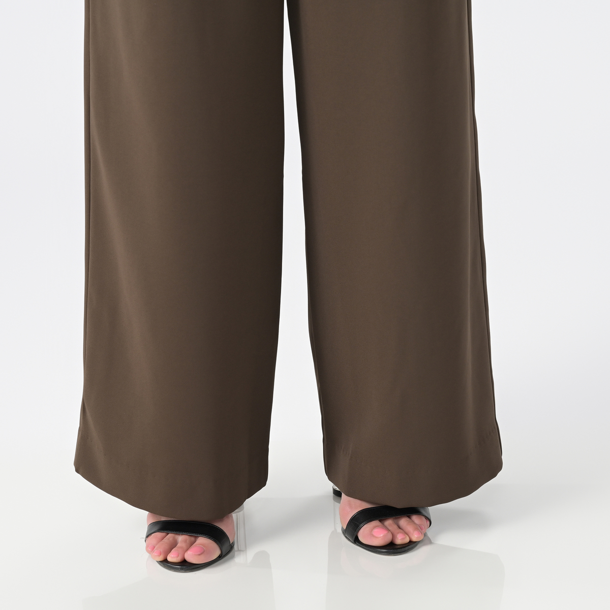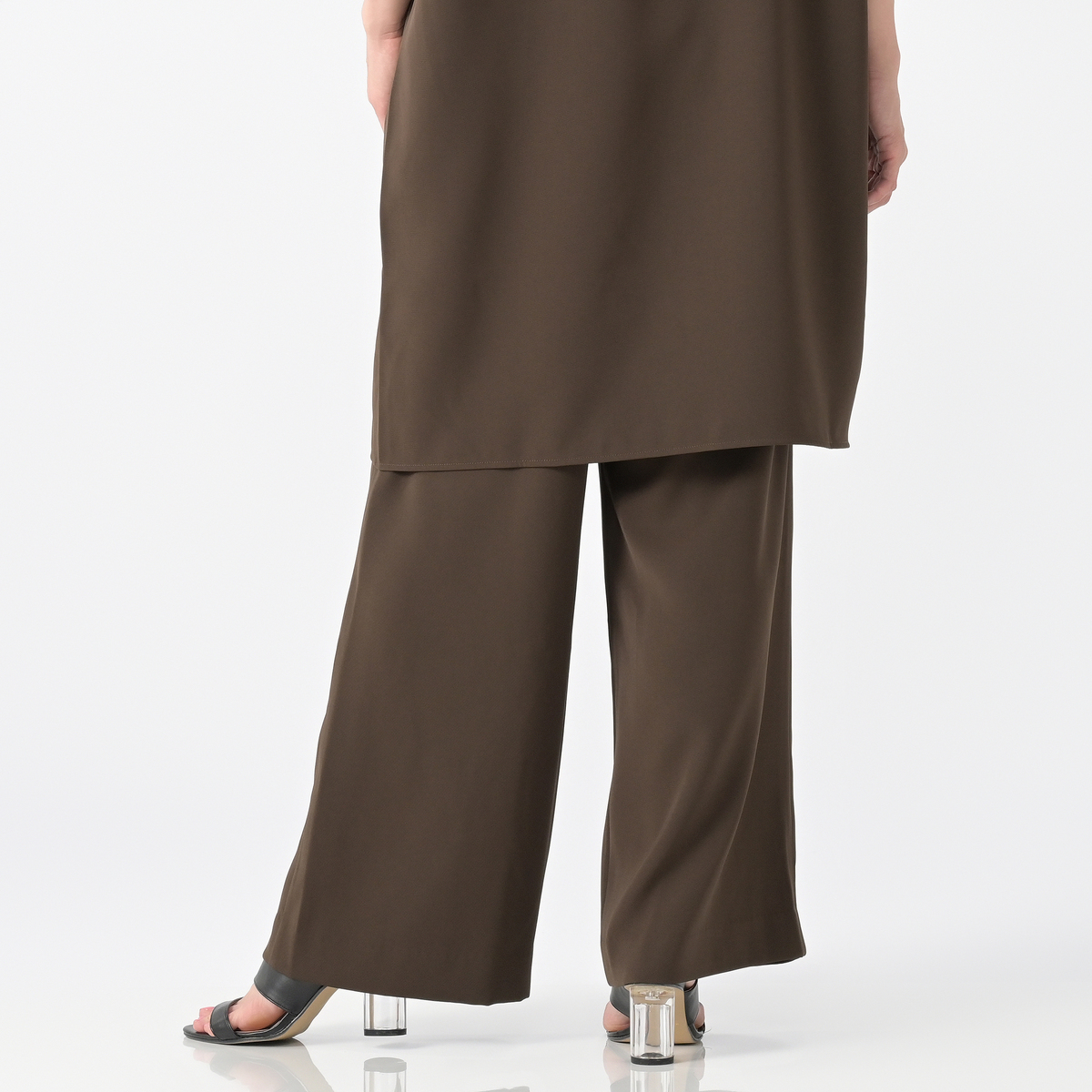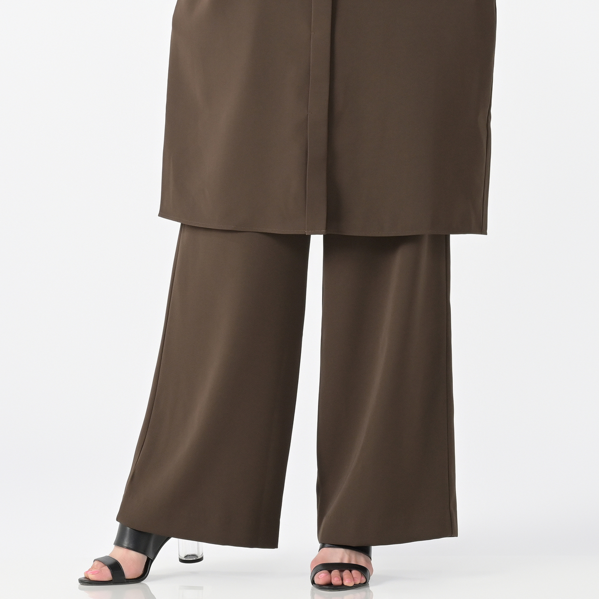 エレガントでシンプルなデザインの、ダブルクロス素材を使用したワイドパンツです