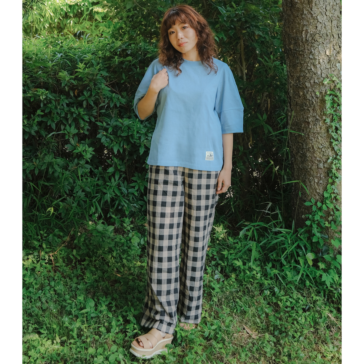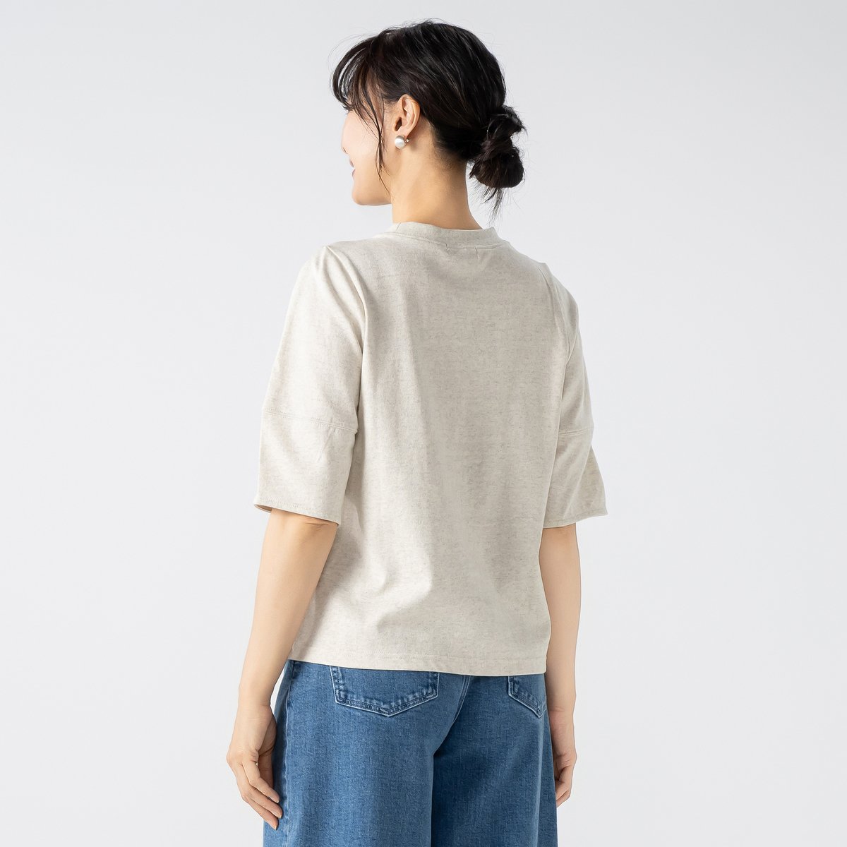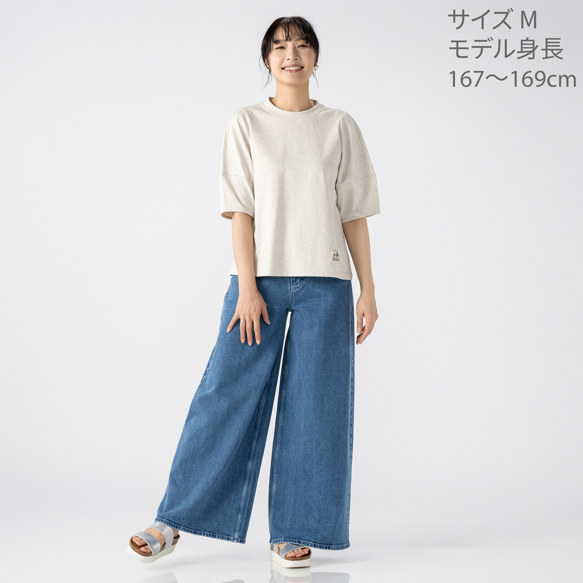 厚手のコットン天竺にタフコットン加工を施した素材を使用。タフコットンは、生地の加工により耐摩耗性があり寄れにくく。一枚でも透けにくい、気軽に着られる素材に拘りました