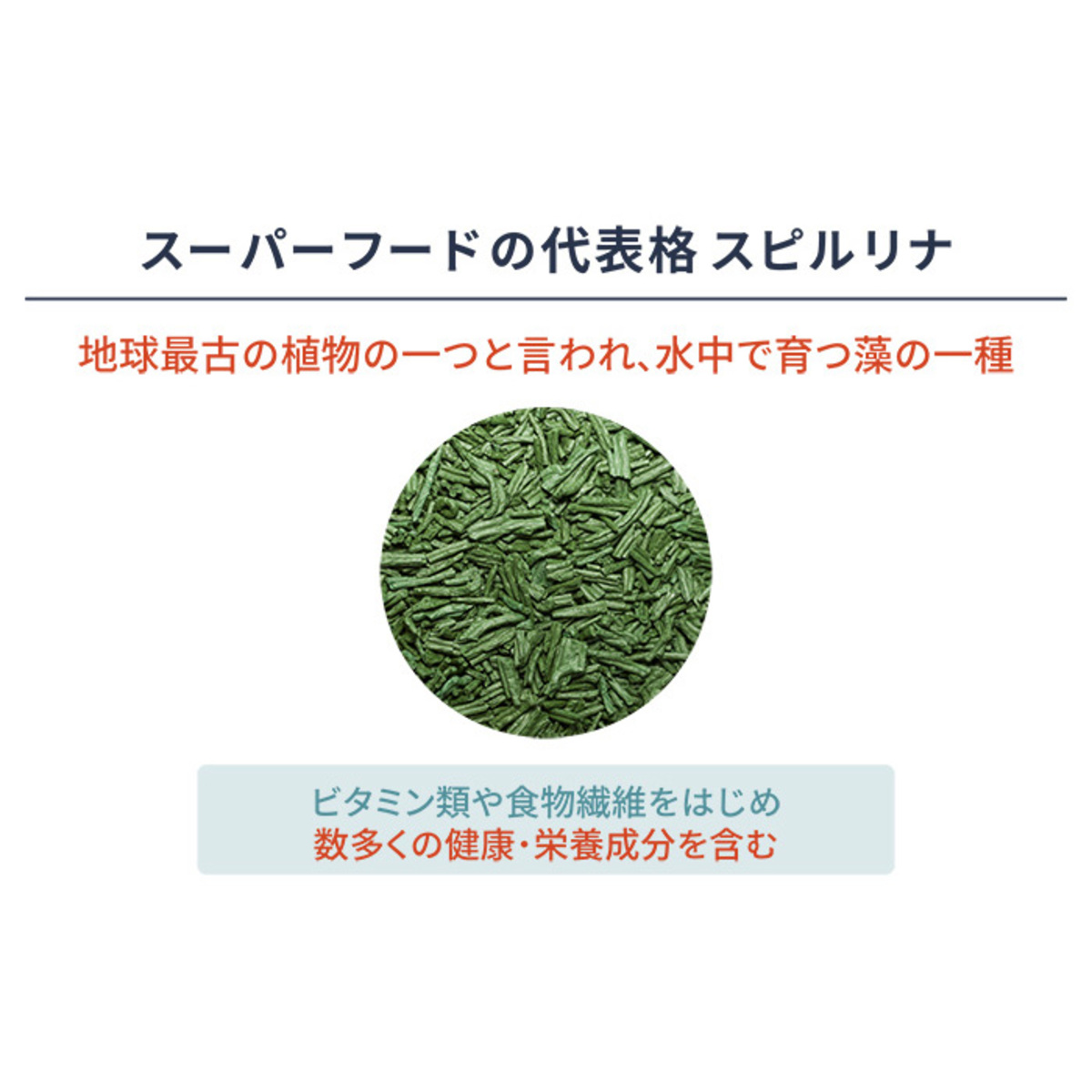 緑茶(宇治煎茶・国産)、スピルリナ(スピルリナ原末)、ユーグレナ、モリンガ(モリンガ粉末)、ブロッコリースプラウト(ブロッコリースプラウトエキス)、大麦若葉(大麦若葉エキス末)、桑葉(桑葉末)の計7種が本品の青汁原料です