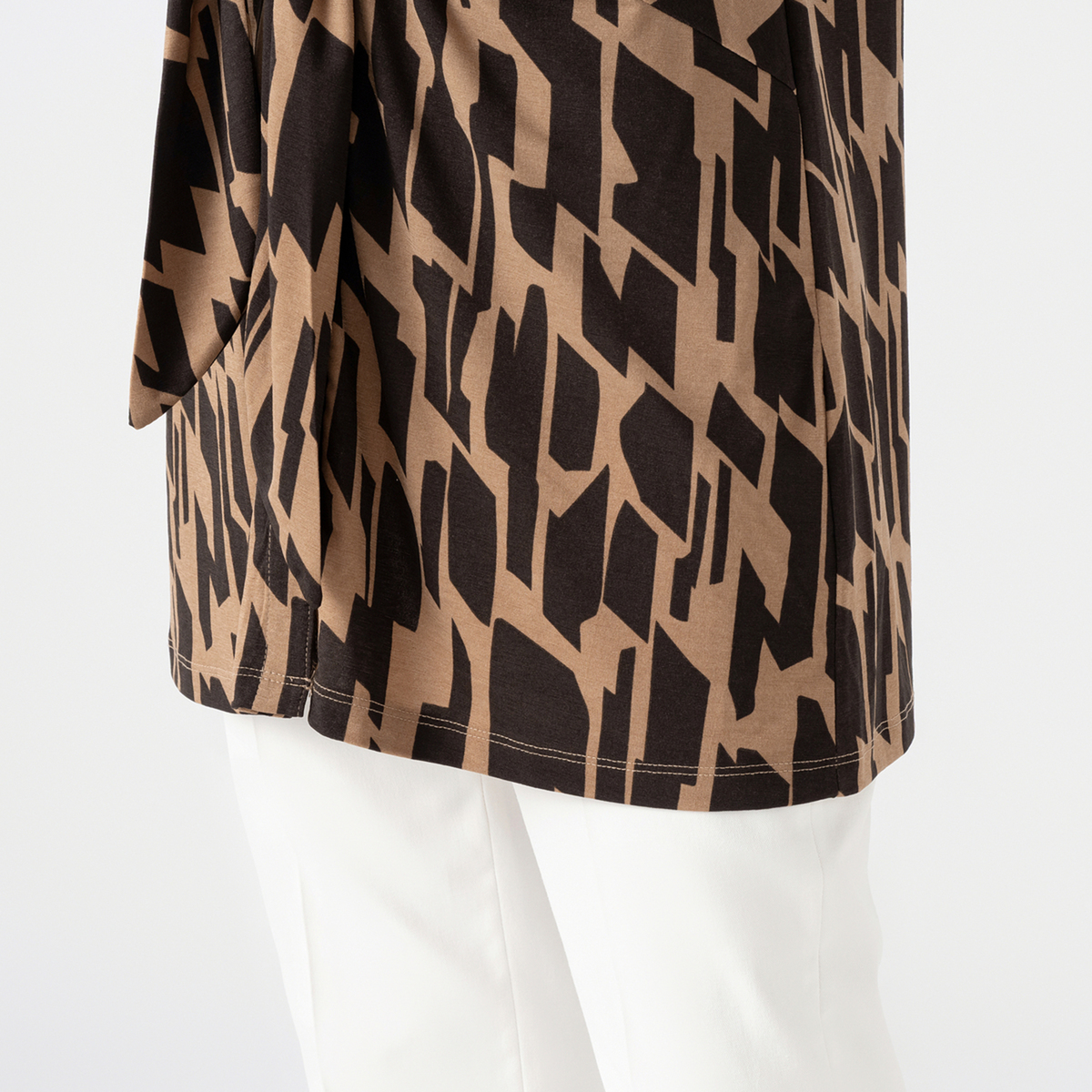 さらりとしたジャージー素材のチュニック。柔らかで清涼感がある素材で、ポリエステル混でしわも気になりにくく扱いが簡単です。接触冷感、吸水速乾、アンチピリング、遮熱性、UVカットの機能性もあります
