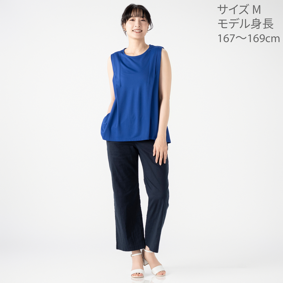 吸放湿性とUVカット機能、接触冷感もあり、暑い季節も快適。ウエストはゴム仕様で着脱しやすく、深めの股上設計でお腹まわりをしっかり包み込みます