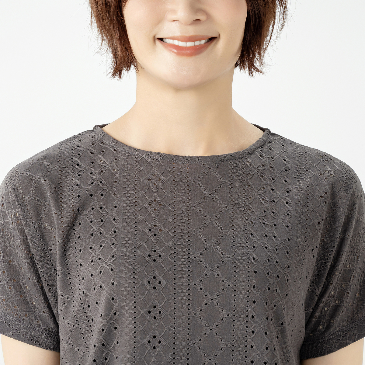 ストレッチ性のあるレースと、表面はさらっとした肌にまとわりつきにくいシャツ生地で、快適な着心地に。普段使いからお出かけまで幅広く活躍します