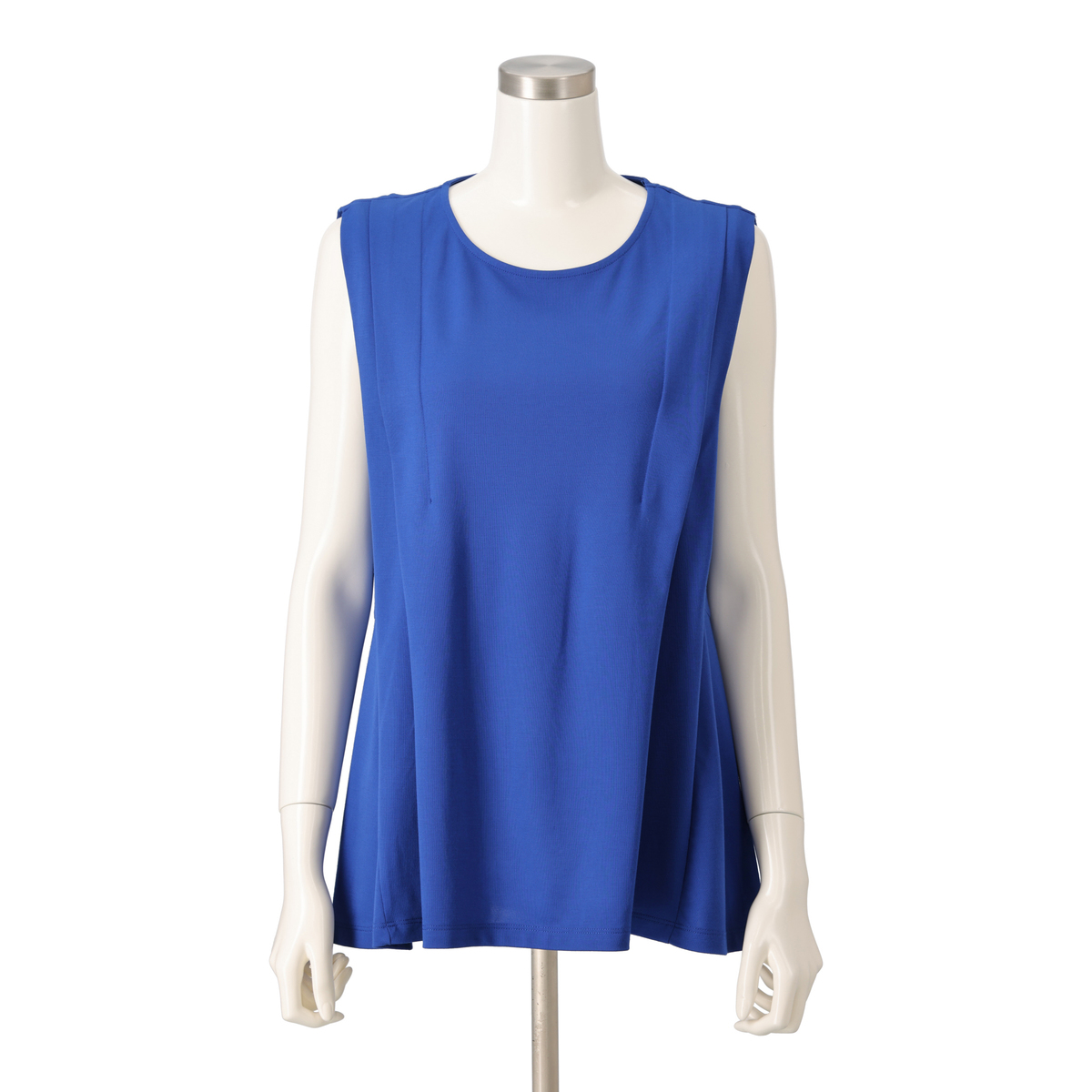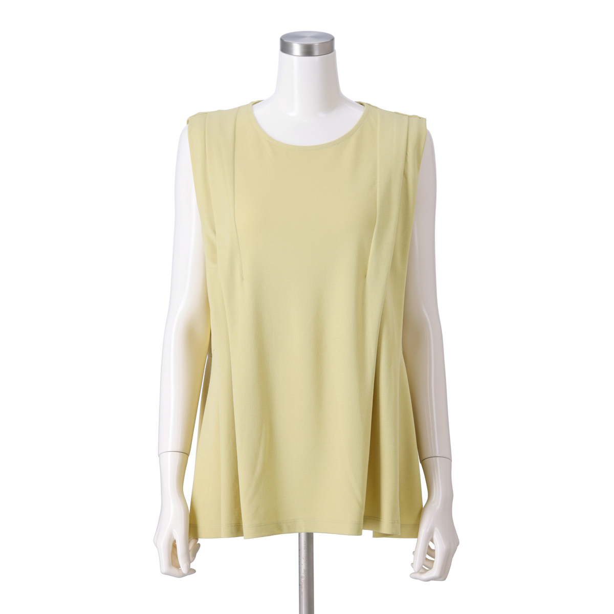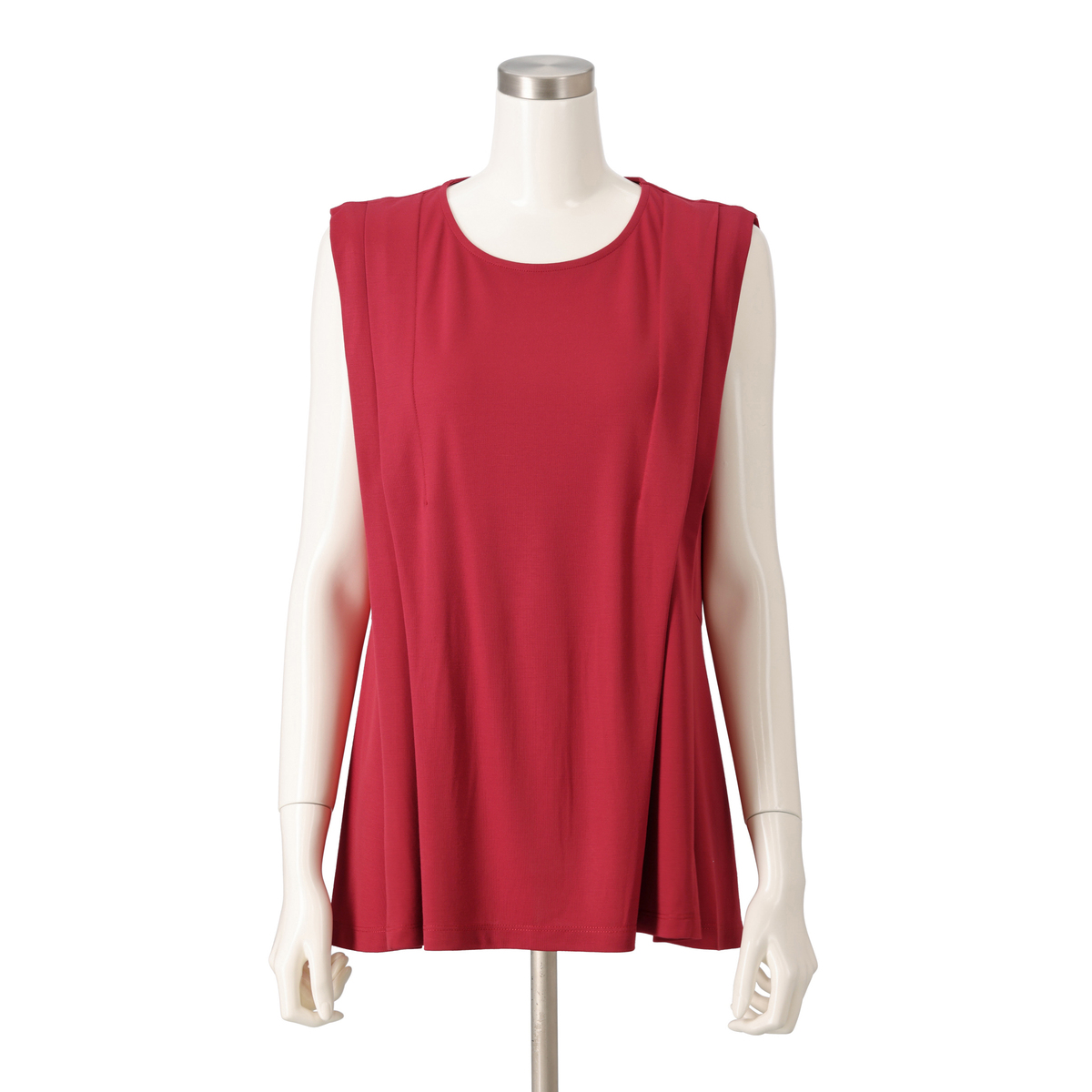 きれいめコーデに活躍してくれるノースリーブプルオーバー。フロントにタックを施し立体的なデザインに仕上げました。ウエストで切り替えたソフトなフレアーシルエットがお腹や腰周りをカバーしてくれます
