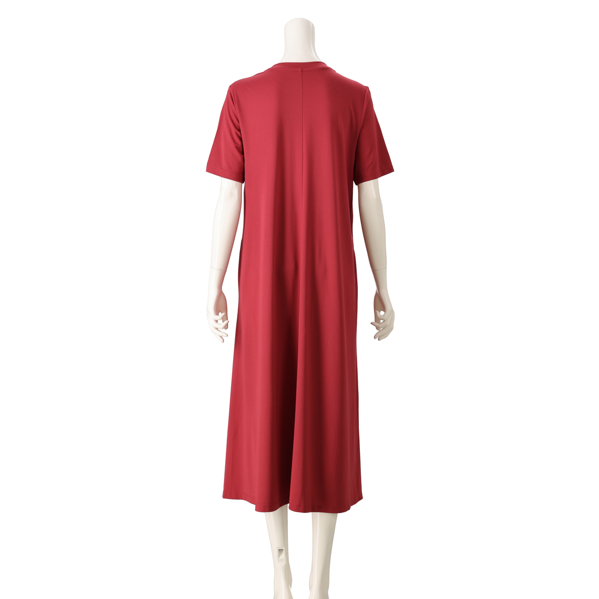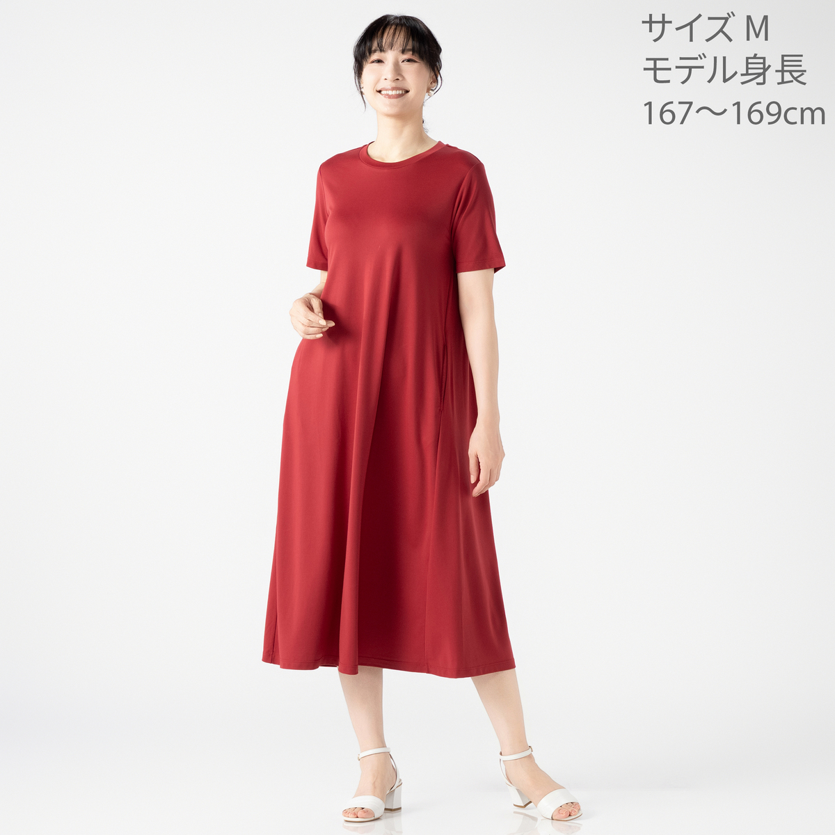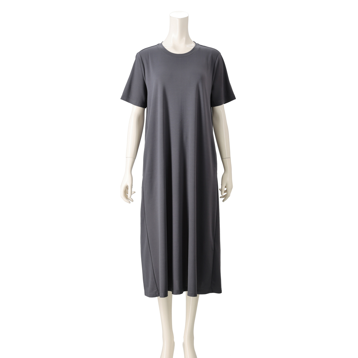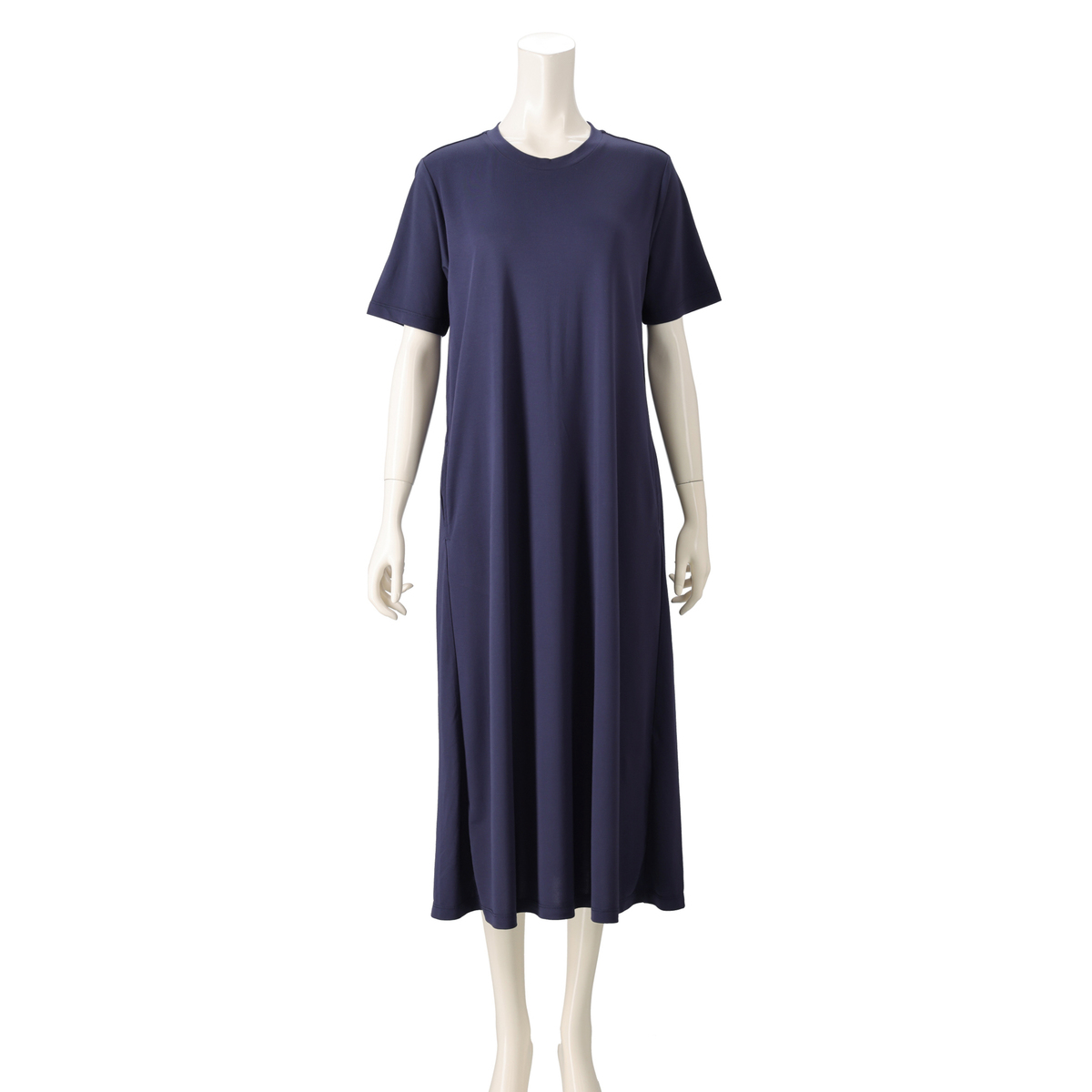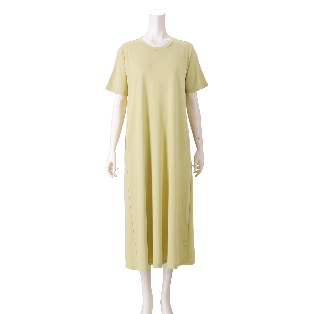 UVカットと接触冷感機能のあるレーヨン混カットソー素材のワンピース。柔らかでしなやかさがある心地良い編地で、適度な落ち感とハリ感があり、薄手でもボディラインを拾いにくく、サラッと心地よく着られます。伸縮性があり楽に着脱できます