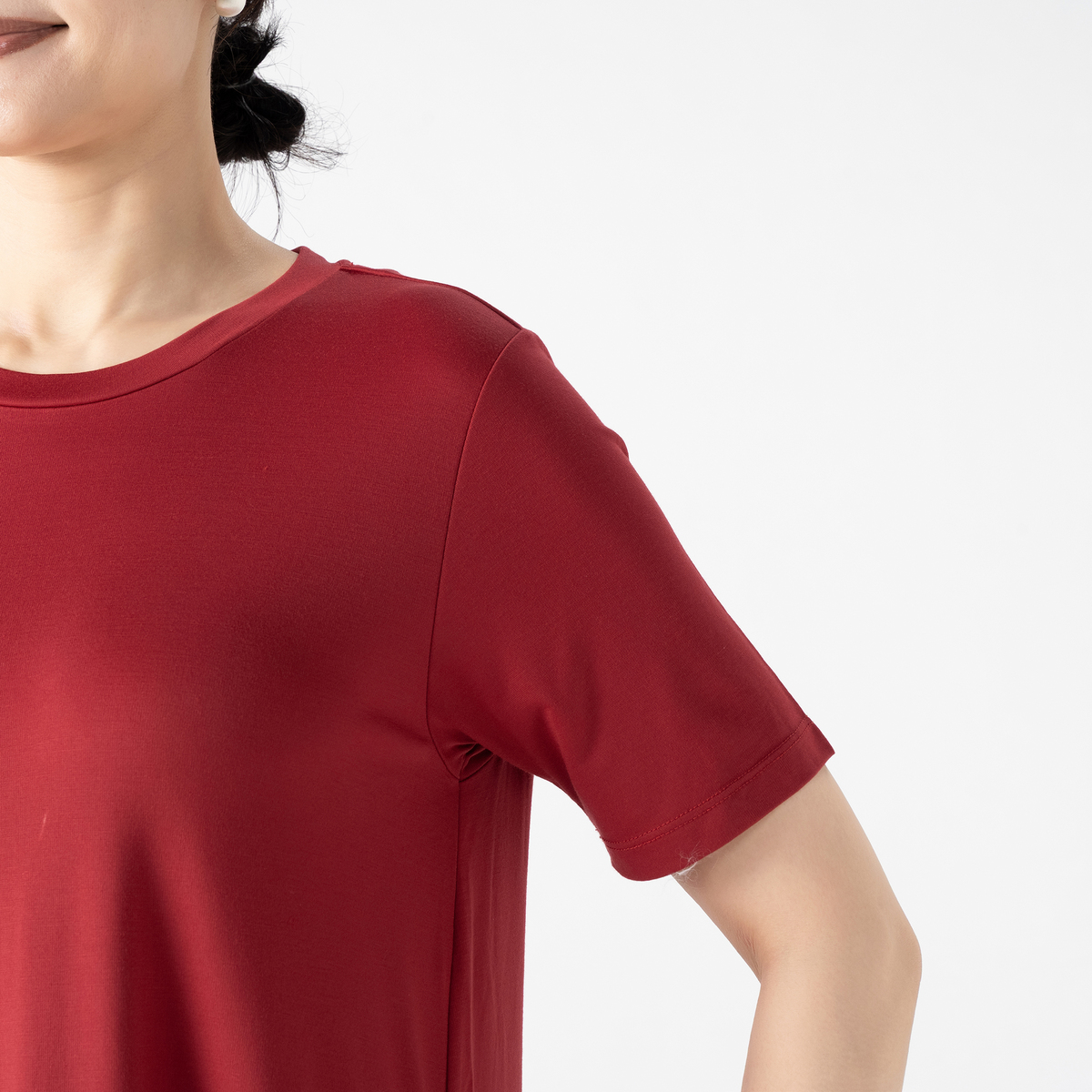 裾広がりのラインで、Tシャツデザインを伸ばしたようなシンプルさ。パッと着るだけでコーデが完成する時短アイテムで、合わせる小物で色々なテイストのスタイルを楽しめます。タウンユースから旅行先での着用にも活躍します