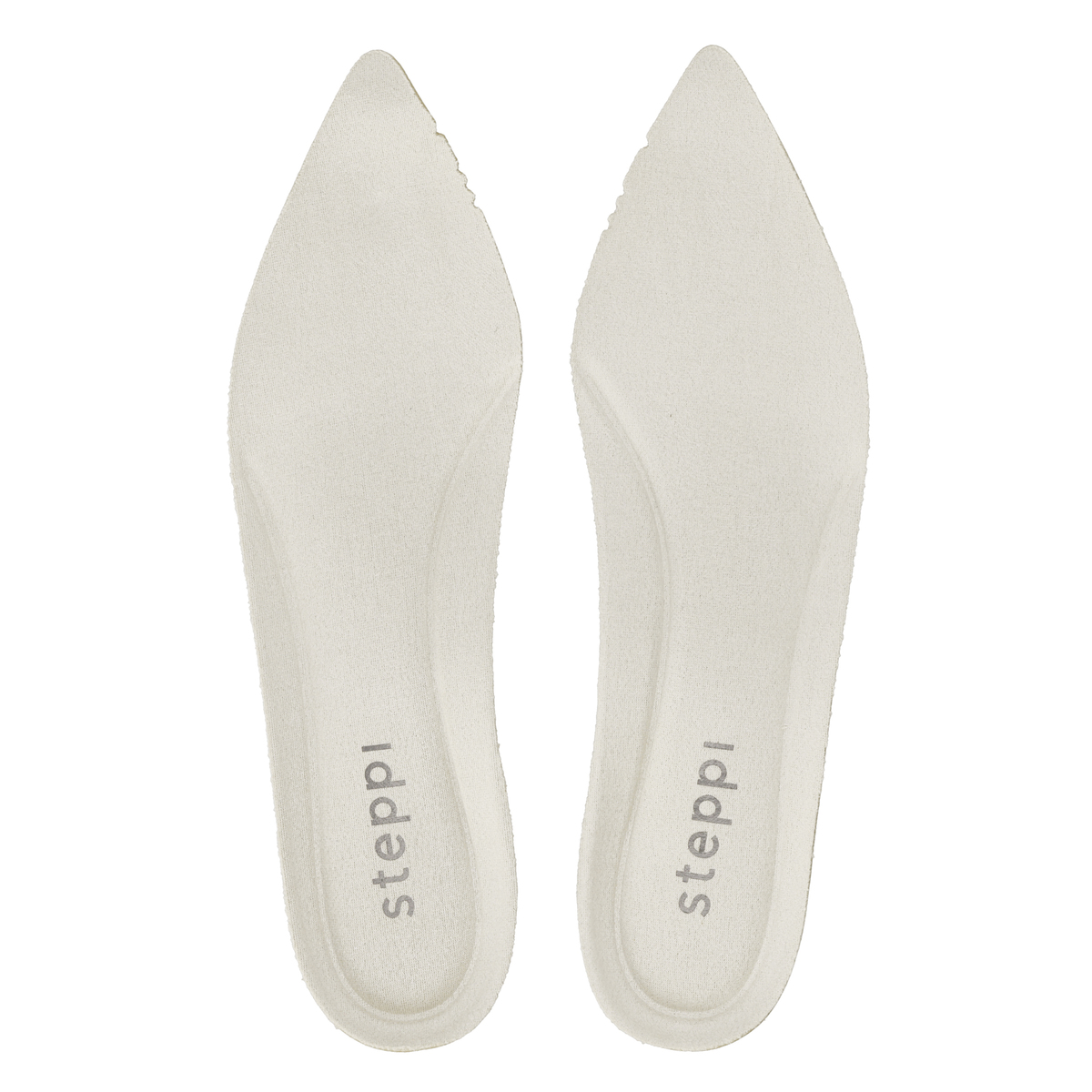 一枚仕立てのニットアッパーと発泡素材のアウトソールを使用。ポリエステルヤーンでしなやかに編みたてることで、裏材や芯材を使用せずに構成しています。中敷きは、まるでスニーカーを履いているようにふんわりとした足入れ感。アウトソールは軽くてクッション性があり、パンプスのきちんと感もある絶妙なバランスにしています