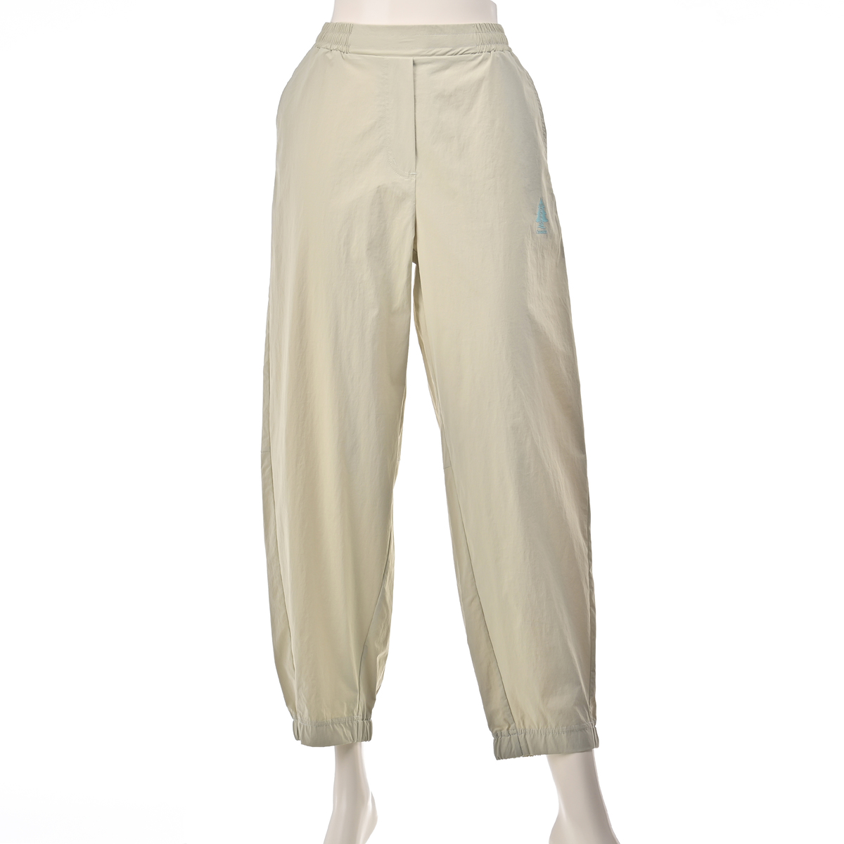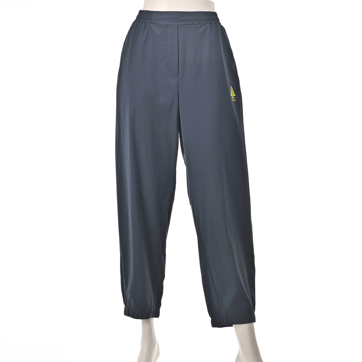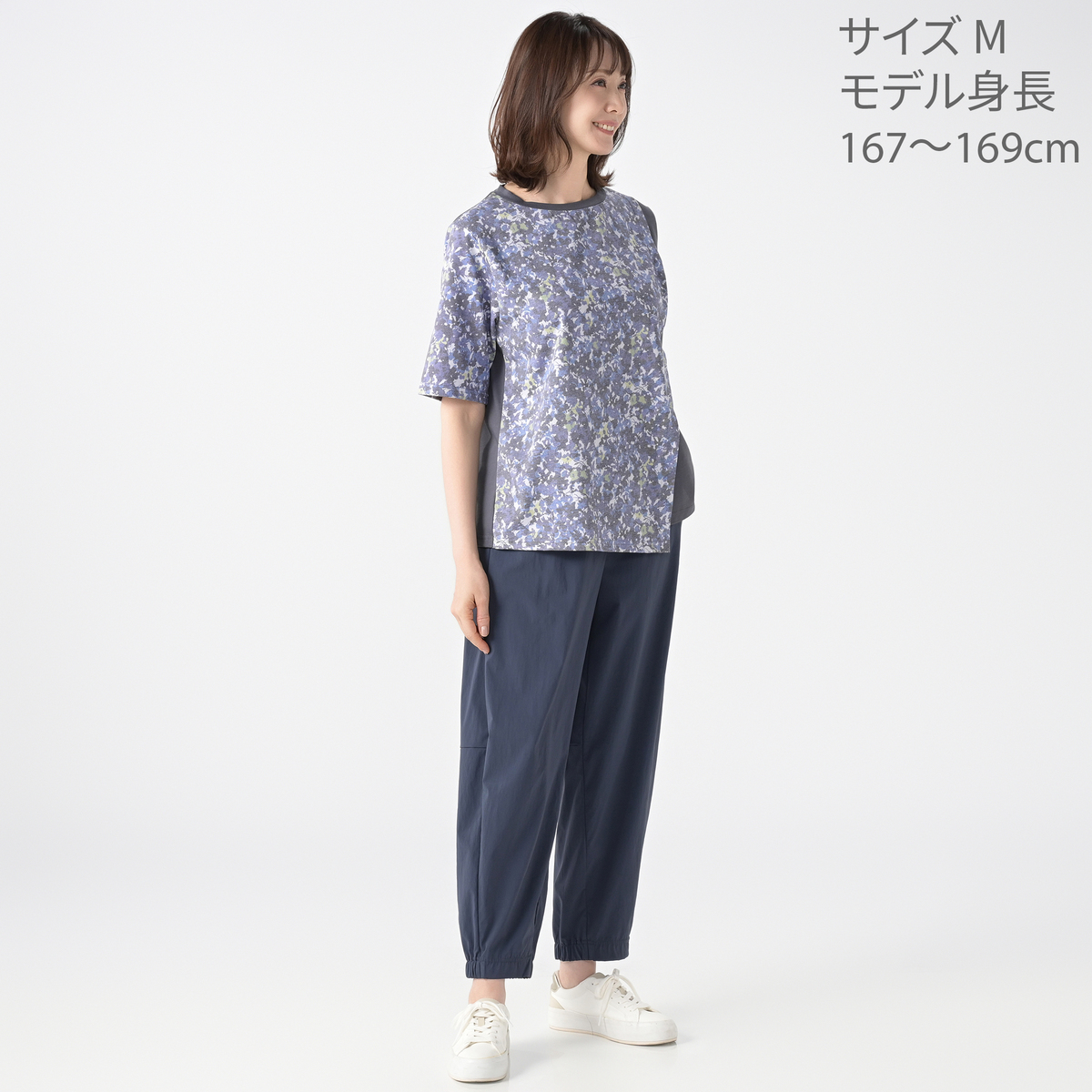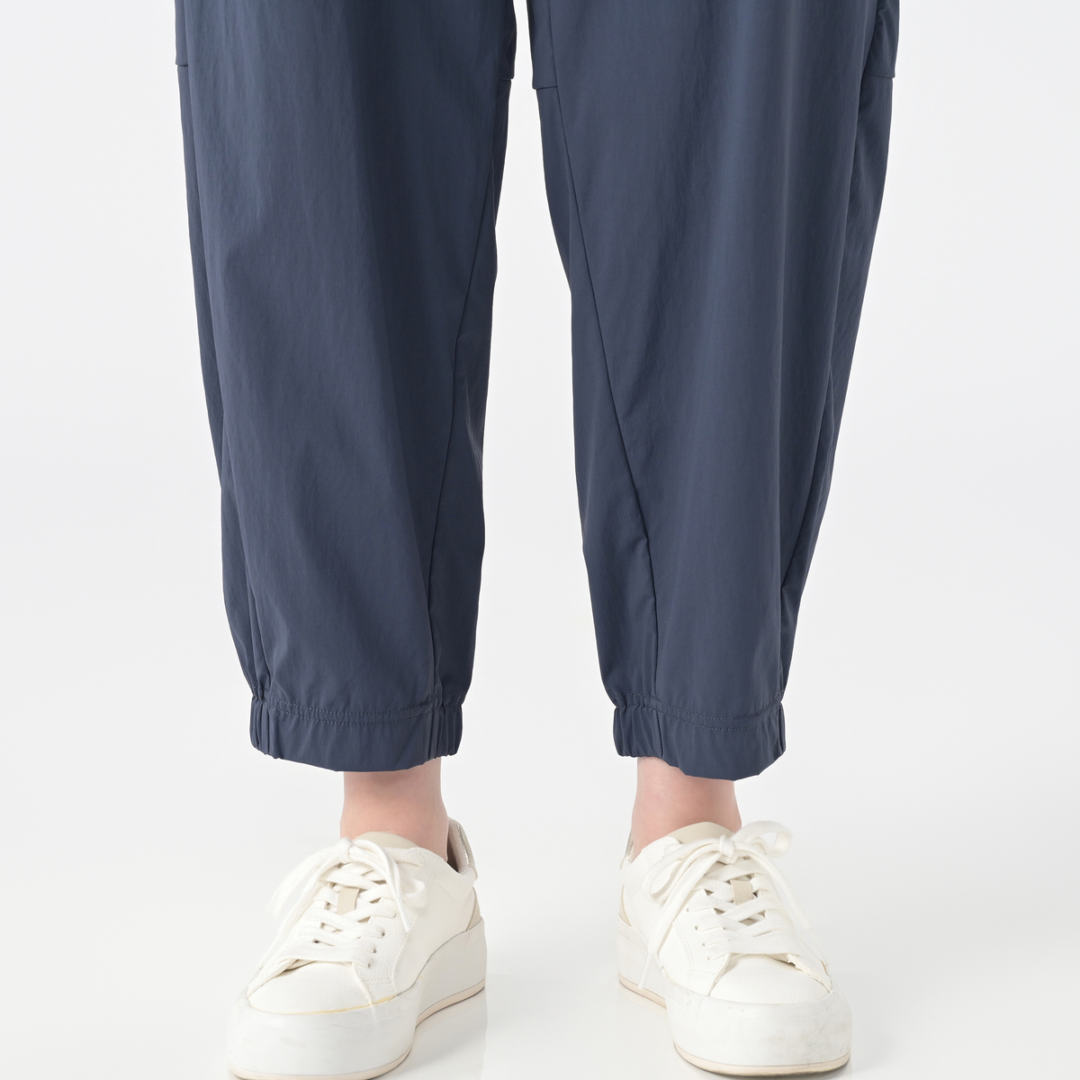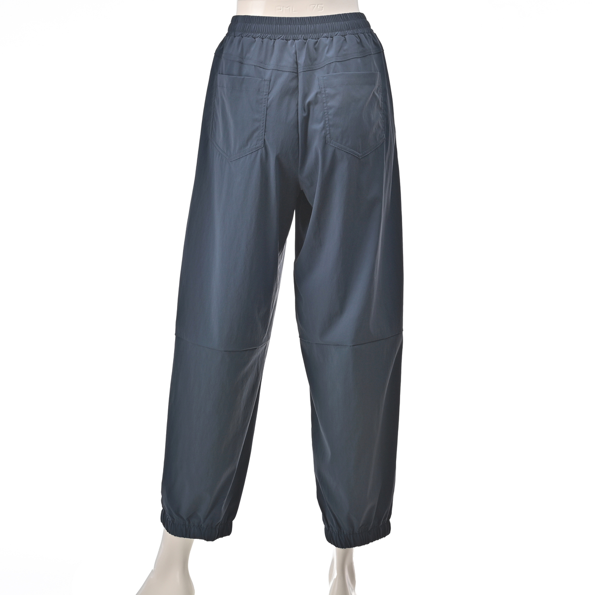 裾にかけて丸みを持たせたカーブパンツ。太もも周りをカバーしながら脚をきれいに見せてくれる、トレンドのシルエットです。裾は後ろ側のみゴム仕様ですっきり仕上げました