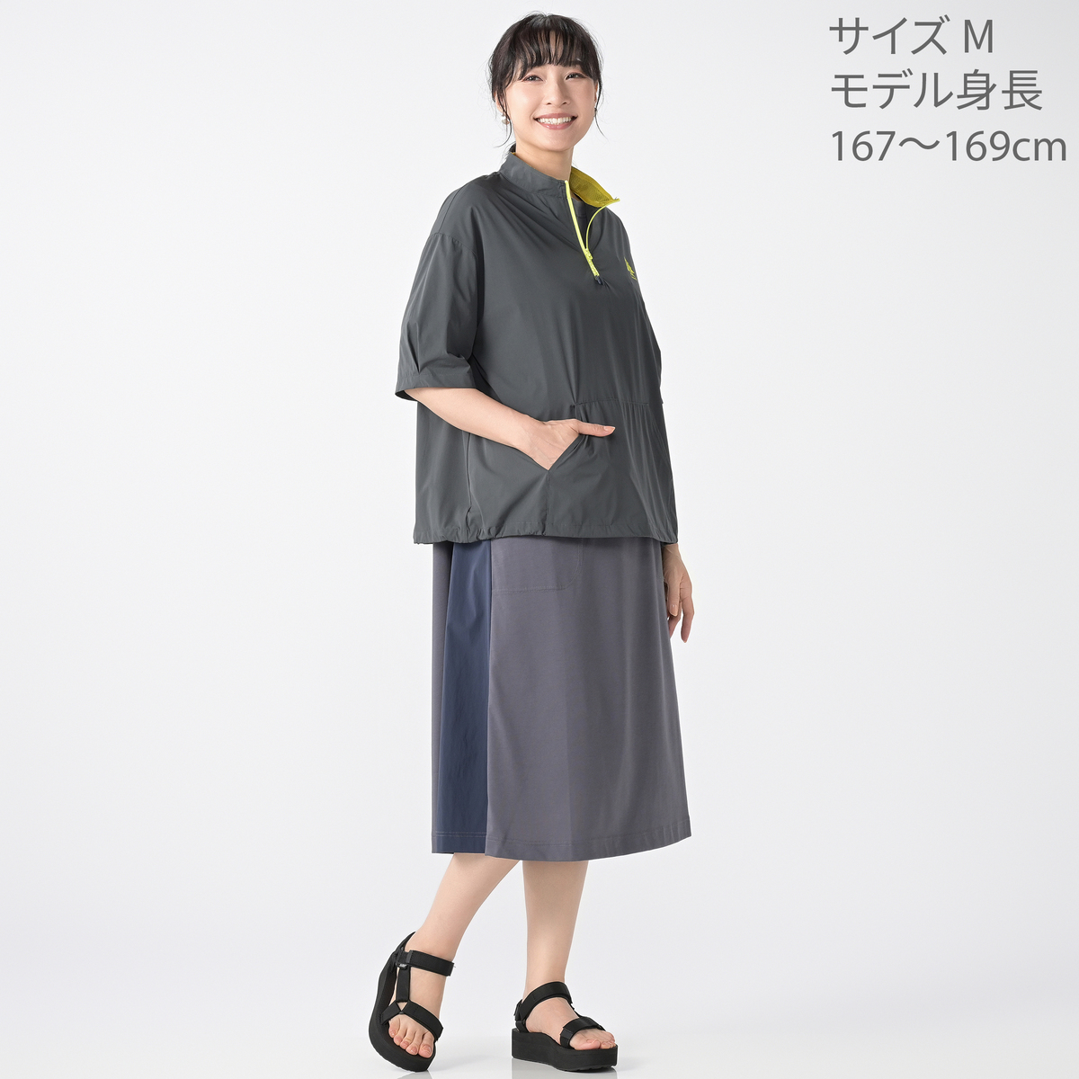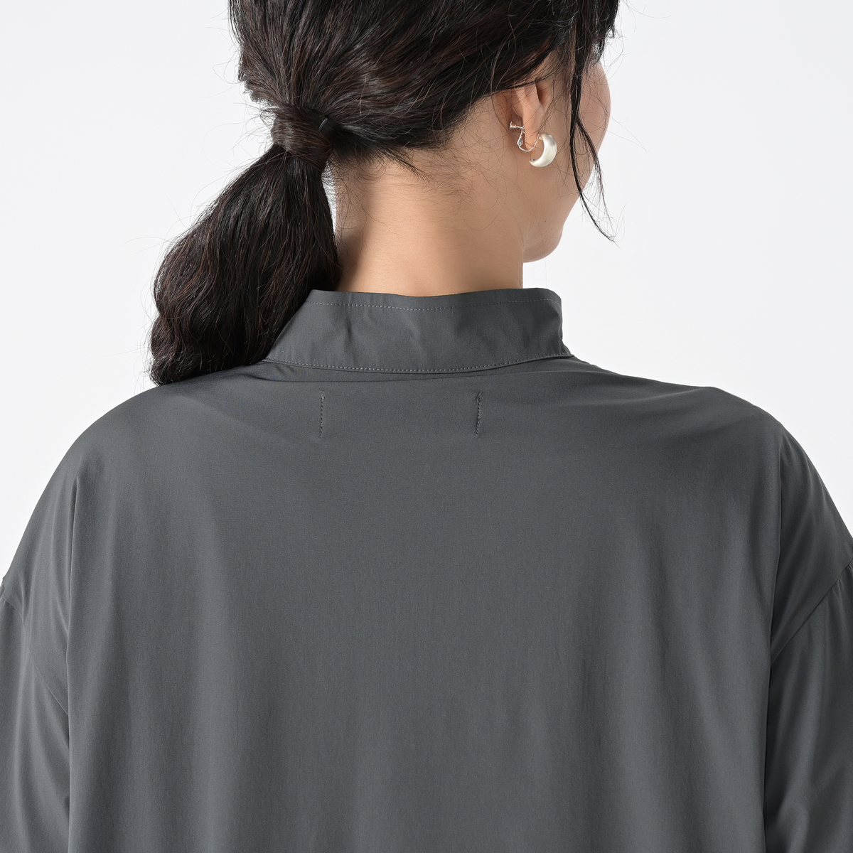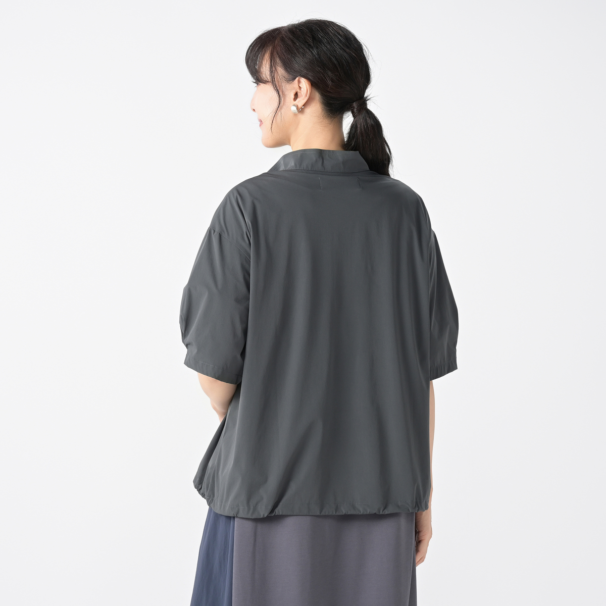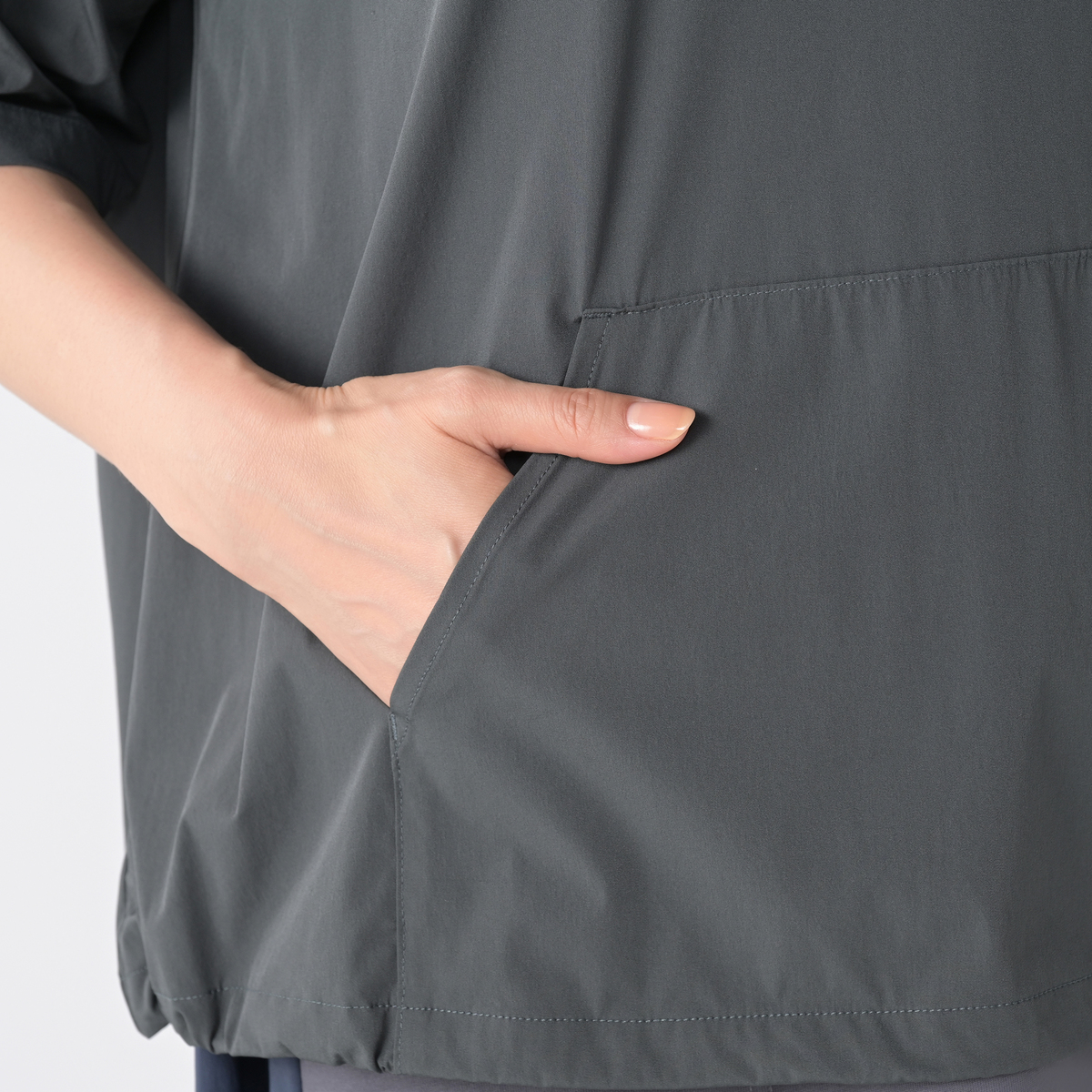 汗ばむ季節に丁度よい伸縮性があり、ハリ感もあるナイロンストレッチ生地を使用。軽量でサラッとした滑らかな肌触りと、柔らかな質感が特徴的です。嬉しいUVカット機能があり、紫外線からお肌を守ります