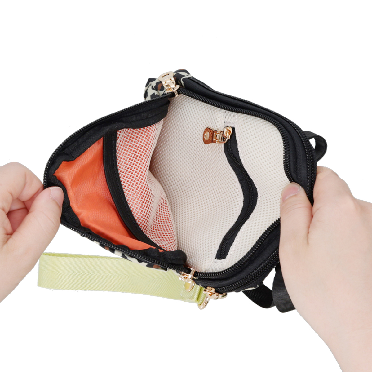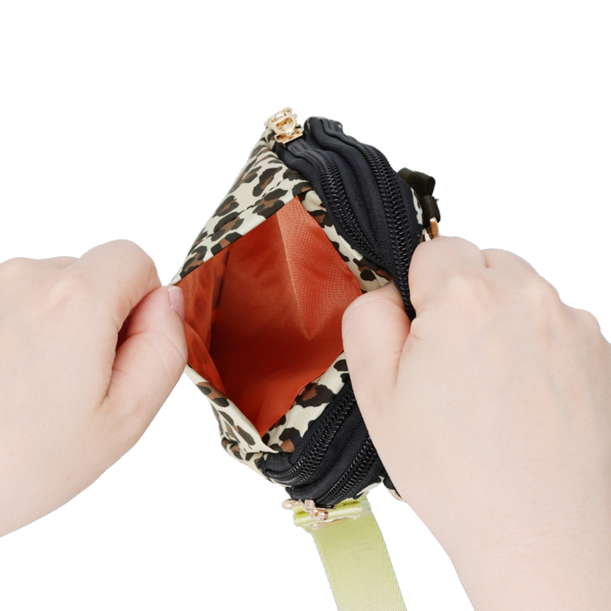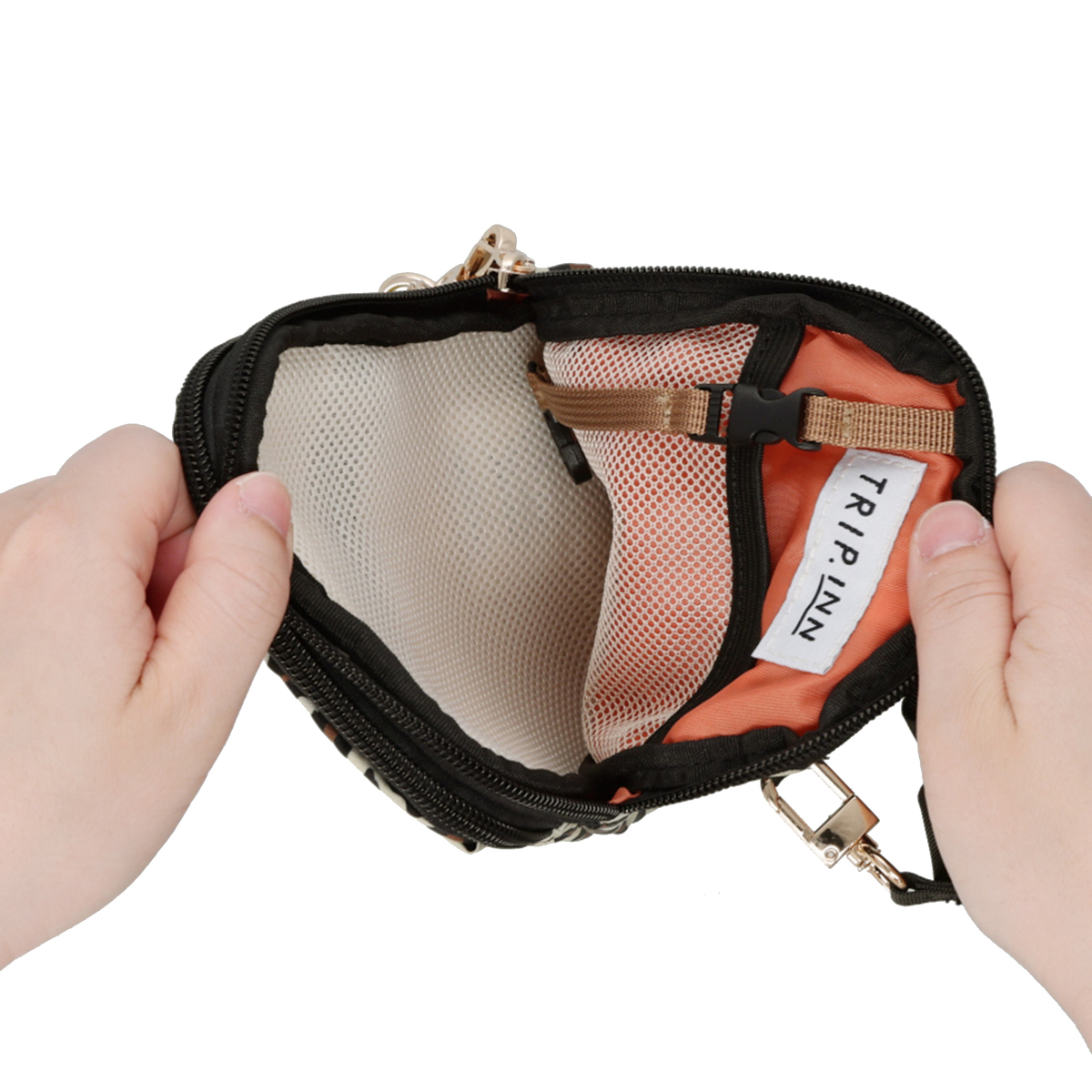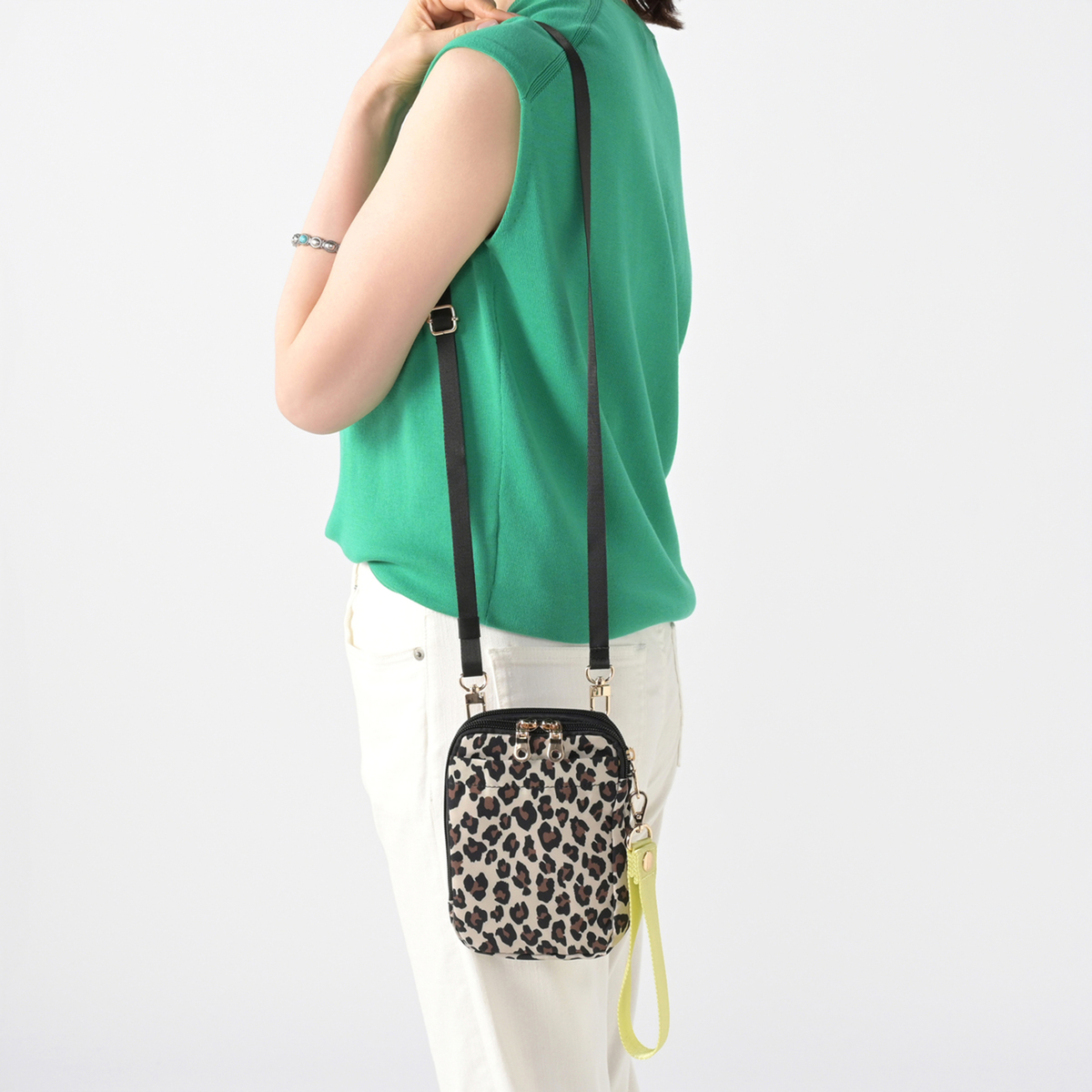 [サイズ(約)]縦17.5×横12×厚み4cm ショルダー立上り:32〜62cm [重量] 約158g(付属品含む) [素材] <ブラック> 本体:ナイロン 裏地:ポリエステル <ヒョウ柄> 本体:ポリエステル 裏地:ポリエステル <小花柄、大花柄> 本体:ポリエステル 裏地:ポリエステル [仕様] 付属(取り外し可):ショルダーストラップx1、ストラップx1 開閉:ファスナー式 底ビョウ:無 [ポケット] 内側:クッションメッシュファスナーポケットx1、口元ゴムメッシュポケットx2、着脱可能キーホルダーx1 外側:オープンポケットx1 [注意事項] ※漂白剤は使わないでください ※洗濯後は形を整えて、日陰で平干しをしてください ※タンブラー乾燥はお避けください ※洗濯後は、素材により多少サイズの伸縮が発生します ※ネットに入れて洗濯してください ※洗濯機の取り扱い説明書に従ってください ※付け置き洗いはお避けください ※濃色の場合は、汗や雨などで濡れた状態や強い摩擦等で他の製品に色移りする場合がありますのでご注意ください ※洗濯後、すぐに形を整えて干してください ※この製品は生地の特性上、色むらに個体差がございます ※この製品は、落下衝撃の際の内容物の保護はできません。特に精密機器、貴金属、割れ物等の破損しやすい内容物の保護には適していません。外部からの圧力、衝撃についても同様です。また、内容物が著しく重いもの、または鋭利なものの場合は通常の使用でも製品を破損する恐れがありますのでご注意ください ※ファスナー、ホック、ボタン、金属、ストラップ、ベルト等の付属物は正しくお使いください。誤った使用をされた場合、もしくは極度の負荷、衝撃がかかった場合は、付属物および製品が破損する恐れがありますので、お取り扱いにはご注意ください 【中国製】