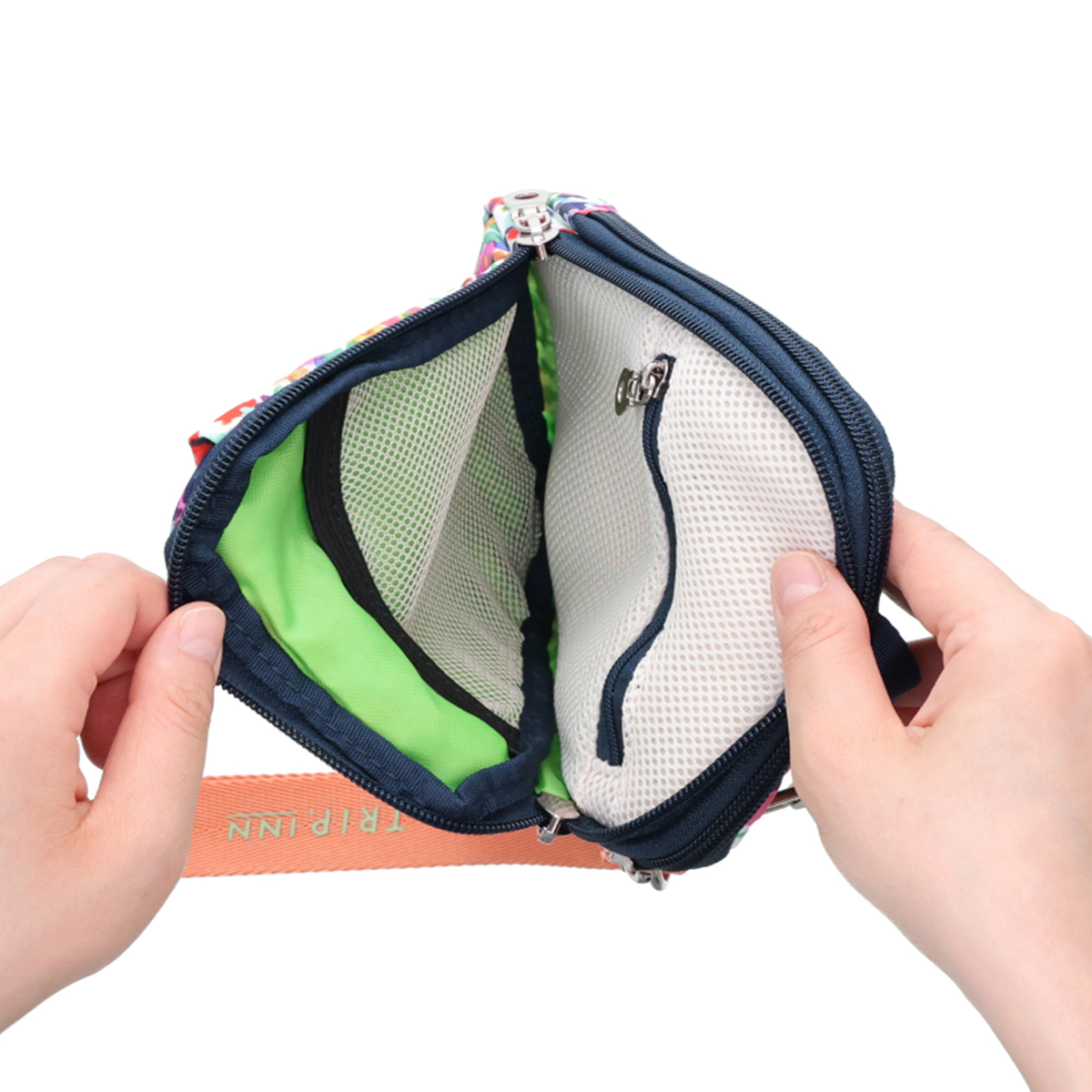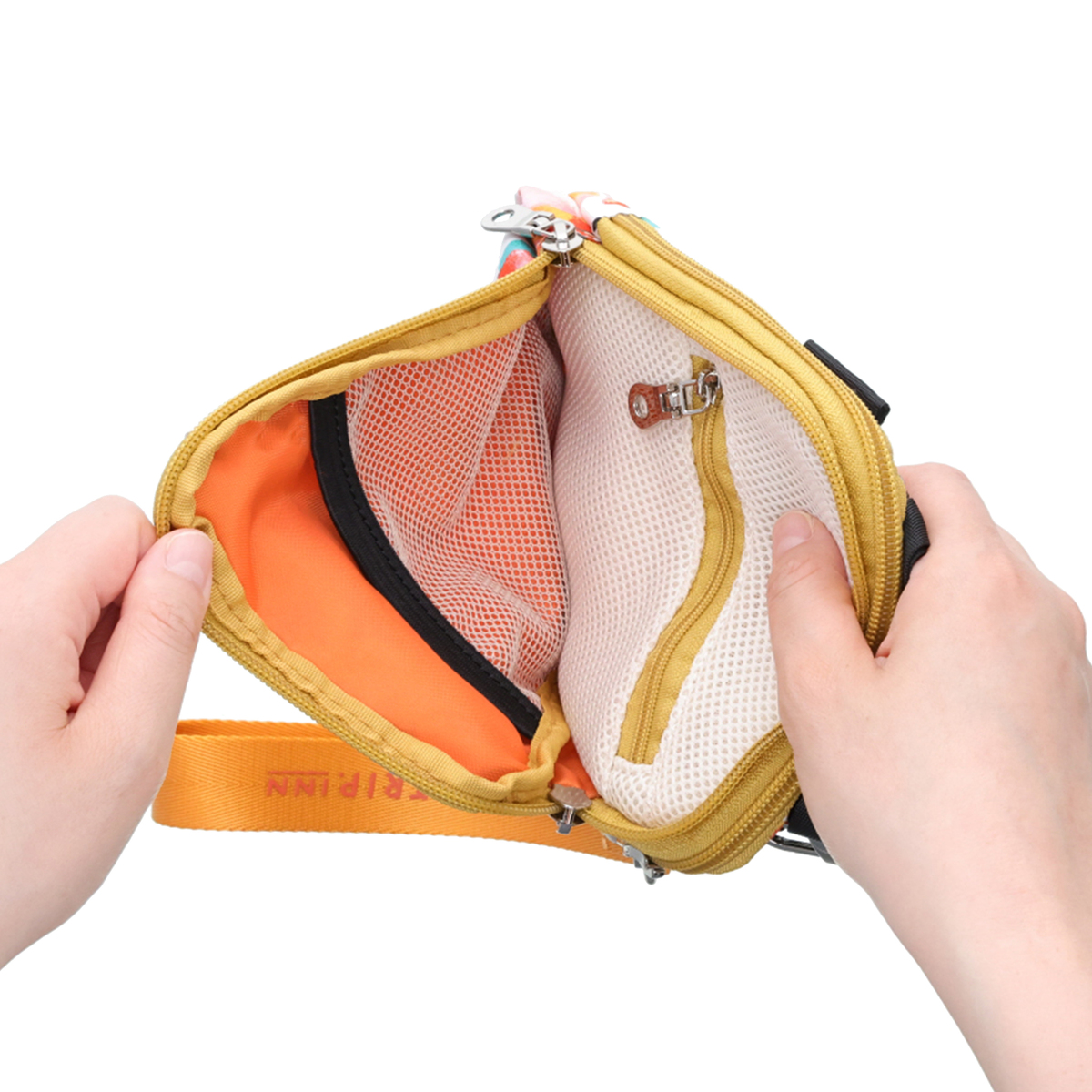 2層仕様のマルチショルダーバッグ。どの部屋にもスマホが収納できて使いやすく。デイリー使いから旅行のサブバッグなどに。本体の背側に付いたベルト状のパーツで、リュックのショルダー部分に着脱可能です