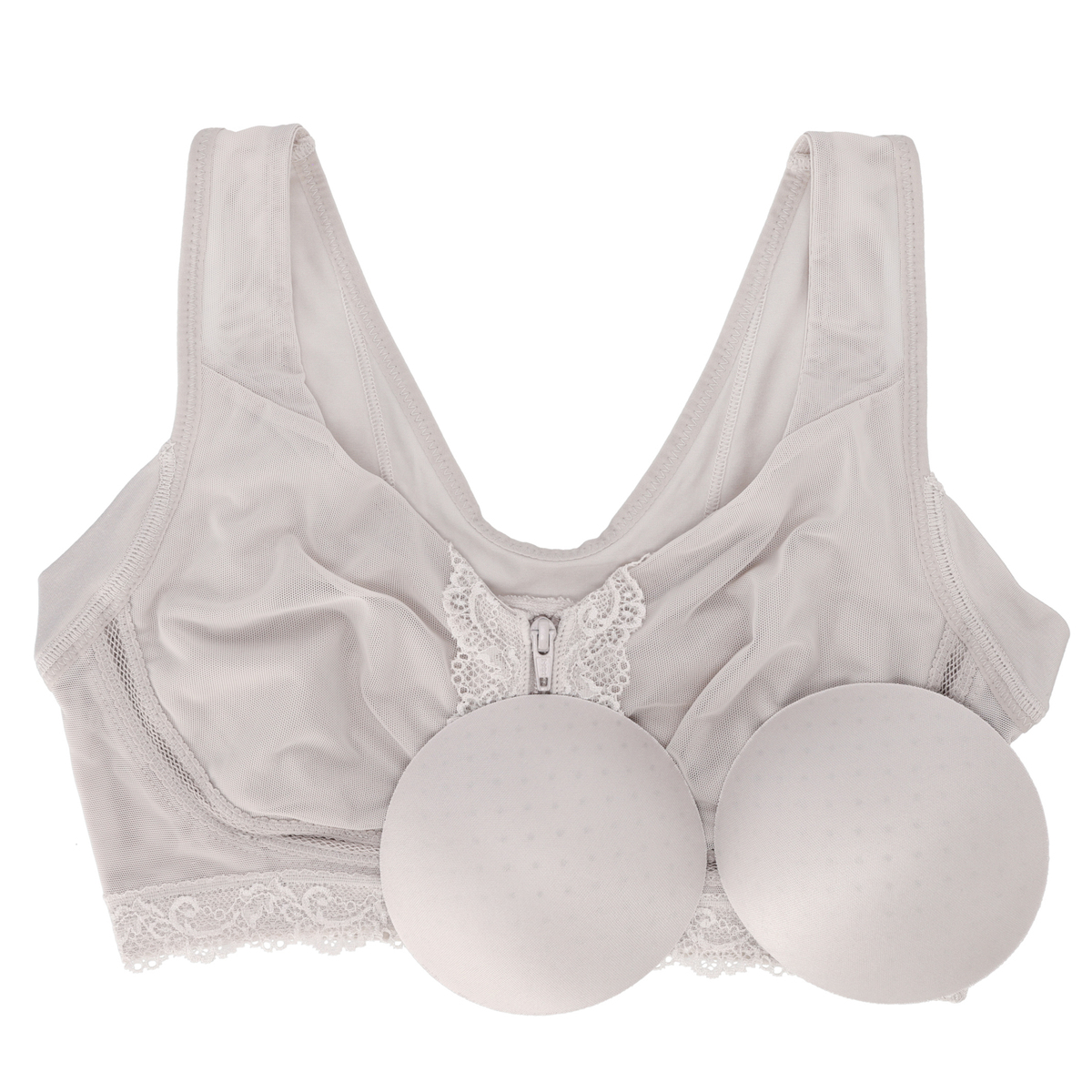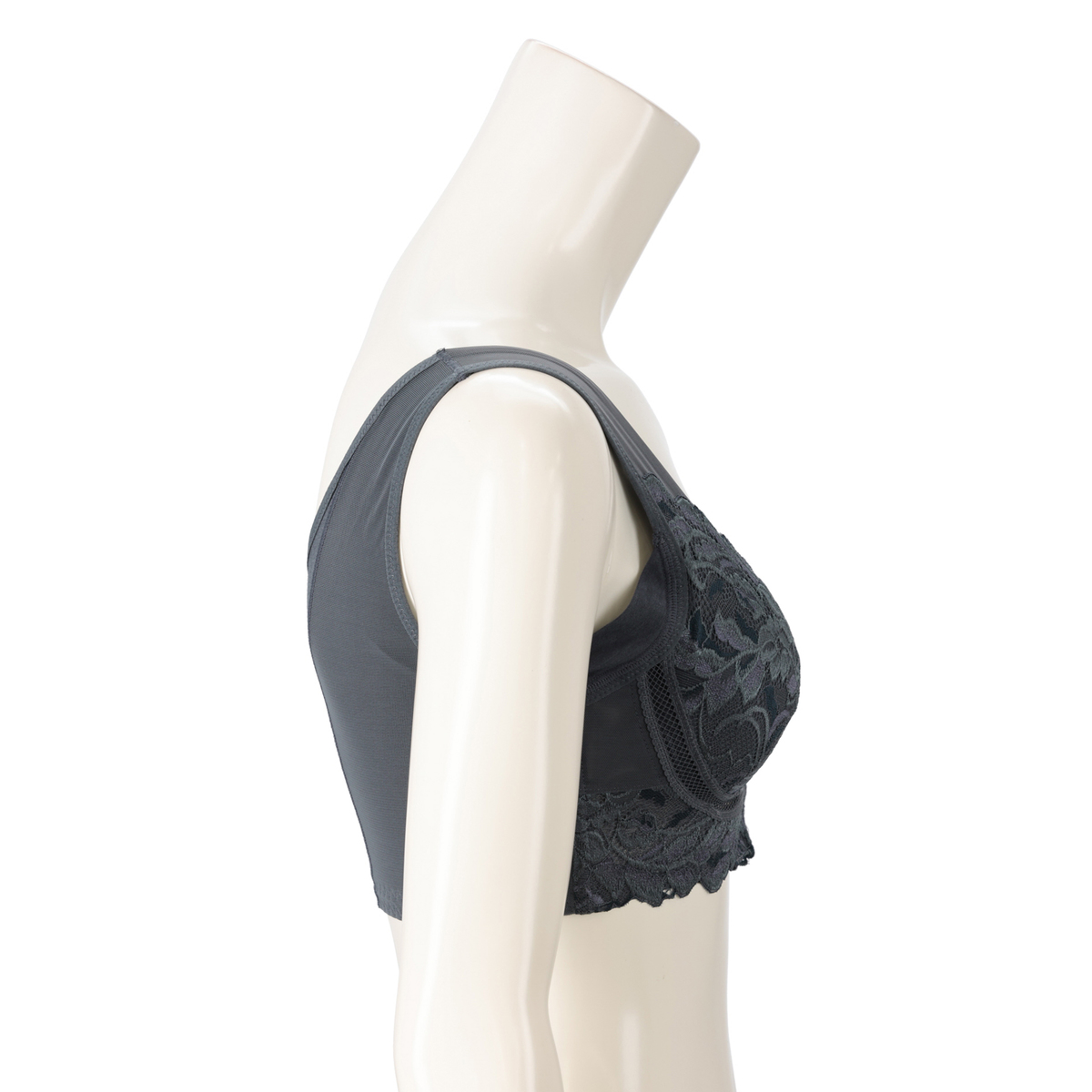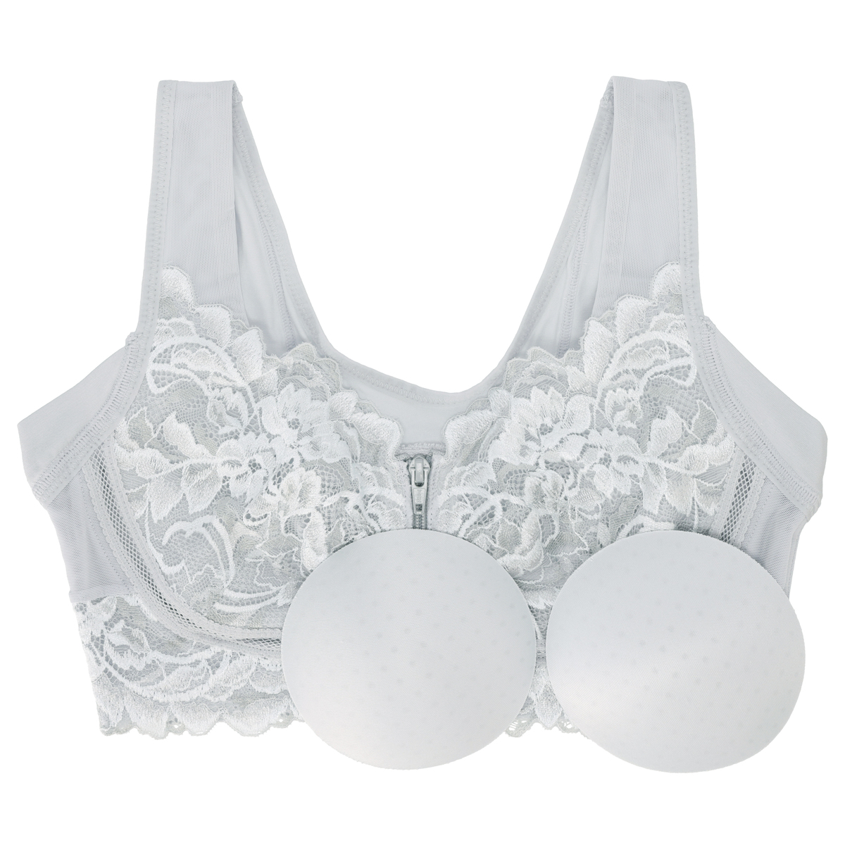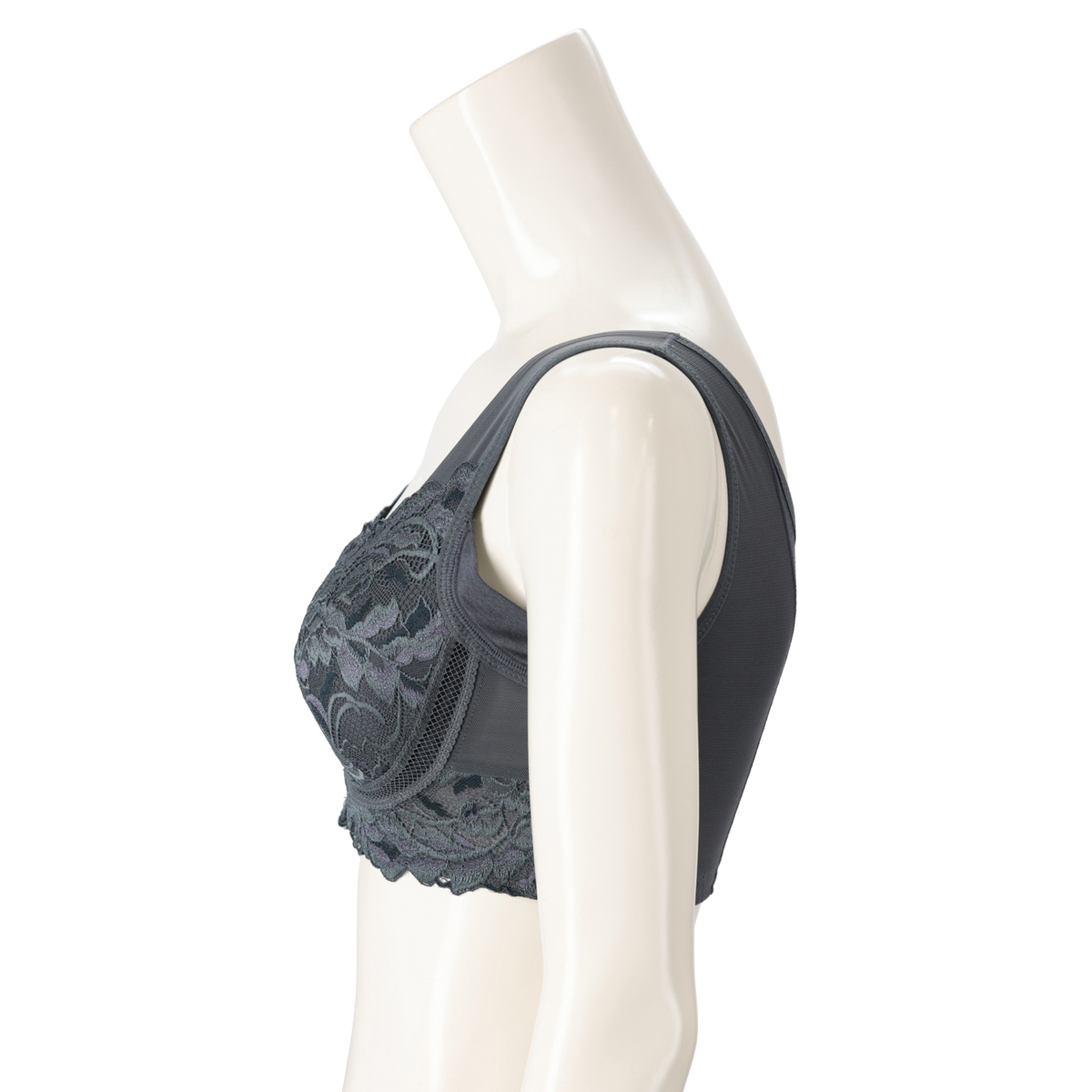 [商品寸法(ヌード)cm] サイズ バスト S:(72〜80) M:(79〜87) L:(86〜94) LL:(93〜101) 3L:(100〜108) 4L:(107〜115) 5L:(114〜122) [仕様]・フルカップ・ワイヤー無・パッド有(取外し可)・ホック無 [素材] クリームベージュ、アッシュブルー、ヌーディピンク、ロイヤルグレー:ポリエステル・綿・その他 ブラック、グレージュ:ナイロン・綿・その他 [お手入れ] 洗濯機洗い可 [注意事項] ※濃色商品は、染色の性質上、洗濯すると色落ちする事があります ※淡色や白物と組み合わせての着用や洗濯はお避け下さい ※長時間濡れたままで放置しないで下さい ※淡色製品には蛍光増白剤入り洗剤を使用しないで下さい ※繊細なレースを使用している為、引っ掛かりなどには十分ご注意下さい ※洗濯により多少縮むことがあります ※洗濯の際は商品を裏返した上、クリーニングネットをご使用下さい ※アイロンの際は当て布を使用して下さい。カップ部分へのアイロンはお避け下さい ※手絞りの場合は弱く、脱水は短時間で行って下さい 【中国製】