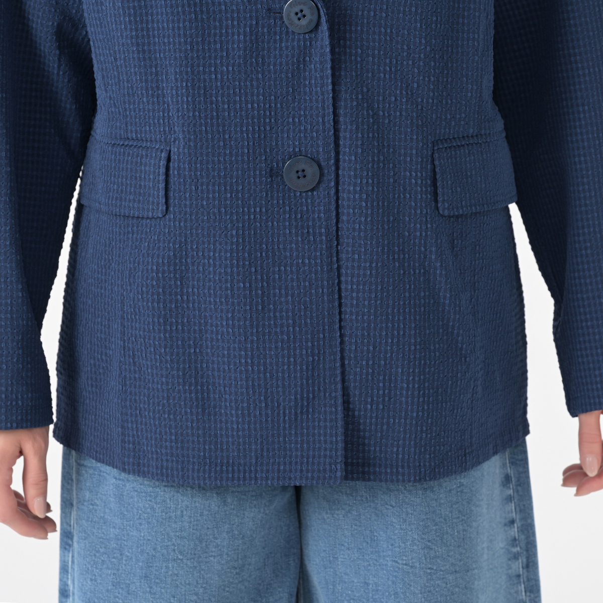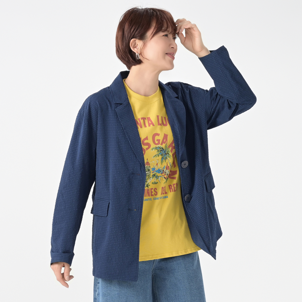 気軽に羽織れる一重仕立てのジャケット。カジュアルな素材感なのでハンサム見えしすぎず、程よい抜け感があり、きちんと感も。袖口はスリット入りの抜け感あるデザイン。ロールアップして手首を見せれば、より大人カジュアルに演出できます